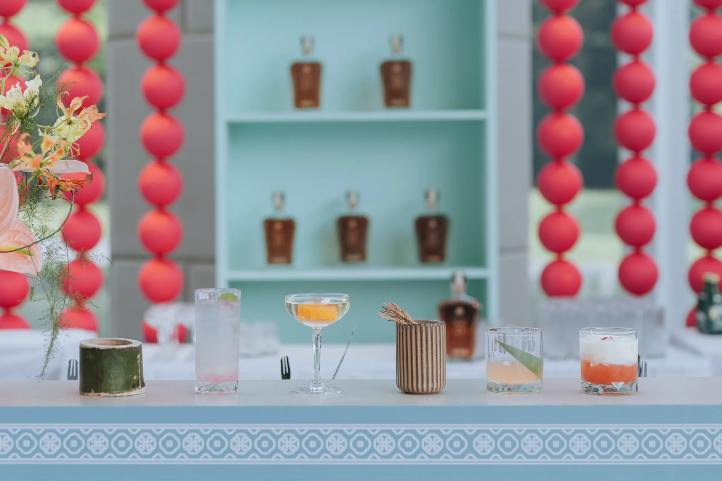 Attention to detail extended even to the cocktails. The bar served a selection of signature cocktails that matched the colour palette. Drinks featuring carefully curated ingredients, decorated with delicate garnishes were presented in elegant glassware. The tablescapes were further elevated with chrysanthemum-inspired pearlescent charger plates, 3D menu cards with Mandarin motifs, vibrant local fruits and florals all worked together to create a cohesive and immersive dining for guests. Each detail added to the feeling of luxury and thoughtfulness.