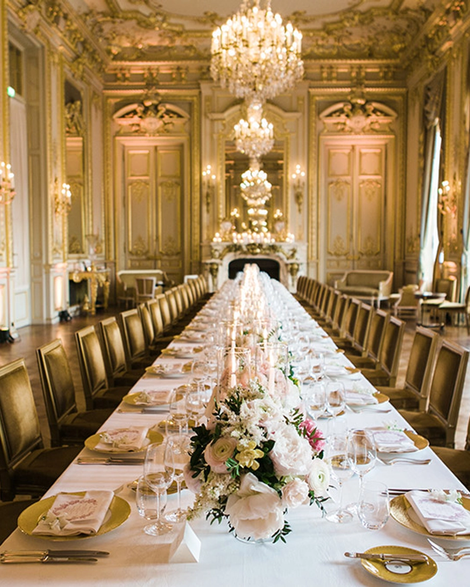 Photography by Catherine O’Hara / Venue Shangri-La Hotel Paris / Wedding Planning by Et Voila Weddings / Bridal Gown by Michal Medina / Hair by Ciara Costenoble / Makeup by Charles Gillman / Groomsmen’s Attire by YSL Pour Homme (tuxedoes), David Donahue (tuxedo studs and cufflinks), and Tom Ford (bowties) / Flowers and Décor by Madame Artisan Fleuriste / Wedding Cake by Shangri-La Hotel Paris / Art and Stationery by Paper & Honey (invitations) and Every Little Letter (place card, pink menu and program sheet) / Celebrant Kasia / Entertainment by Wedding Music in France (string quartet) and Octave et Anatole (jazz quartet) / Photobooth by Sharingbox