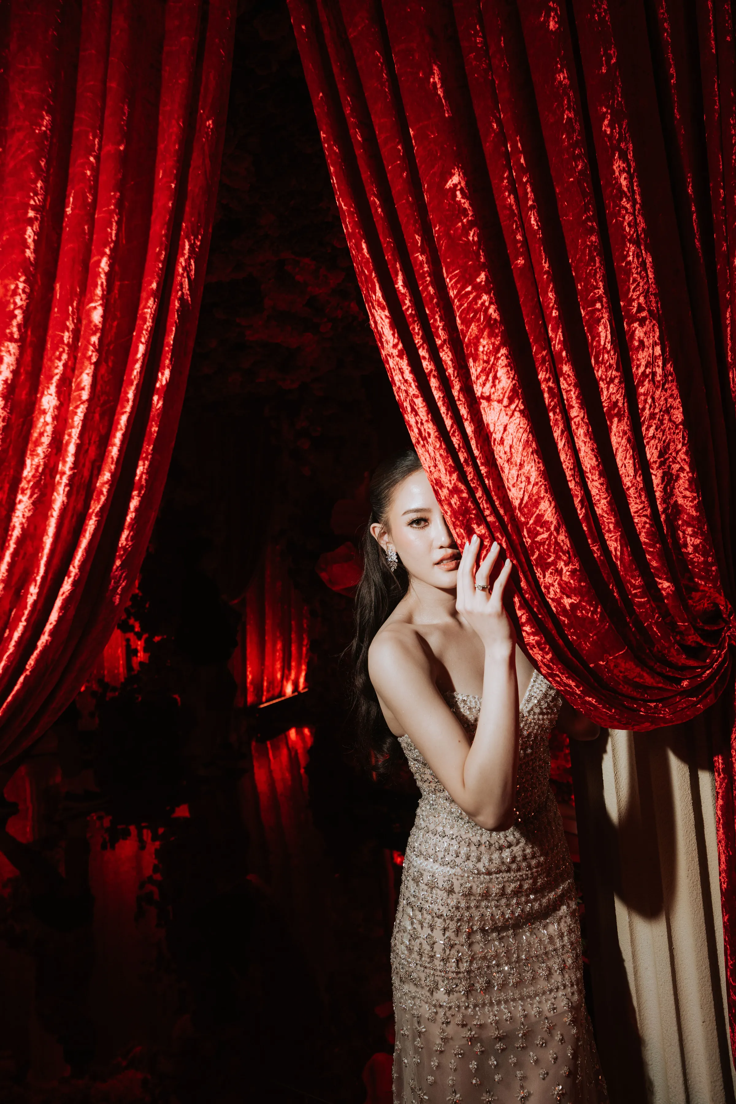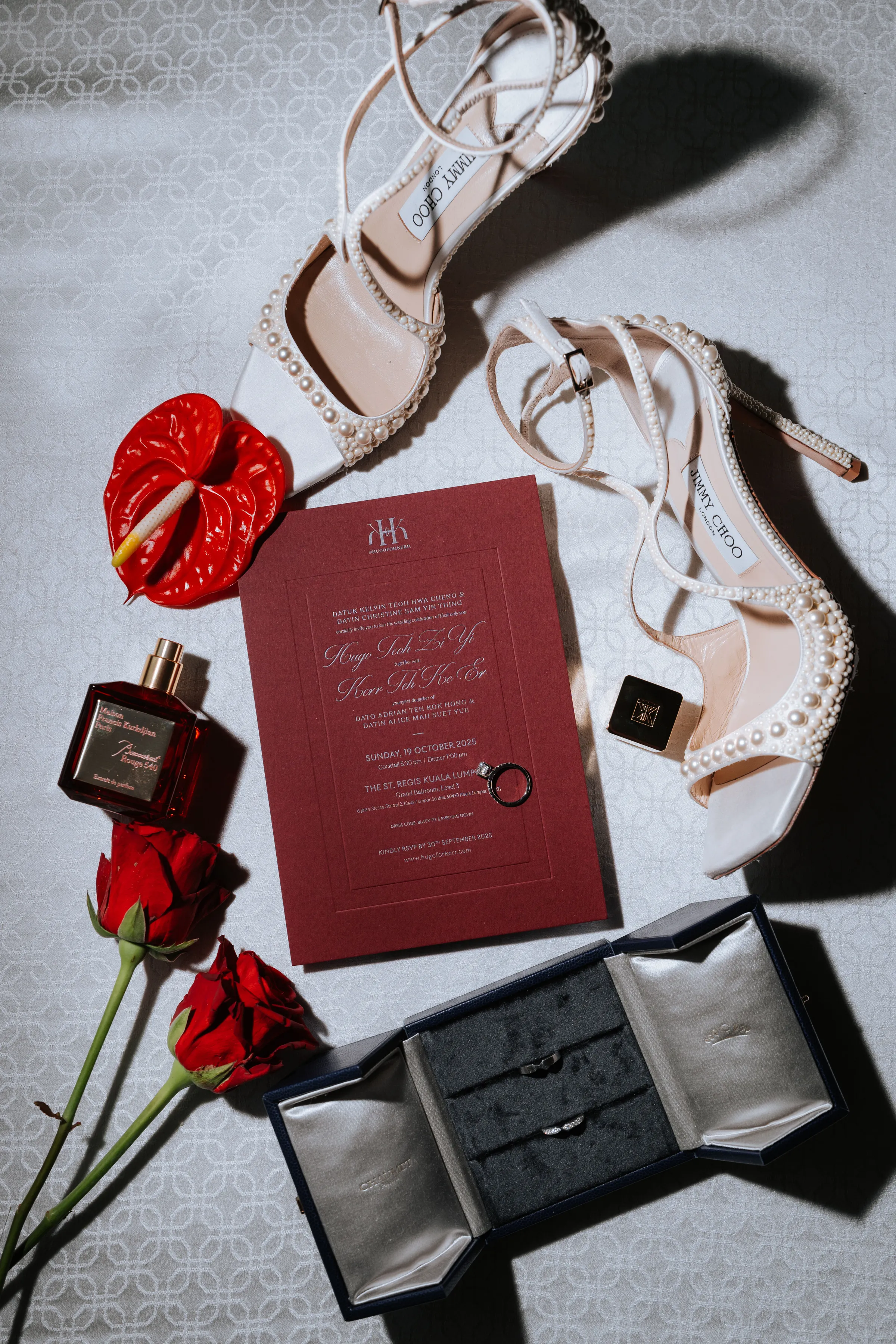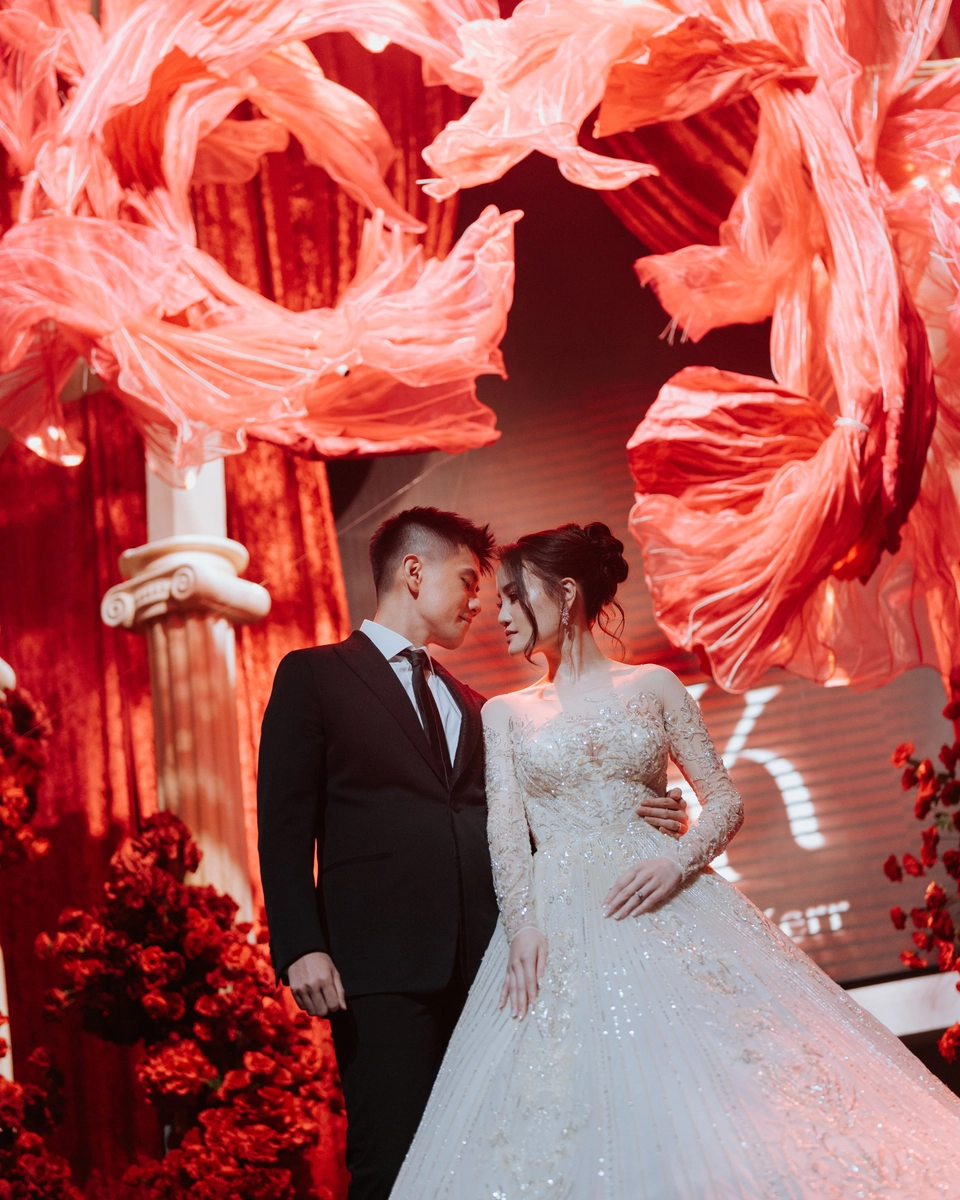 Following an intimate wedding at Aman Venice, the couple envisioned a striking contrast for their Kuala Lumpur reception. At The St. Regis, they embraced a bold red palette—layering deep crimson florals, dramatic lighting, and sculptural installations to create an immersive, high-impact atmosphere.