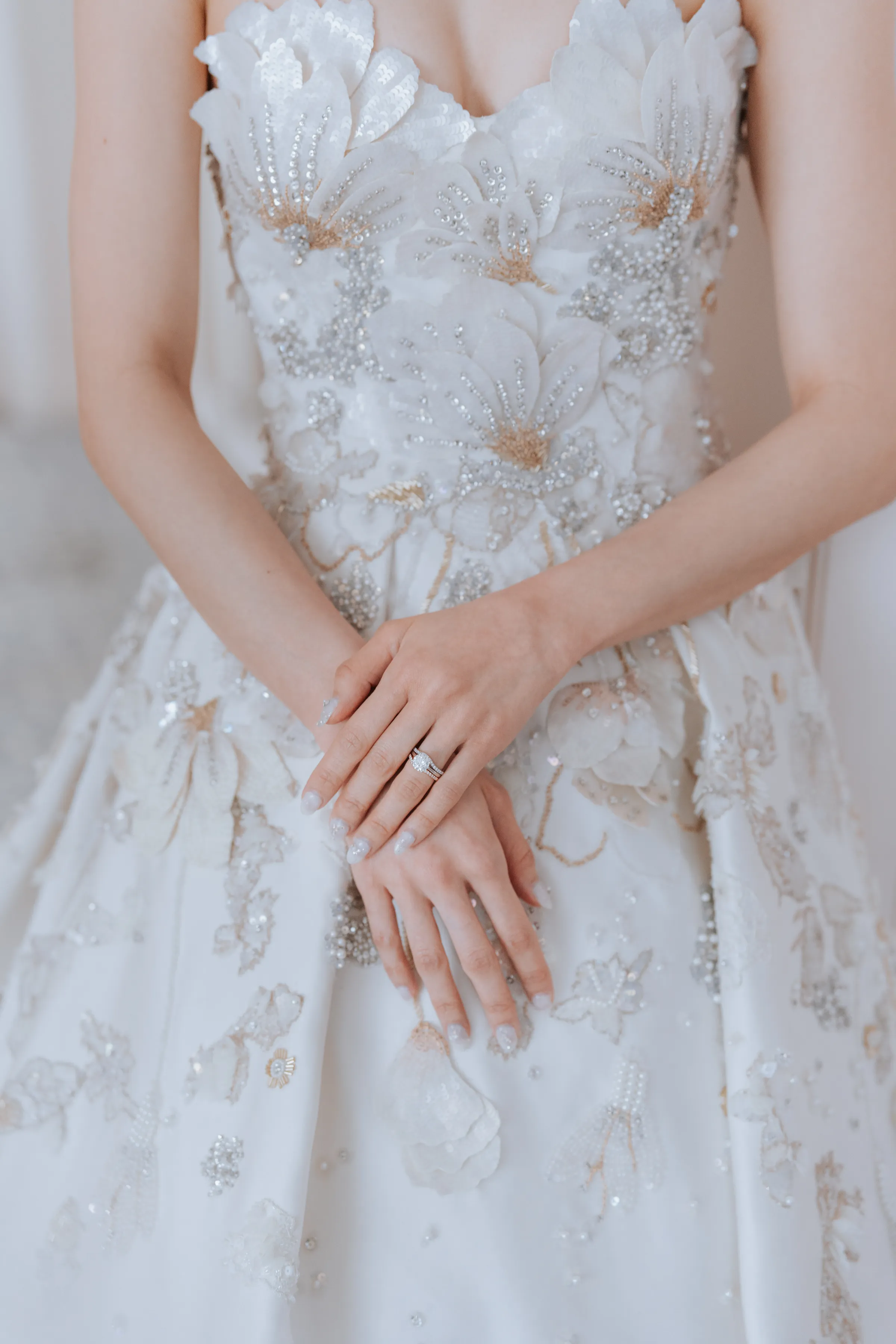 After trying on nearly 100 dresses, Nicole had almost given up on finding “the one.” That changed the moment she came across a vibrant floral-embroidered Elie Saab Bridal design on her Instagram feed. What followed was a year-long journey—four fittings, eight flights, and months of anticipation—before the gown finally came to life.