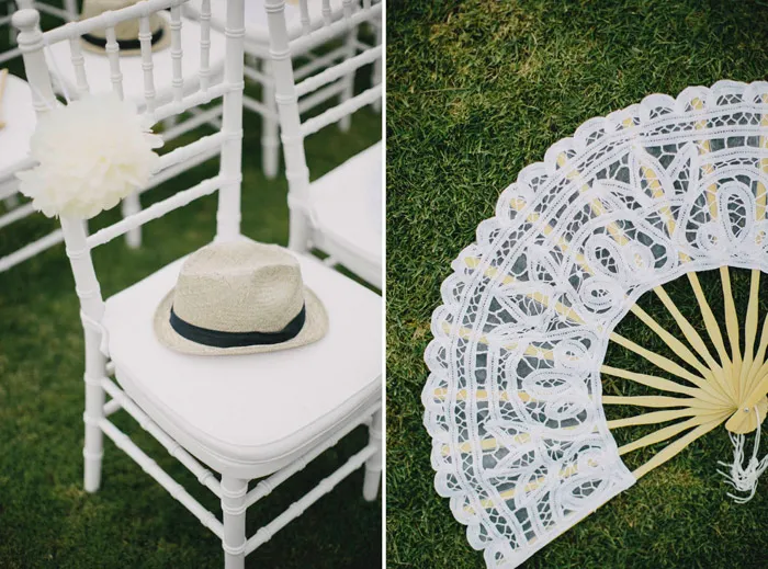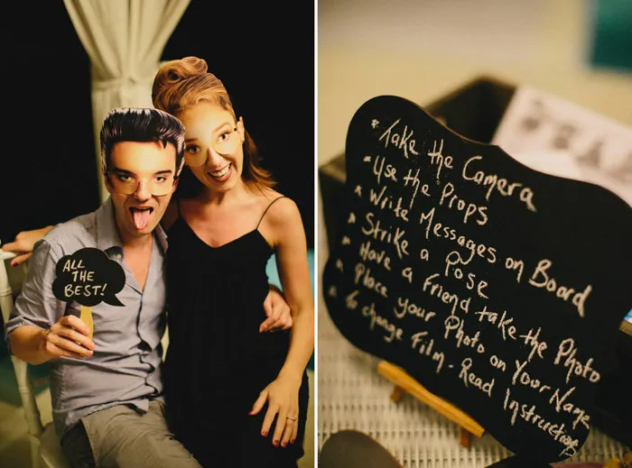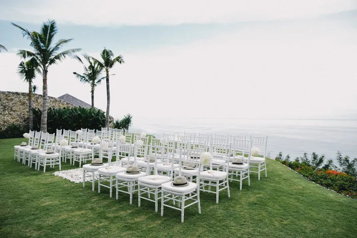 “My wedding planner, Global Weddings, arranged the entire ceremony and dinner reception, including my guests’ travel arrangements and accommodation, which made everything easy. I only had to do a few minor things that the planner was unable to source locally, and I brought over to Bali a few items to add my own touch, such as the celebrity masks, banners, props, original retro Polaroid camera and everything else for the photobooth. I also brought over the white lace fans for the ladies, as I wasn’t happy with the fans that were available locally.