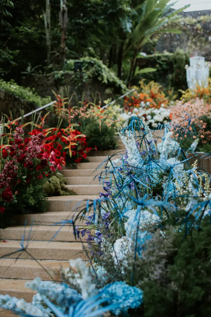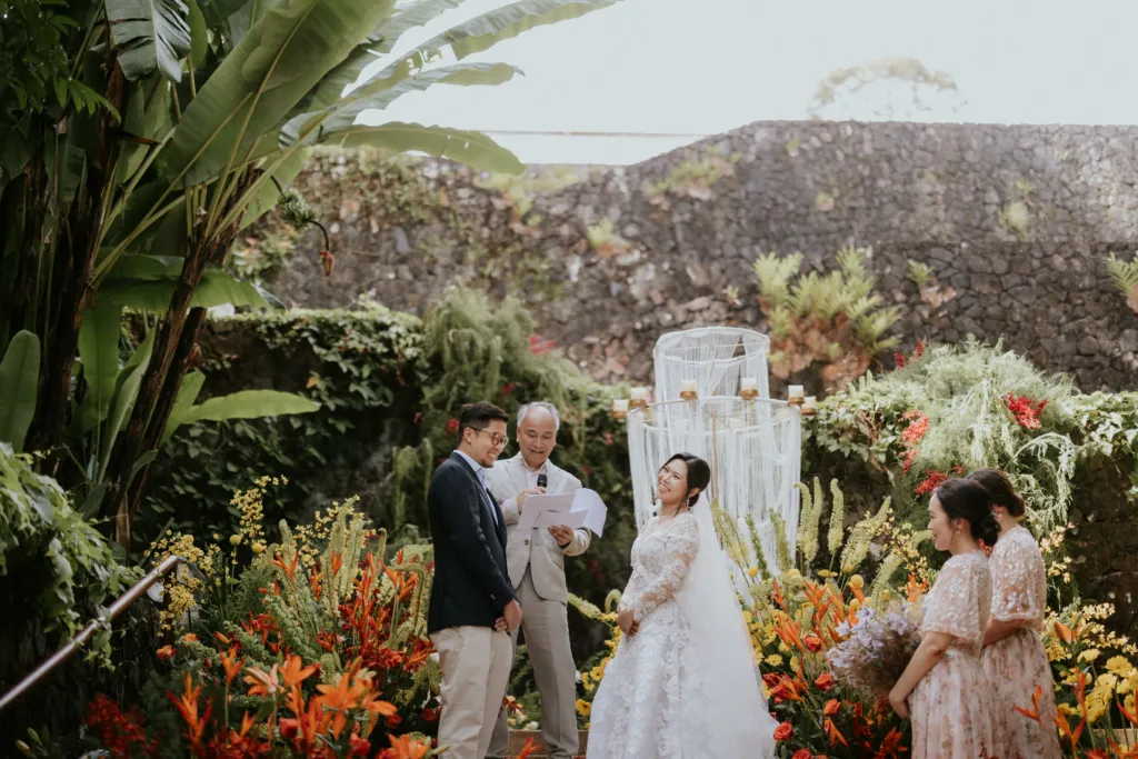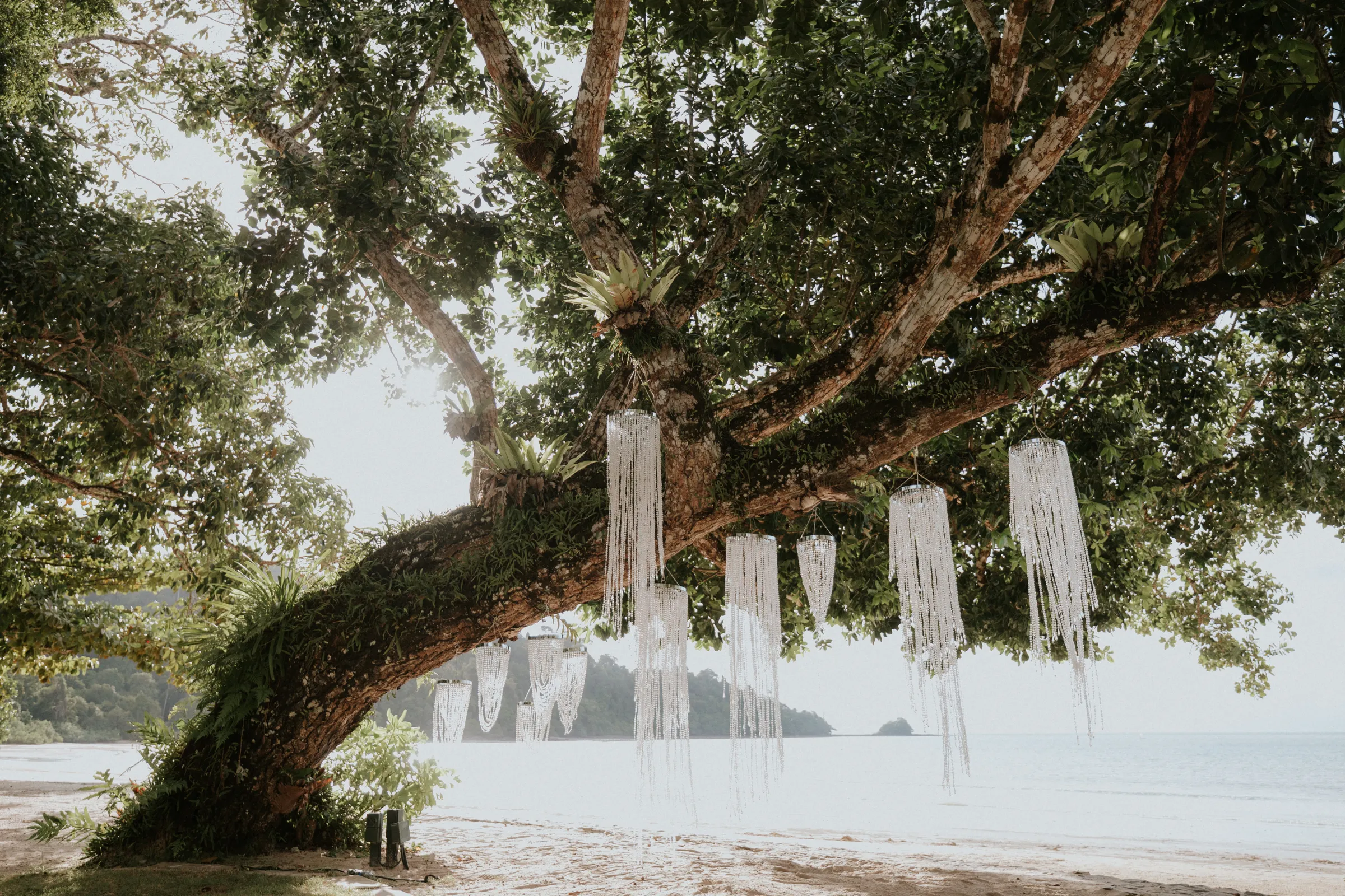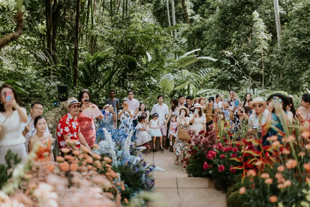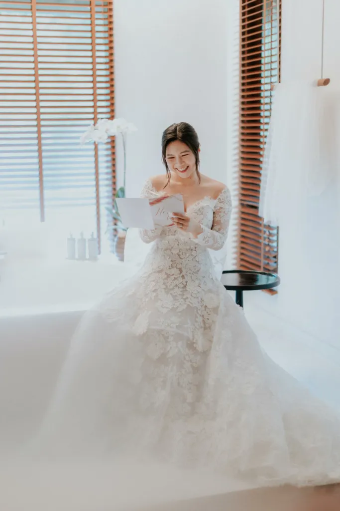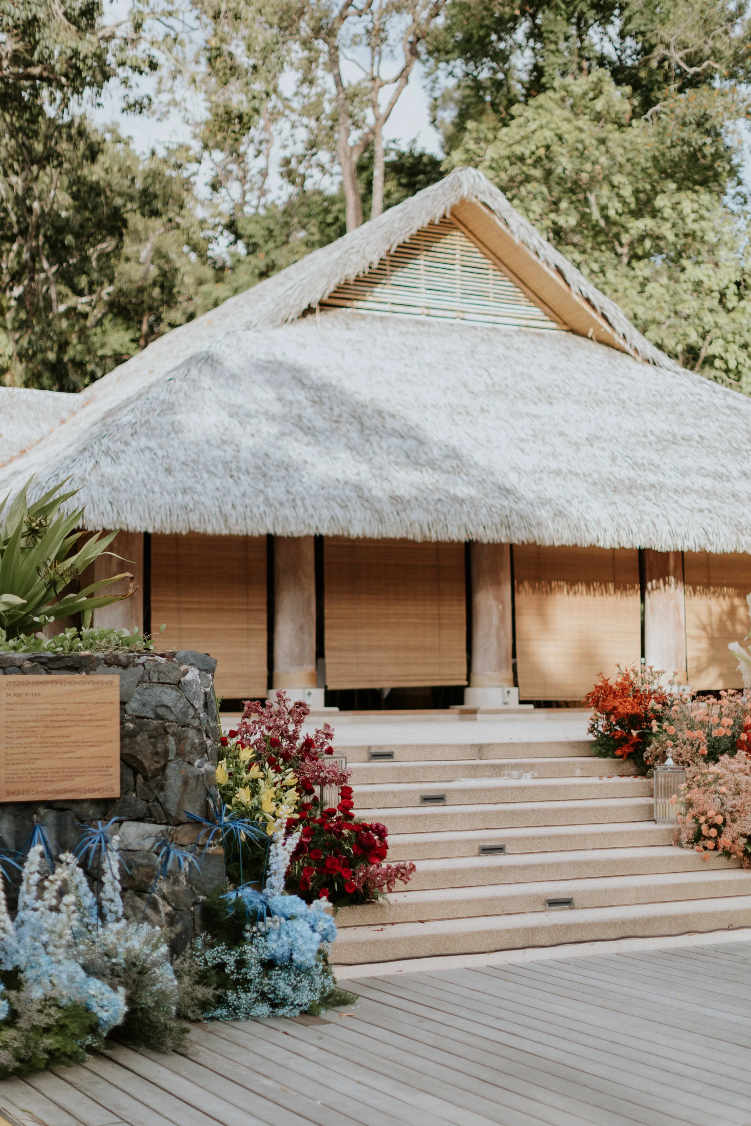 Despite not having been to The Datai, Langkawi, the venue came highly recommended by family and friends. When they did visit, the sense of being enveloped by the forest ridge and the immaculately curated landscape architecture authenticated the reviews they heard. “The moment I saw the grand stairways that connected the hotel to the beach I knew immediately how the ceremony would be,” Chia Wei says. “We also wanted our wedding weekend to feel like a retreat and a wonderful experience for our family and friends and The Datai checked all those boxes.”