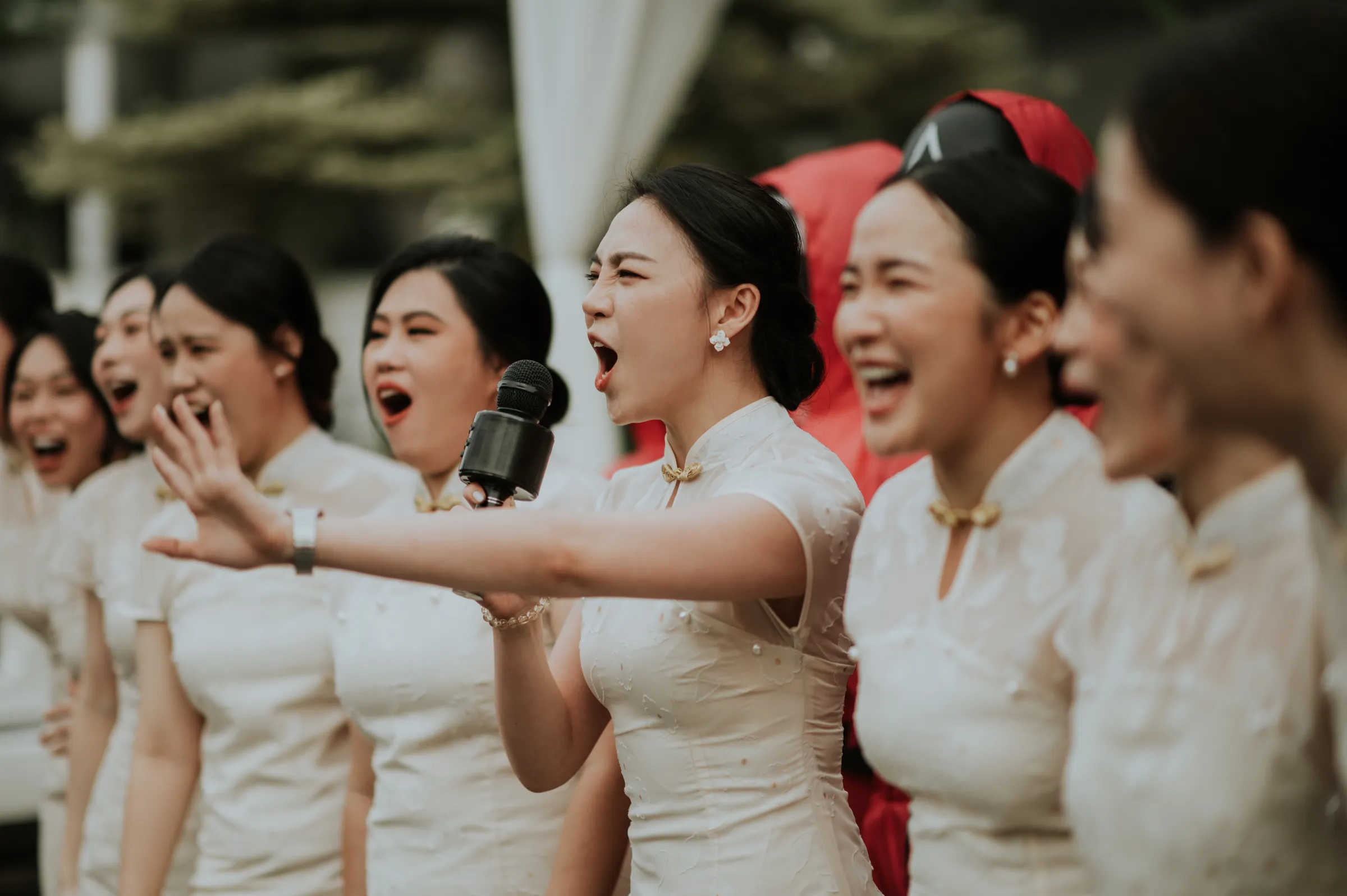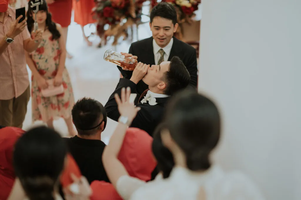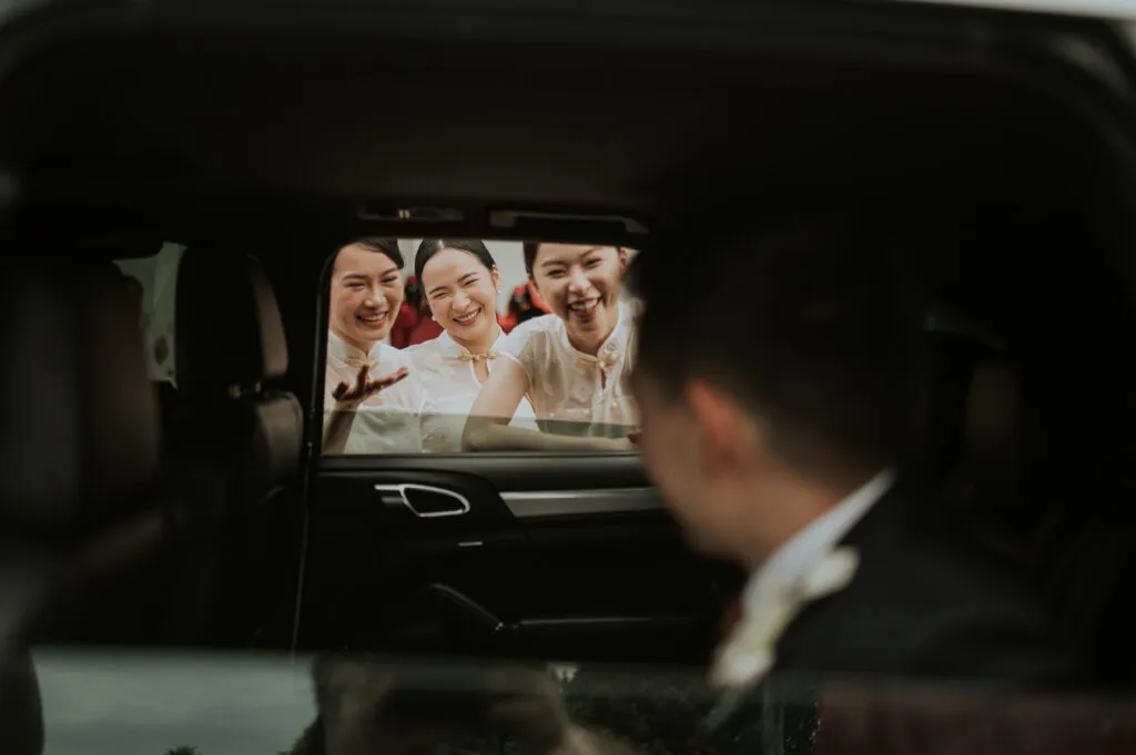 Before the day dawned, Joyce’s bride squad brought with them a flurry of early-morning activity as they gathered at the Yong household to get dressed and ready for the gate-crashing event. Having foreknowledge of what was about to go down, the excitement of the bridal party was palpable. Dissimilarly, groomsmen gathered just a few blocks away in the Loo household were jittery in anticipation of the challenges they would have to face.