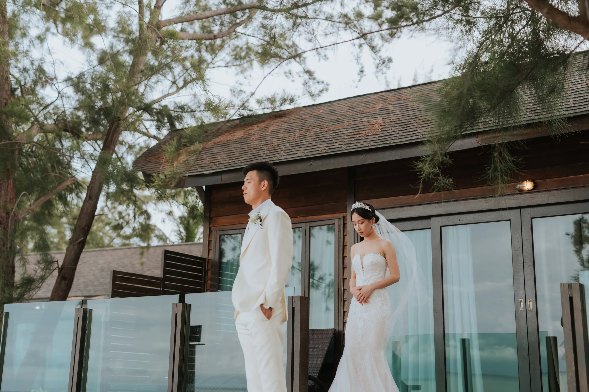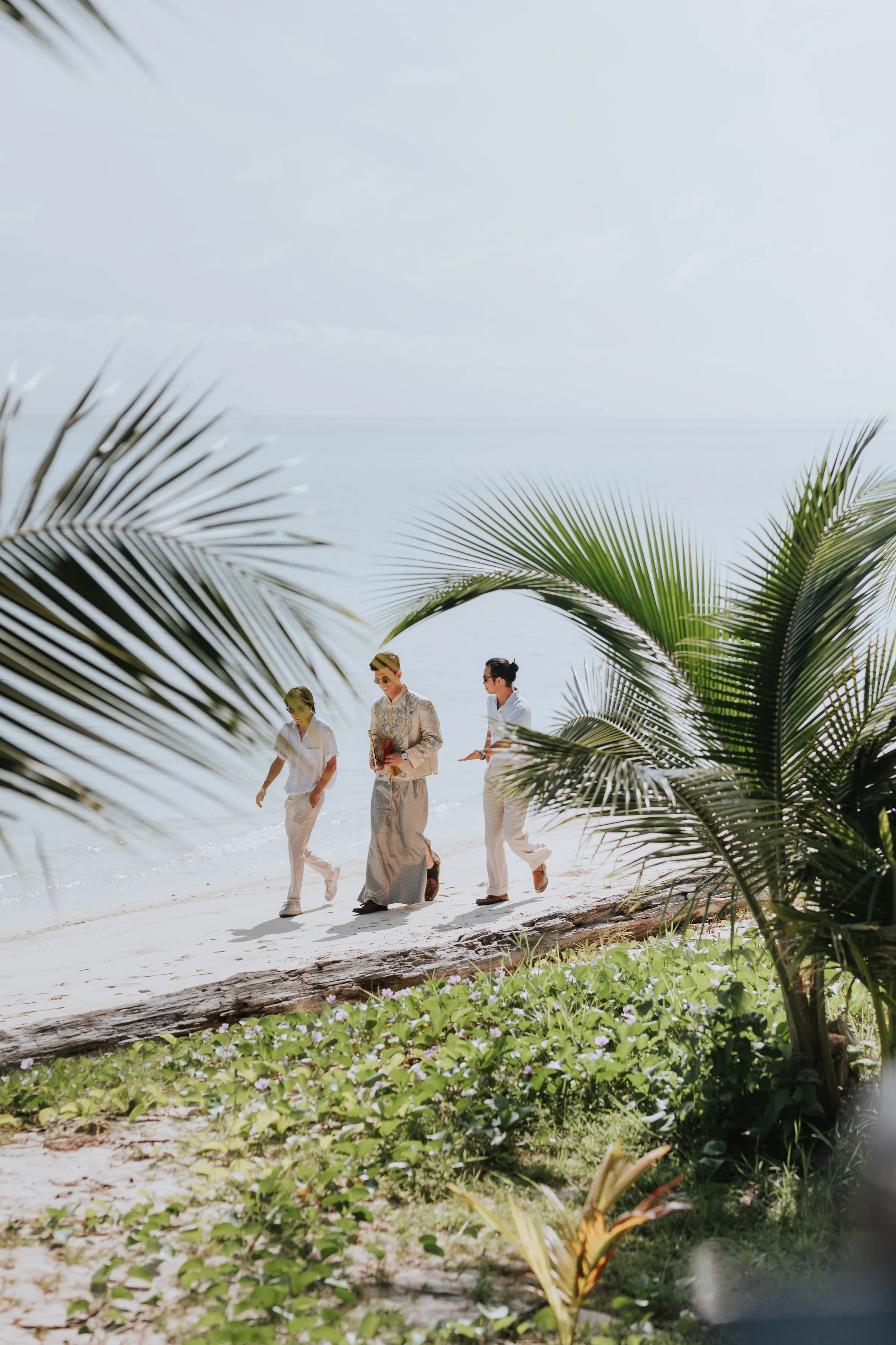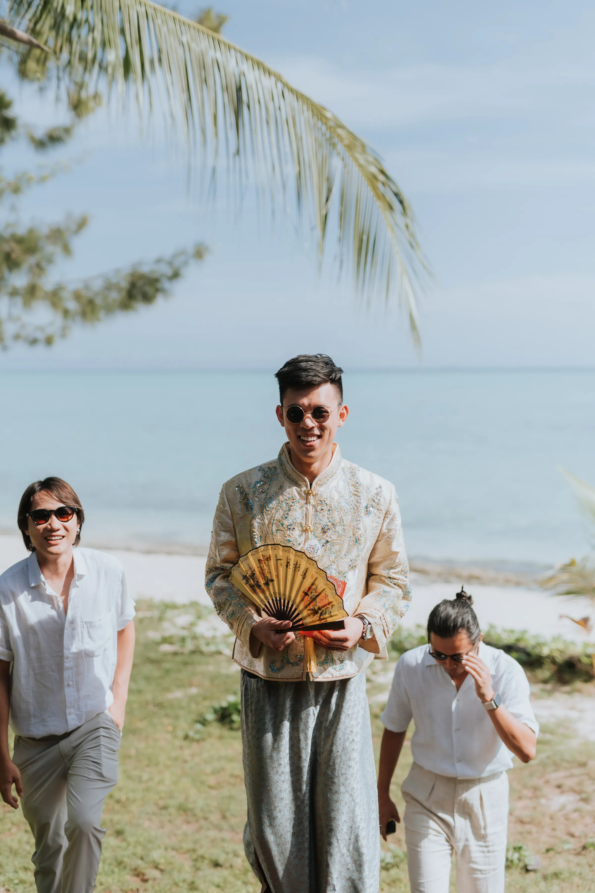 To overcome the issue of logistics, a bridesmaid did Sissi’s hair whilst she did her own makeup. The couple planned their own wedding remotely and entrusted the staff at Mataking Reef Resort with the heavy-lifting on the day. Austin’s groomsmen decorated the bridal room whilst they observed the traditional Chinese practice of picking up the bride in a most modest fashion.