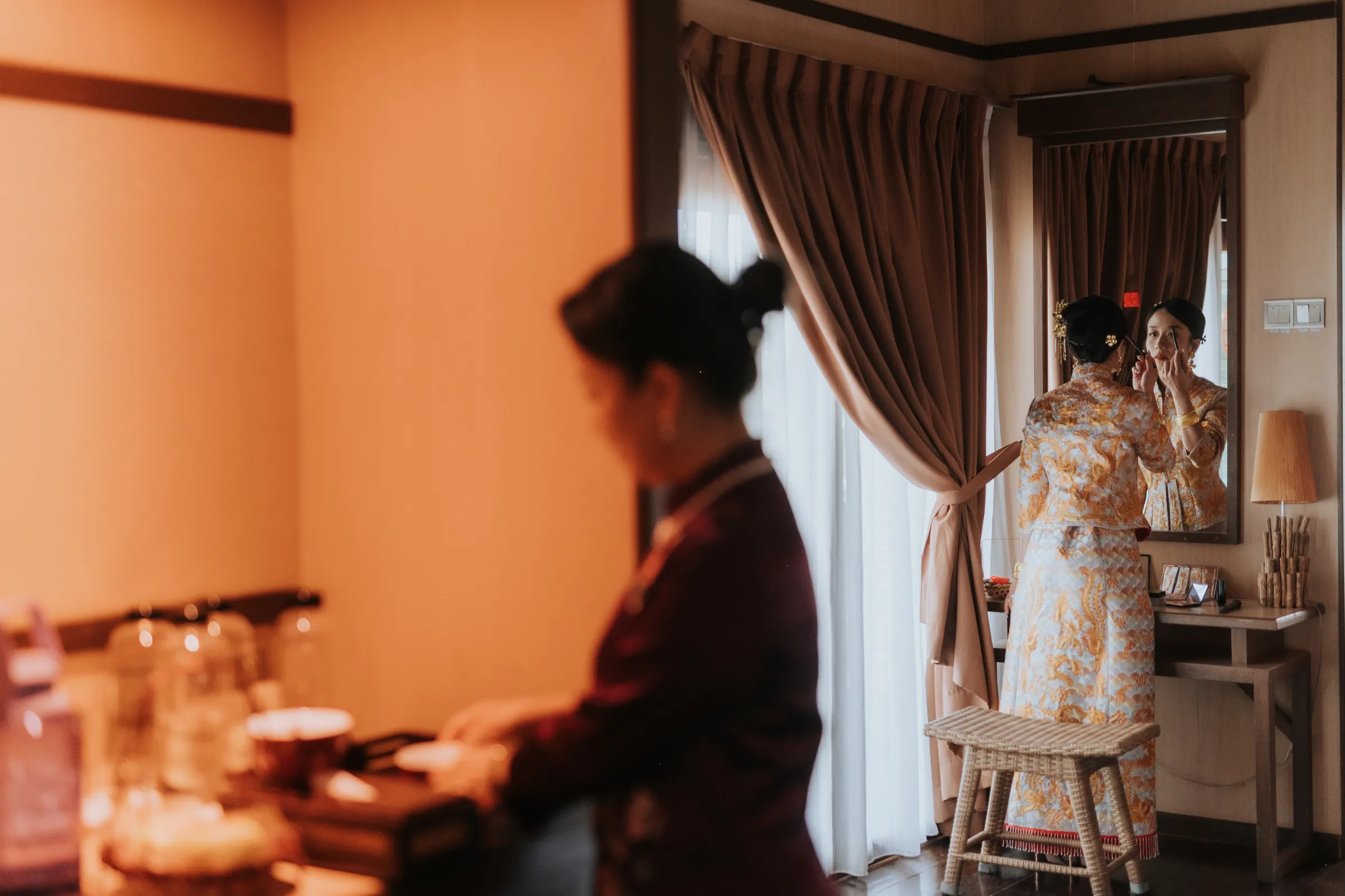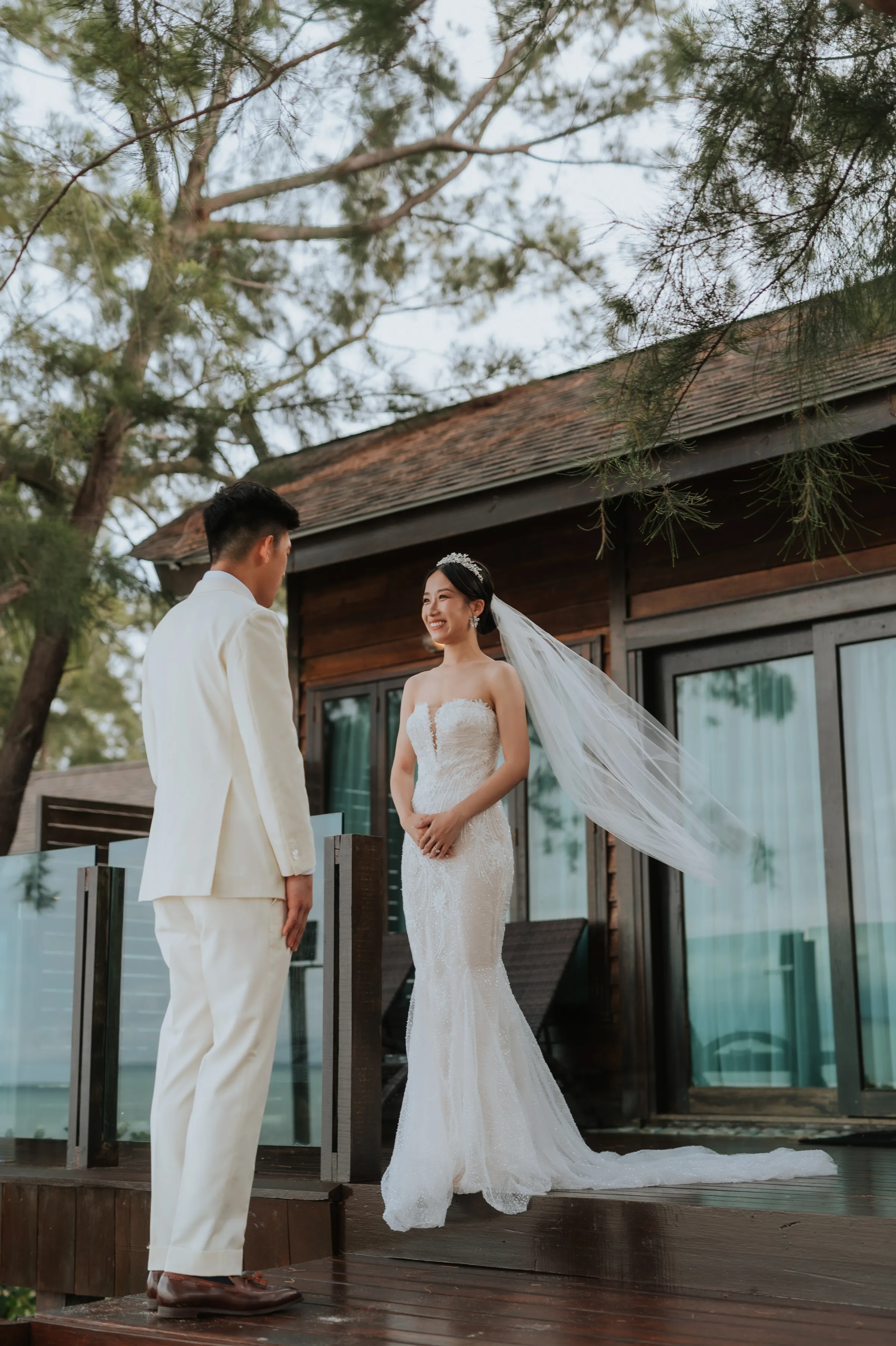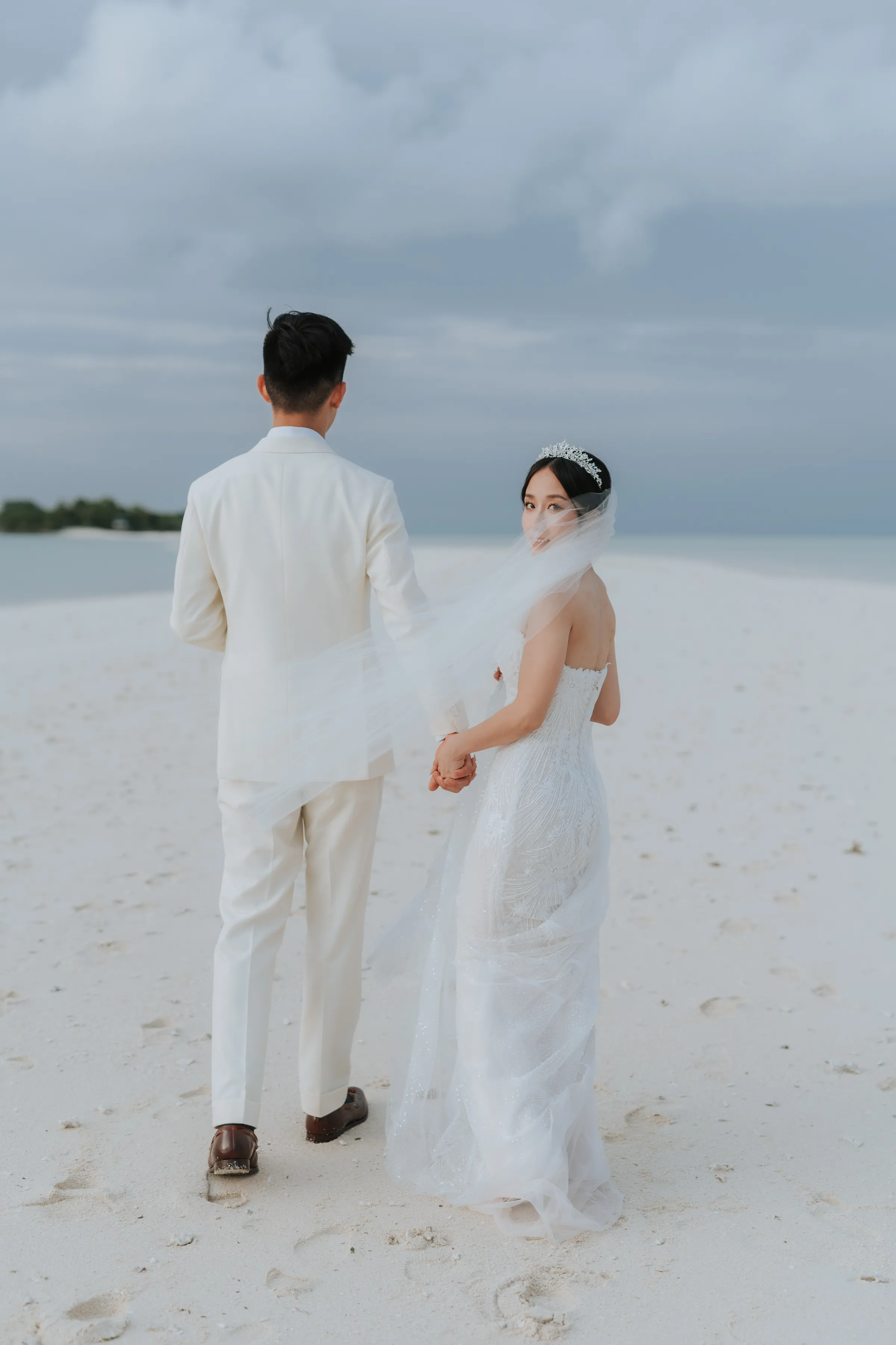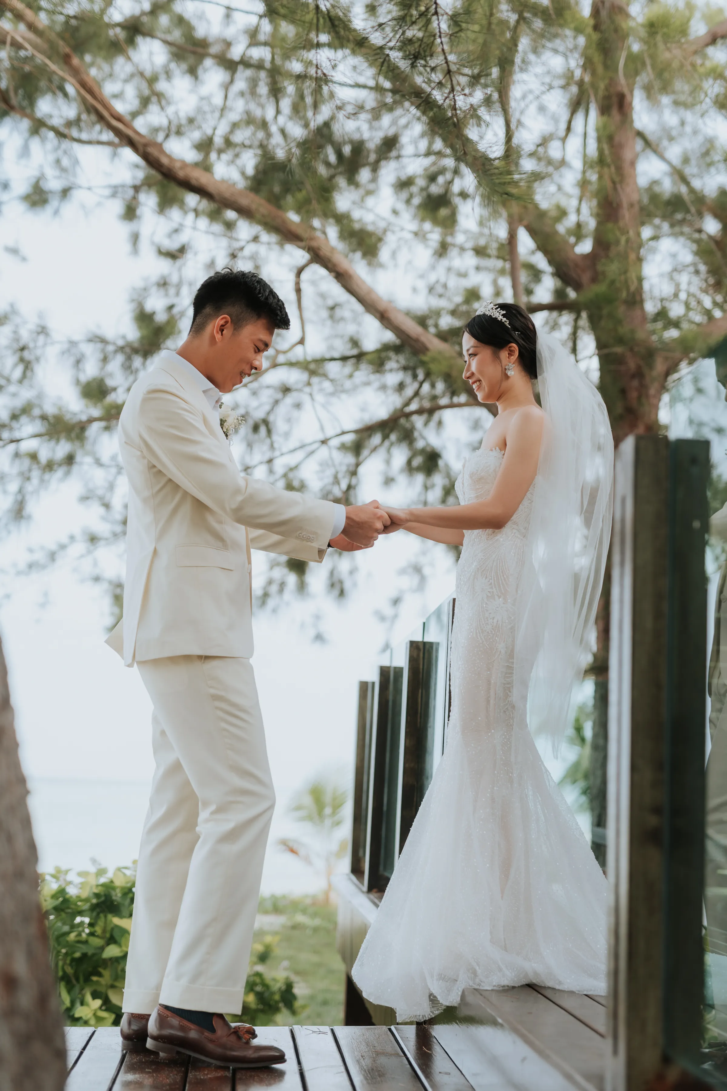 To overcome the issue of logistics, a bridesmaid did Sissi’s hair whilst she did her own makeup. The couple planned their own wedding remotely and entrusted the staff at Mataking Reef Resort with the heavy-lifting on the day. Austin’s groomsmen decorated the bridal room whilst they observed the traditional Chinese practice of picking up the bride in a most modest fashion.