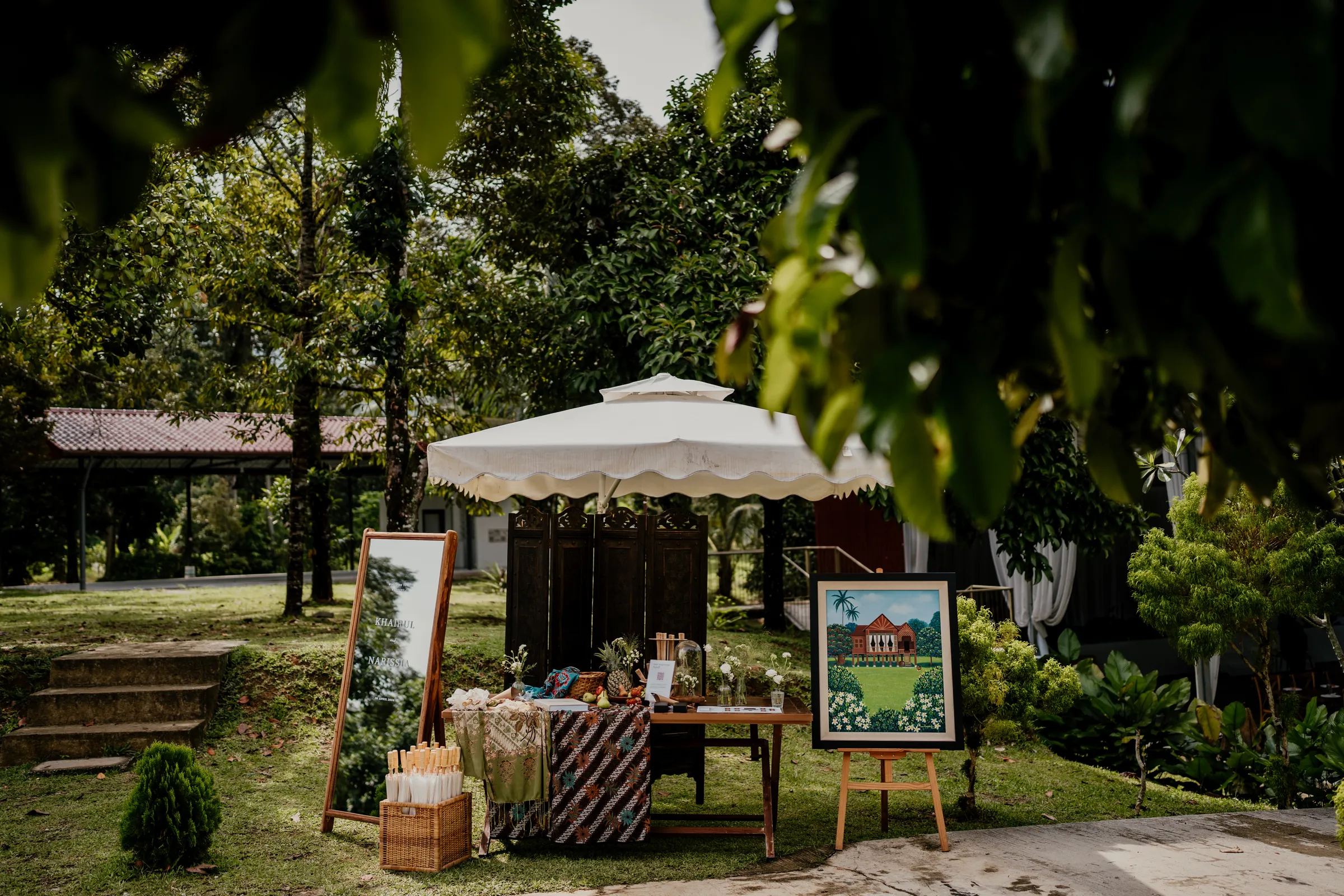 The couple initially had another venue in mind when they stumbled upon their wedding location on Instagram. Intrigued, they decided to visit it, and it was love at first sight. Nestled within the venue was a charming fruit orchard, a serene river, and a beautiful traditional Malay house.