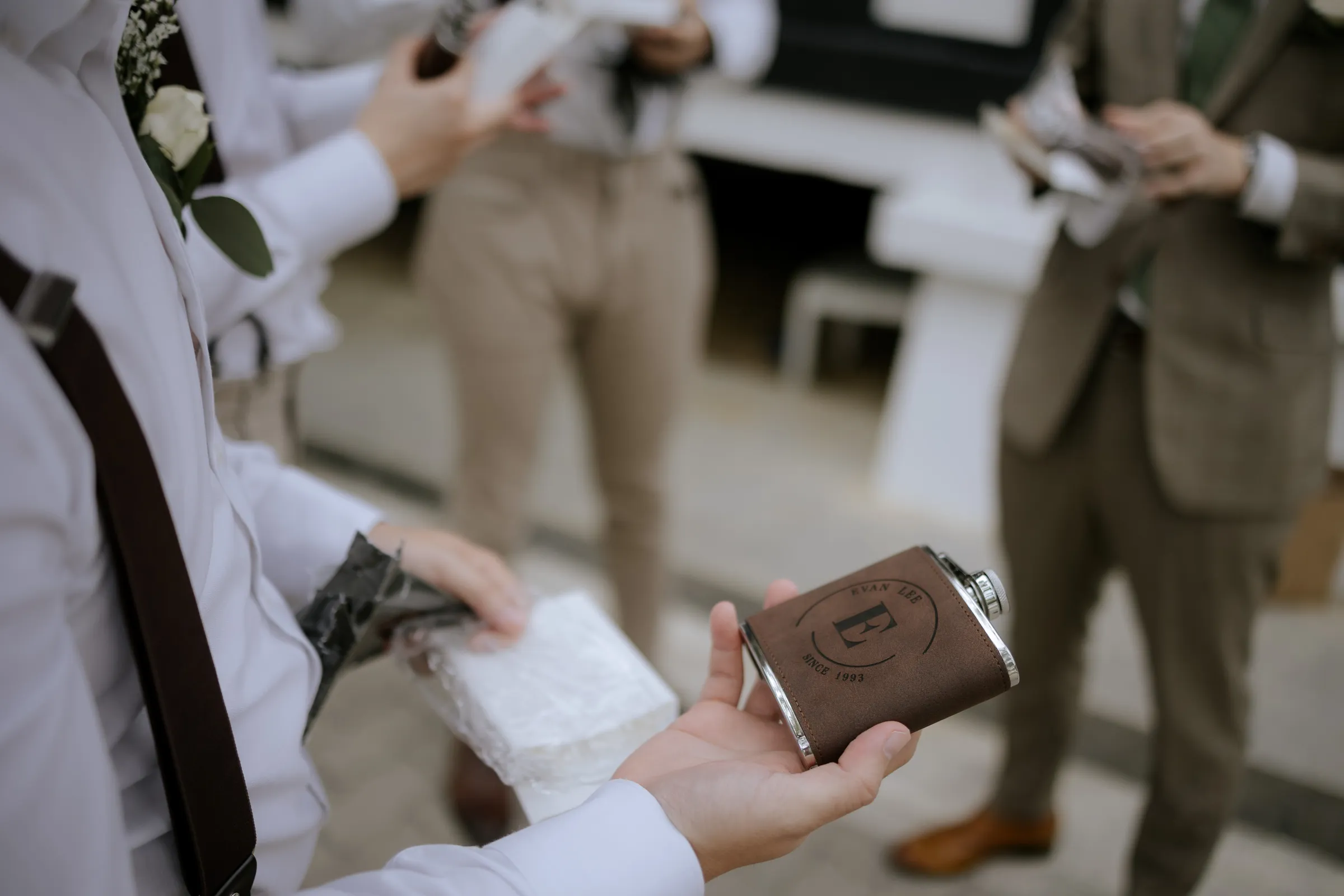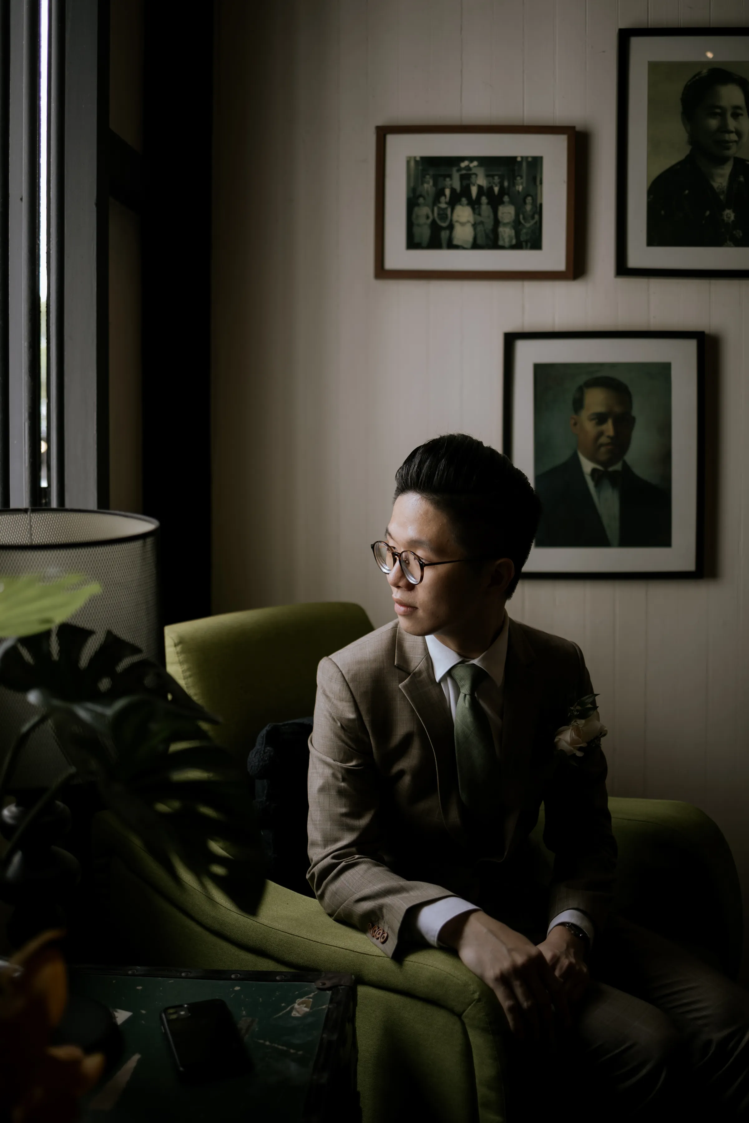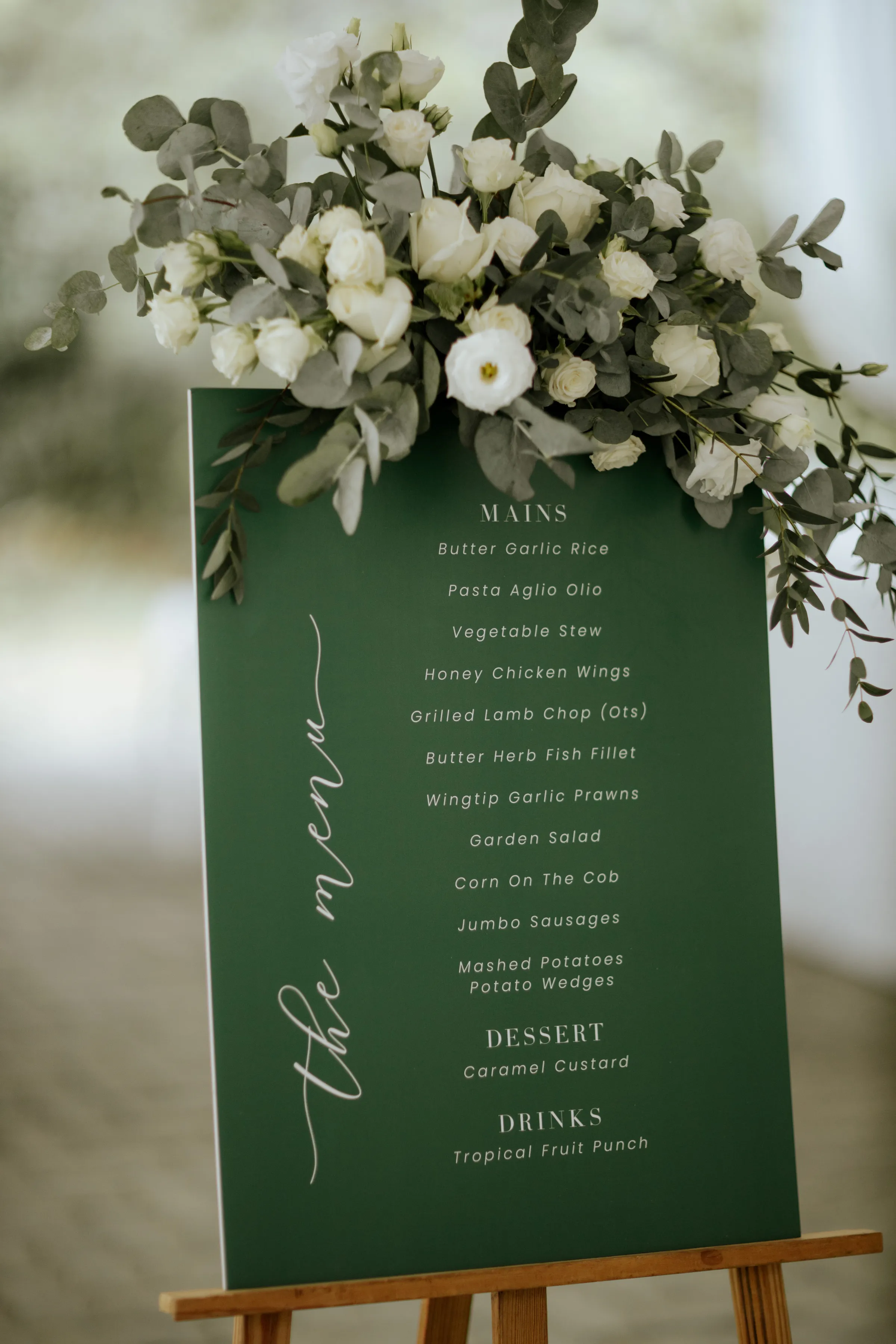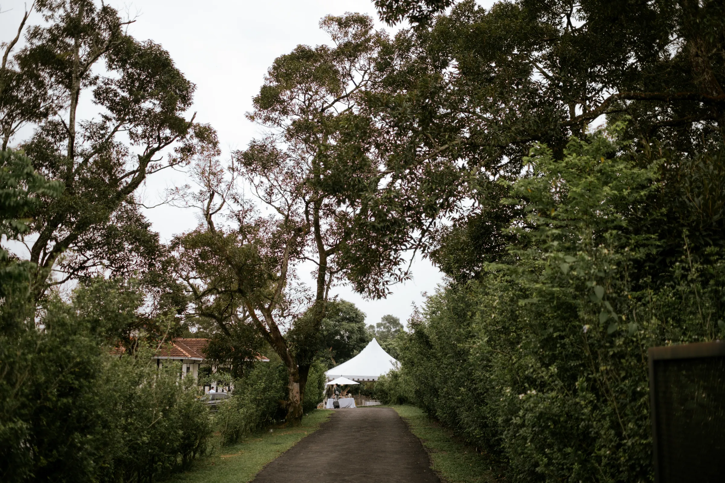 Synchronising their outfits, the bride wore a tailored-fit minimalist tube dress that complemented her lean figure perfectly. She completed her look with a custom-made a veil dotted with fresh pearls. Jeremy on the other hand, donned a complementary suit from 19th Stitch. “I only had to describe that my wedding will be done outdoor, and the put together the entire look for me, which I found to be perfect,” the groom explained. He wore a tailored-made suit in a unique tone in between a shade of olive green-brown, paired with a tie with a shade of army green.