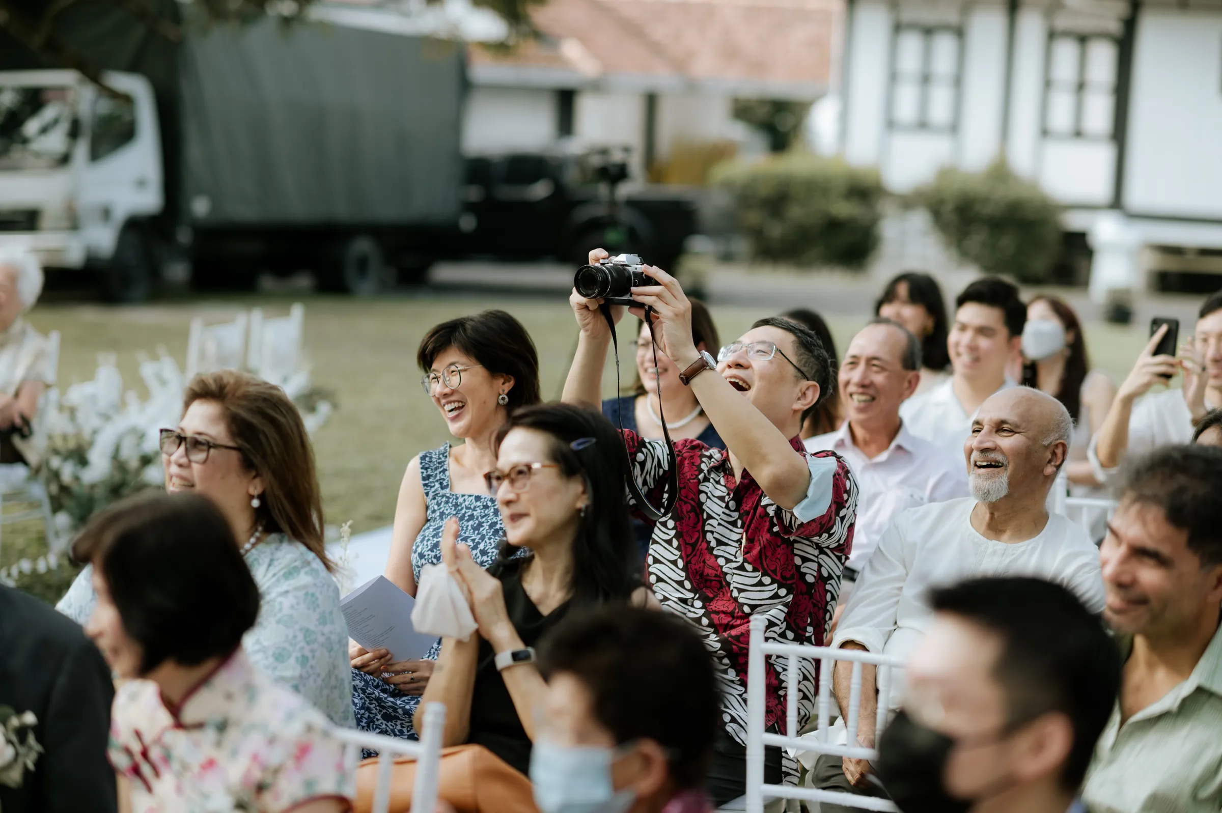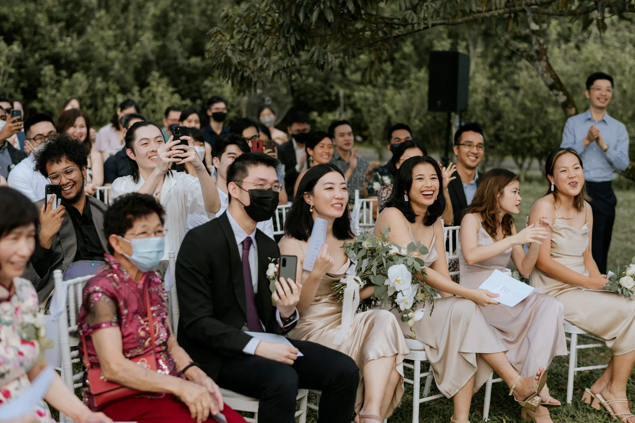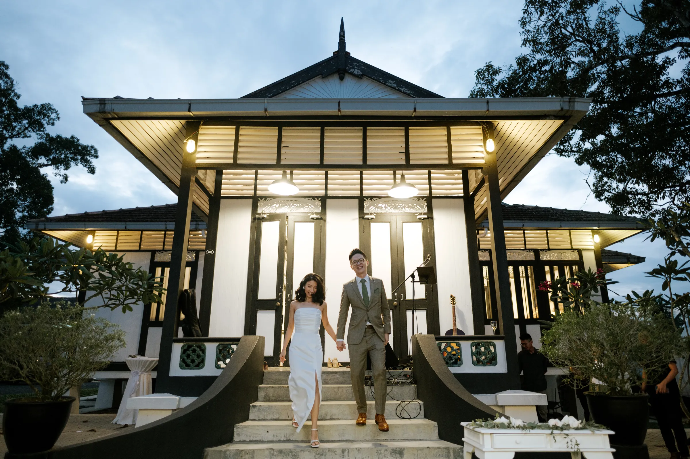 It was a huge advantage for the couple that the groom has an extensive network of wedding vendors and access to some of the latest venues for weddings and events, as he is a wedding photographer himself. When a wedding client booked Jeremy for a wedding photoshoot in K’Seena House, he realized that the space would make the perfect venue for his own wedding. The 100-year-old heritage home’s 24,000 square feet garden was simply breathtaking, with lush greenery and shady trees, allowing the couple to create a unique seating arrangement for their guests. The wide semi-circle layout provided an intimate setting for their vow exchange, with nature serving as the perfect backdrop for their special day.