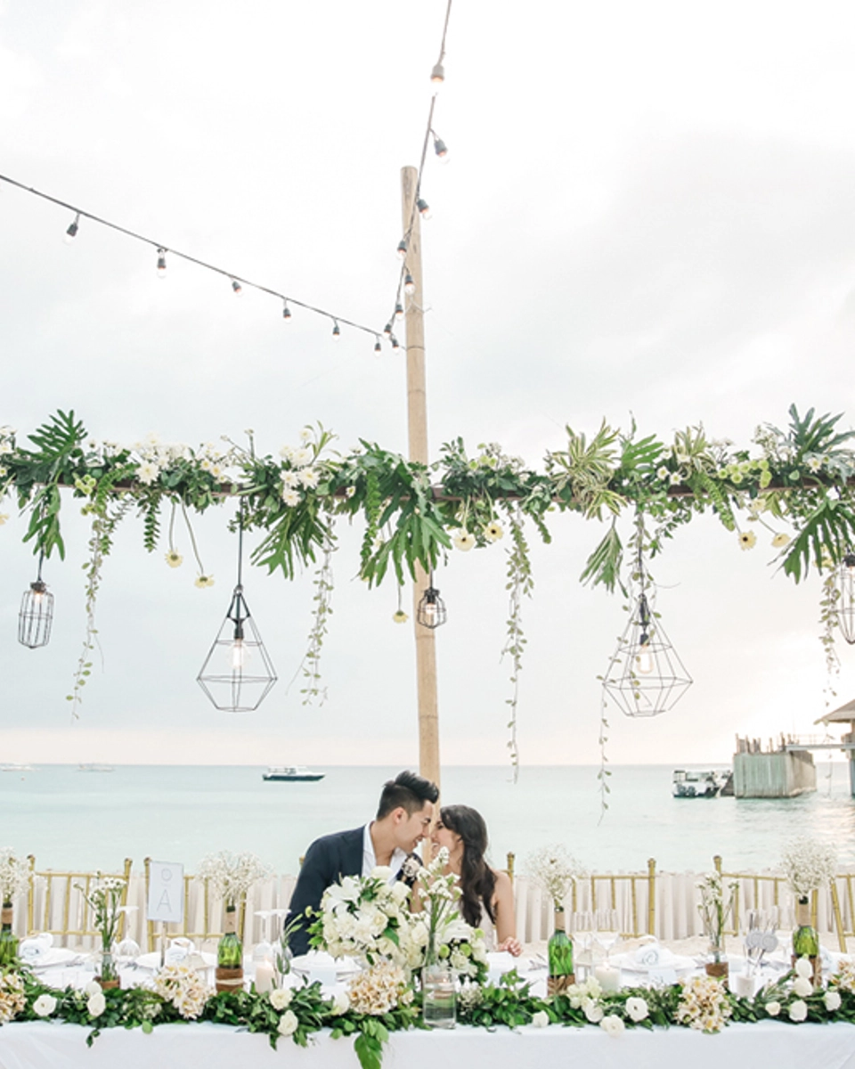 Photography by Mayad Studios / Videography by Mayad Studios / Ceremony Venue Our Lady of the Most Holy Rosary Catholic Church / Reception Venue Shangri-la’s Boracay Resort & Spa / Number of Guests 90 / Wedding Planning by Amanda Tirol of Boracay Weddings / Bridal Gown by Rachel Gilbert / Bride’s Shoes by Stuart Weitzman / Hair and Makeup by Victor Ortega & Team / Groom’s Attire by P. Johnson Tailors / Wedding Bands by Diamond Emporium / Bridesmaids’ Dresses by Zimmermann / Groomsmen’s Attire by P. Johnson Tailors / Flowers and Décor by Flowers and Events by Teddy Manuel / Wedding Cake by Shangri-La’s Boracay Resort & Spa / Wedding Favours DIY / Art and Stationery by Deciduous Press / Entertainment by Everyday People
