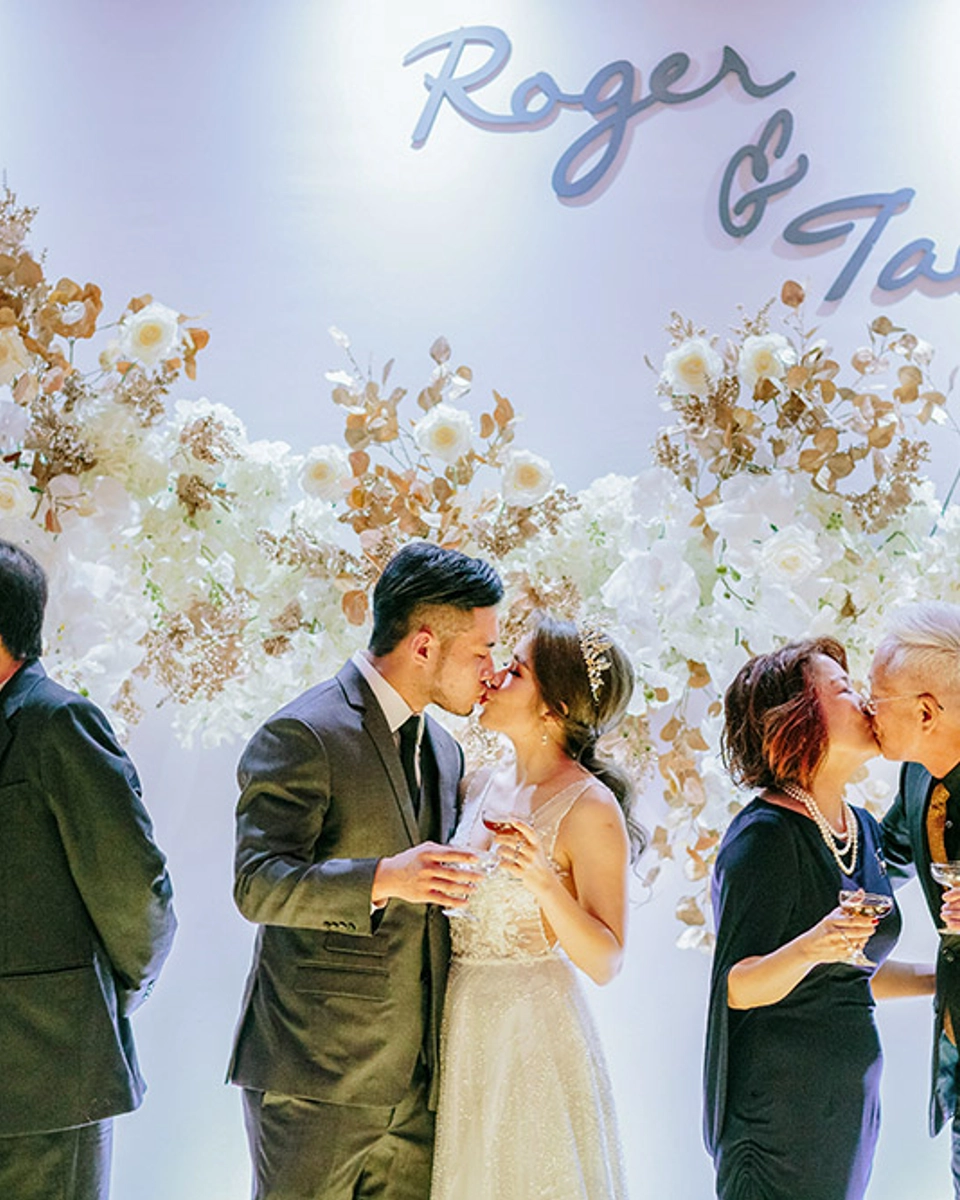 Photography by Jason Koong of MJK Photography / Videography by Sia Choo Long of Asia Production Cinematography / Venue Empire Hotel Subang / Number of Guests 350 / Bridal Gown by Emcee Bridal by MeiChi / Bride’s Shoes by Christian Louboutin / Hair and Makeup by Keith Styling; Cole Tan Makeup / Bridesmaids’ Dresses by Doublewoot / Wedding Cake by Empire Hotel Subang / Flowers and Décor Marble & Co. / Wedding Favours by Pretty On Plate (Aaron Quay) / Art and Stationery by Yvonne Low of Hopeless Romantics / Entertainment by The Raw Note