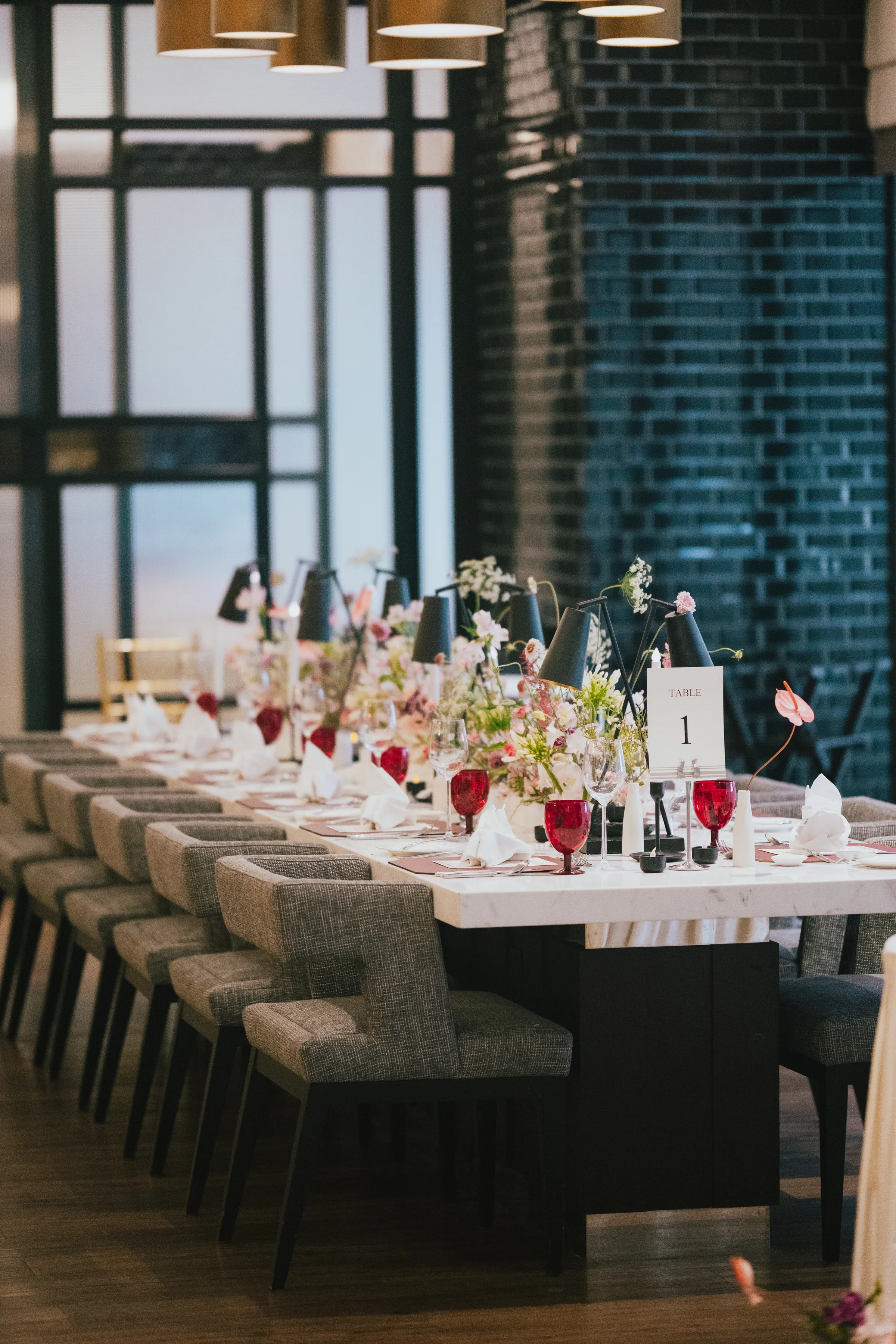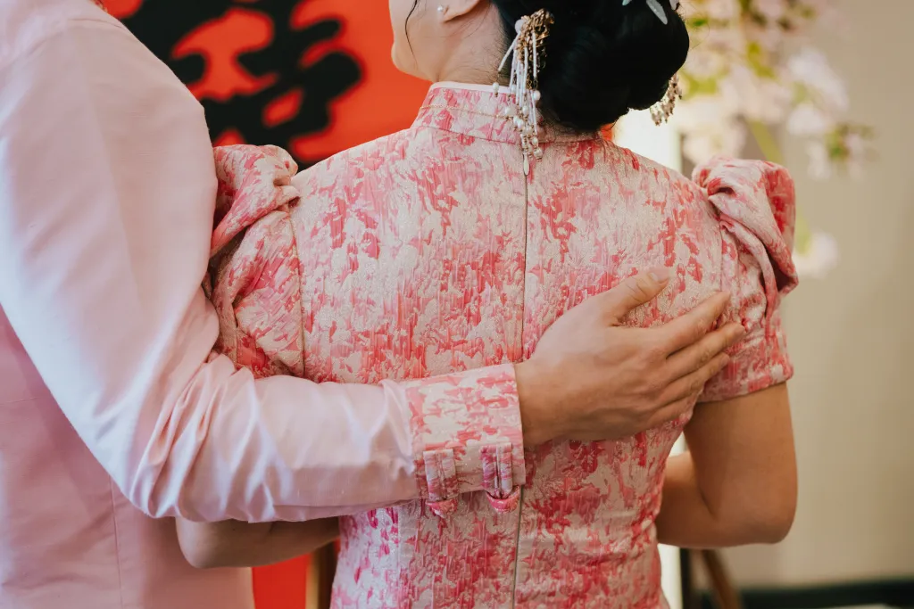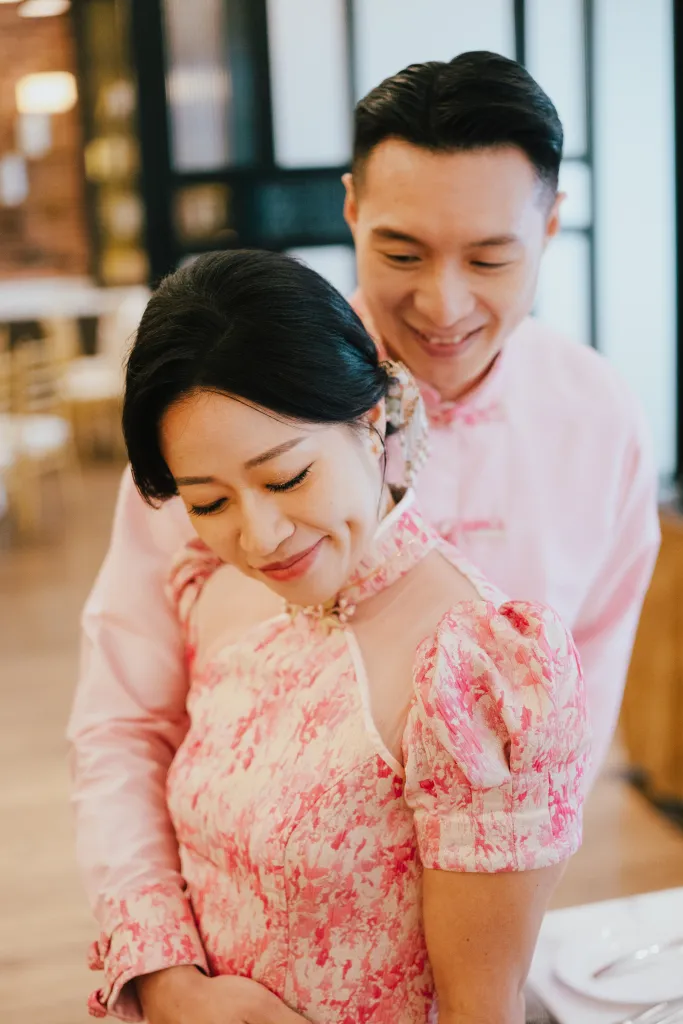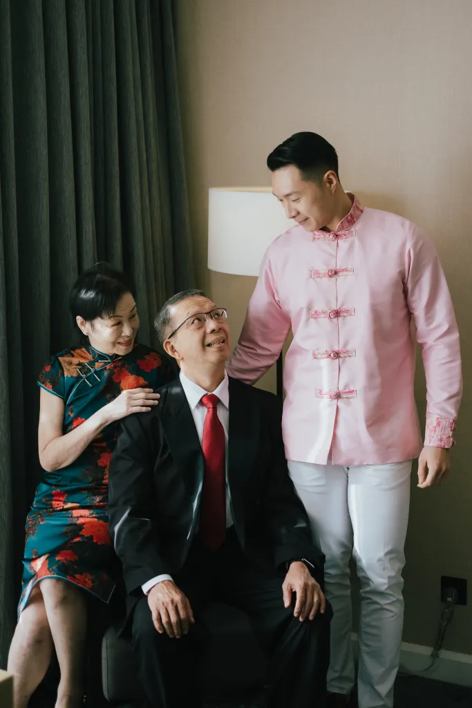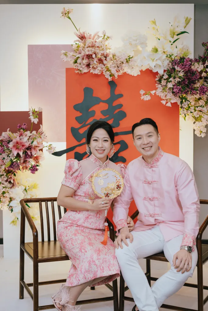 A standout feature of the day was the couple’s attire – modern, tailor-made cheongsam and samfu by Maarimaia. The striking hot pink hue of the fabric serendipitously took center stage, infusing a contemporary flair into the wedding motif.