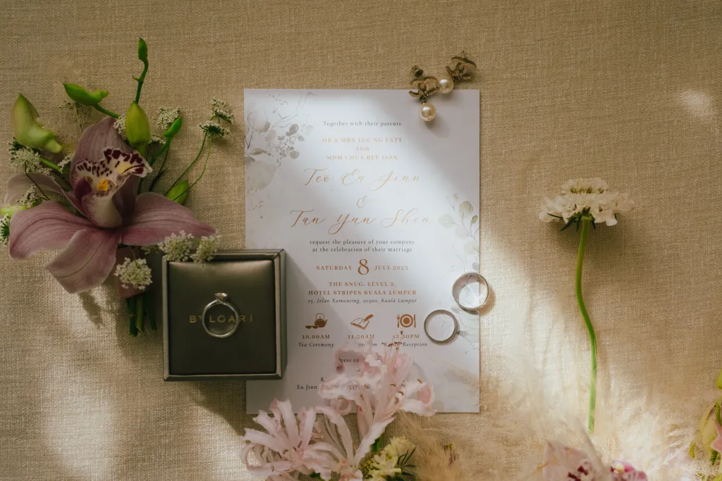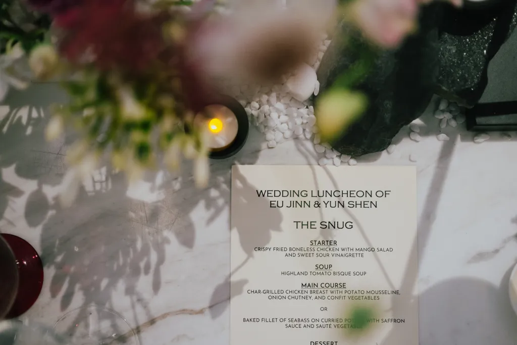 Contrary to the conventional choice of an elaborate wedding theme, Eu Jinn and Yun Shen embraced simplicity, whimsically titling their theme “Wedding.” This laid-back stance towards their nuptials allowed their planners, Cheryl and Mei, to orchestrate a day that felt both effortless and enchanting.