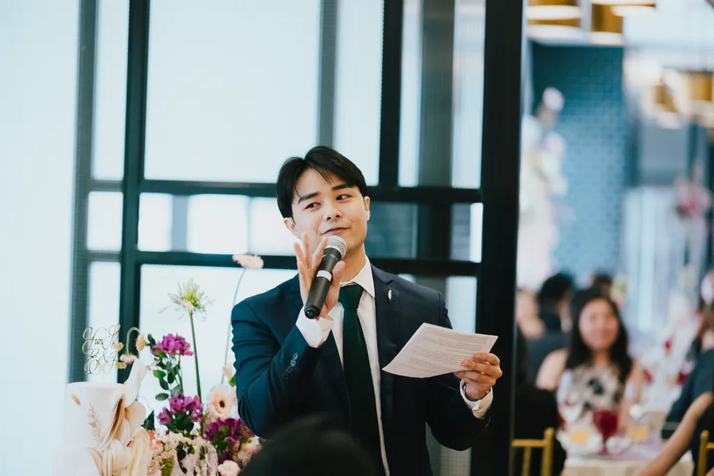 The luncheon itself was marked by simplicity, eschewing the usual fanfare of elaborate projections or live performances. The best man’s speech warmed the hearts of all present, paving the way for Eu Jinn’s heartfelt address to Yun Shen, a surprise that conjured a wave of emotion among their guests.