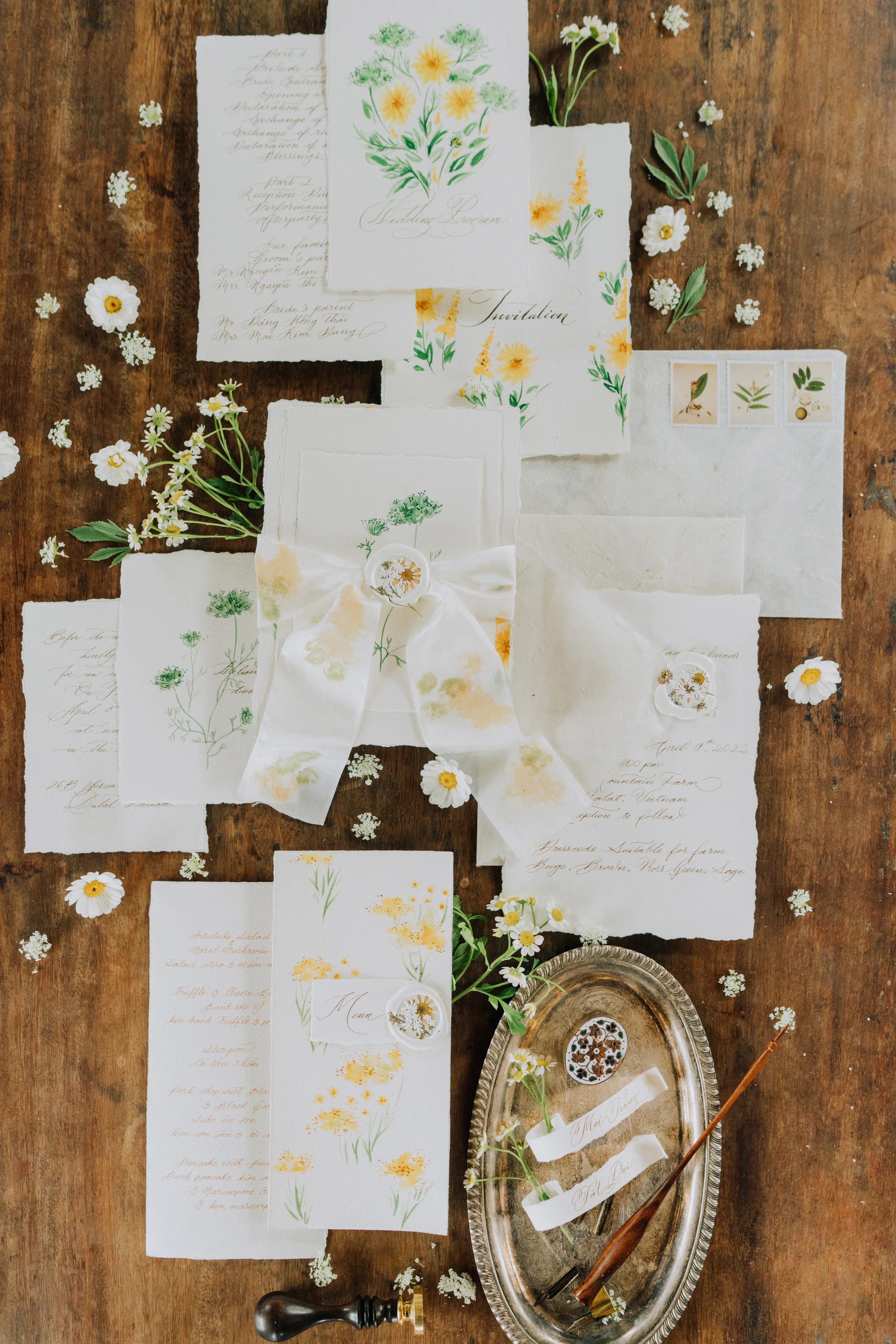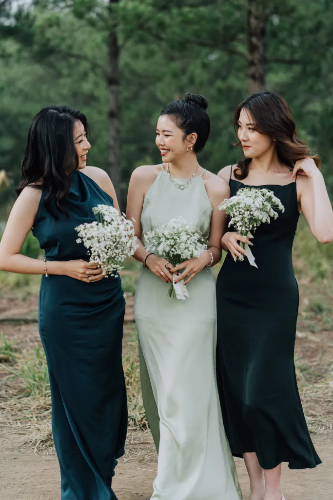 The couple enlisted decorators-Royal Swans, who wove a palette of viridian greens and spring pastels into their picnic-inspired wedding. They brought the bride’s dream to life by intertwining carefully chosen details into the stationary, and floral arrangements and decor. Surrounded by nature’s tapestry, Trang and Đại vowed eternal companionship, witnessed by 45 of their closest family and friends.