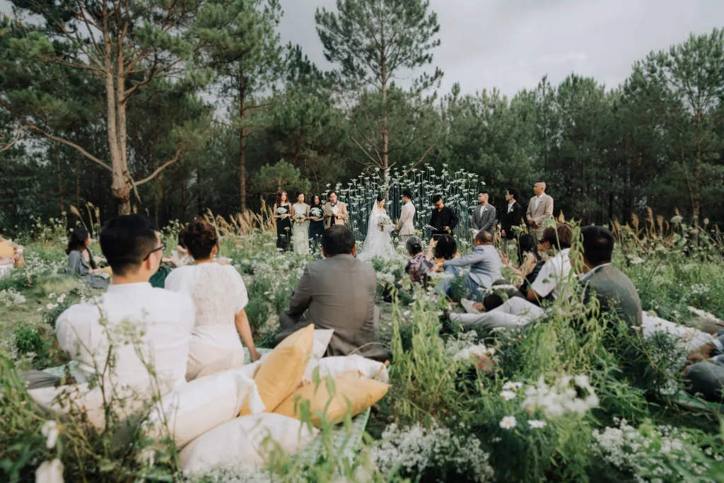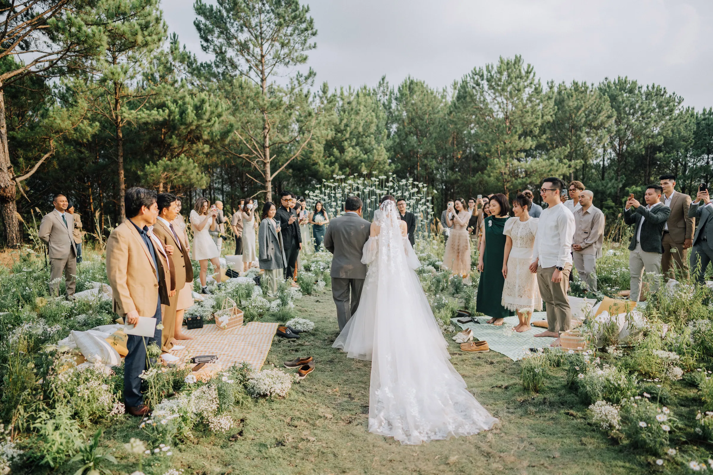 Let’s embark on the romantic journey of Trang and Đại, a tale that blossomed from the modern alleys of social media to the tranquil embrace of Đà Lạt’s forest allure. Trang and Đại’s quest to locate the perfect venue found solace in the enchanting wildflower fields of Blue Mountain Farm. For Trang, a city dweller, the yearning for nature’s whisper was an unacquainted desire. The wedding was to be an escapade for their loved ones from the hustle of Hà Nội to the serenity of Đà Lạt.