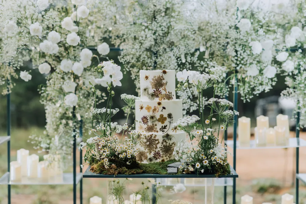 A vanilla wedding cake, adorned with pressed wildflowers, became the centrepiece of a sweet culmination. Westlife’s tunes wove into the evening, and Bùi Công Nam’s live serenades gave way to the rhythmic beats of a friend-turned-DJ, as Trang and Đại’s wedding transpired into an idyllic festivity.