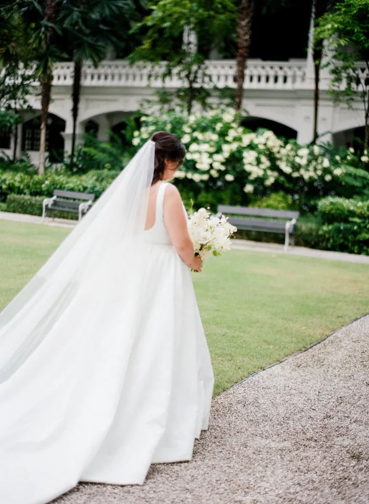 Amidst the historical grandeur of Singapore’s Raffles Hotel, Rachel and Derek celebrated their union in a ceremony that exemplified classic elegance infused with personal nuances. This iconic location, steeped in colonial heritage, provided a picturesque setting for their moss green wedding celebration.