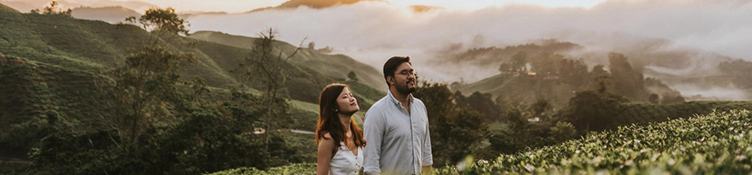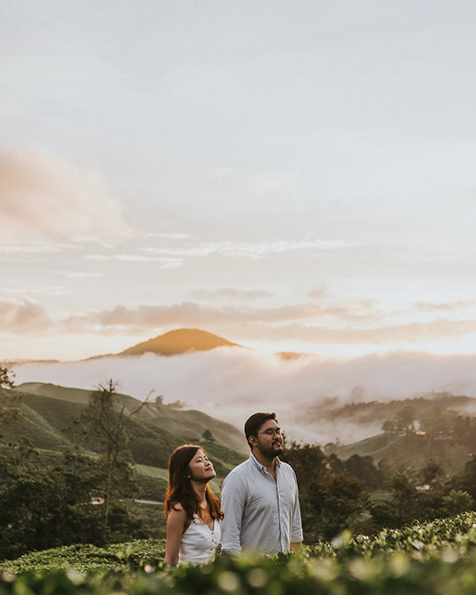 The couple had no idea what to expect. Although the weather forecast indicated mist and a cloudy, rainy weekend, they had faith that they would capture a glorious sunrise on the tea plantation where they were to stay. Thankfully, the weather held. Waking up at 4am for the shoot was worth it in the end!