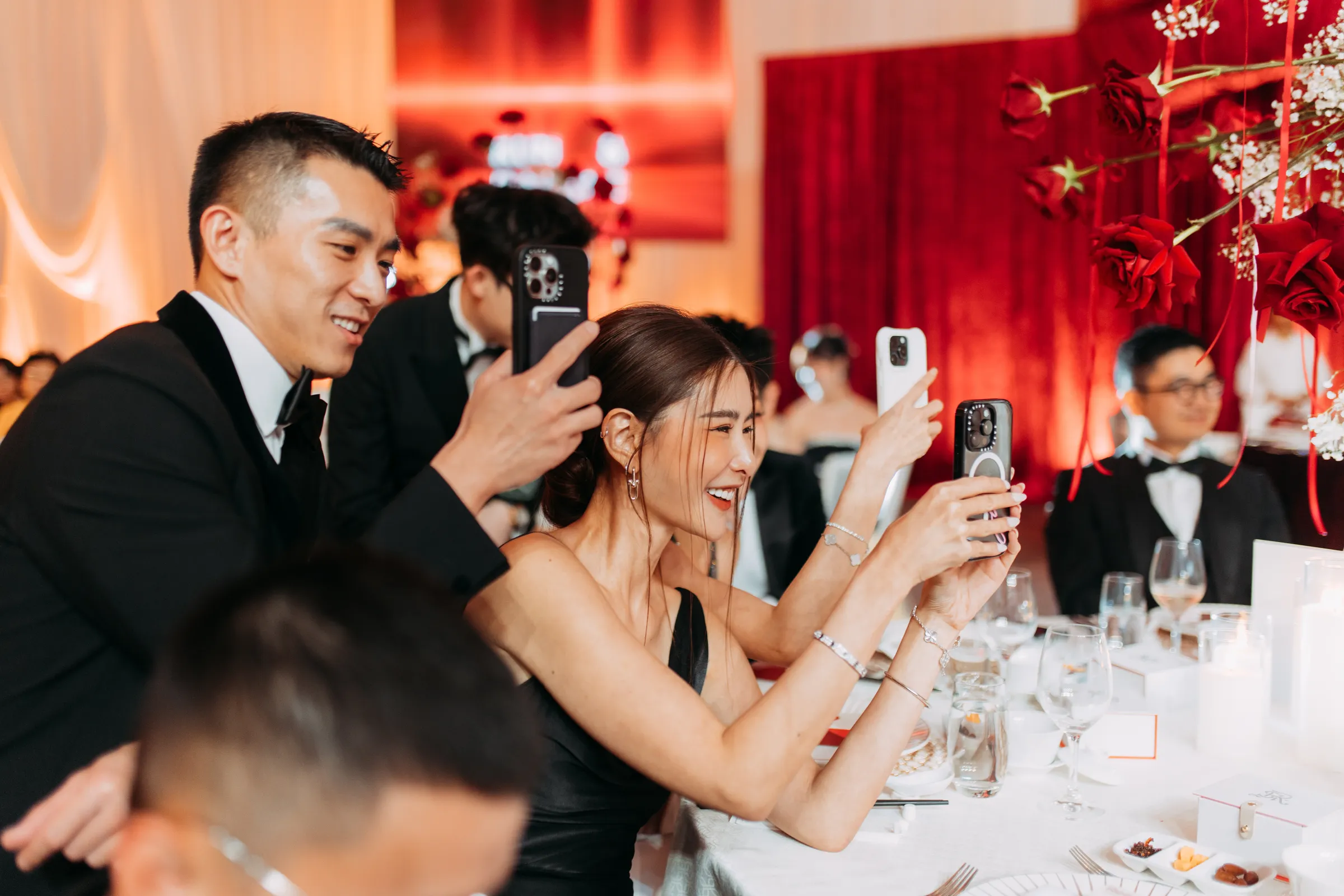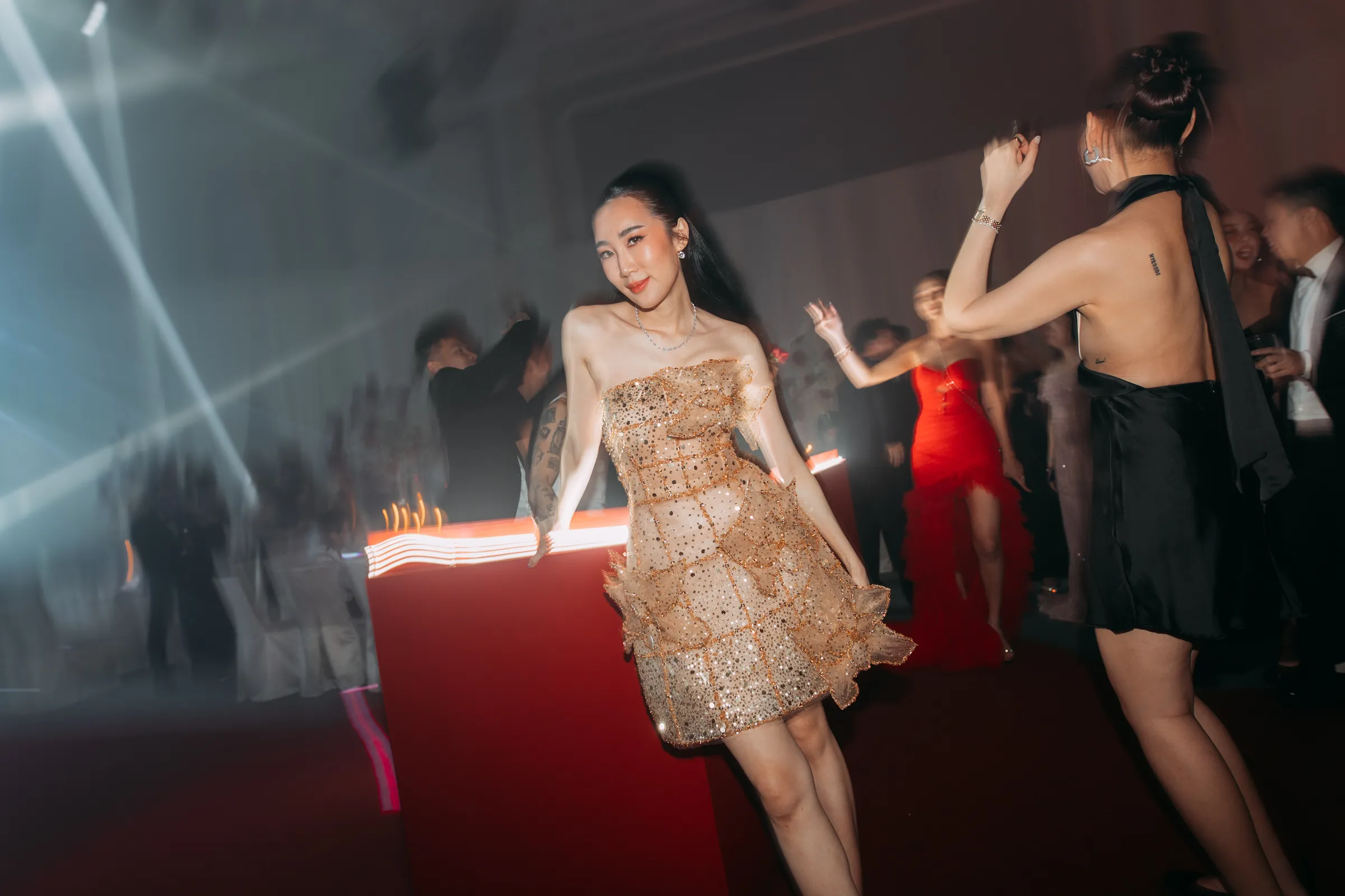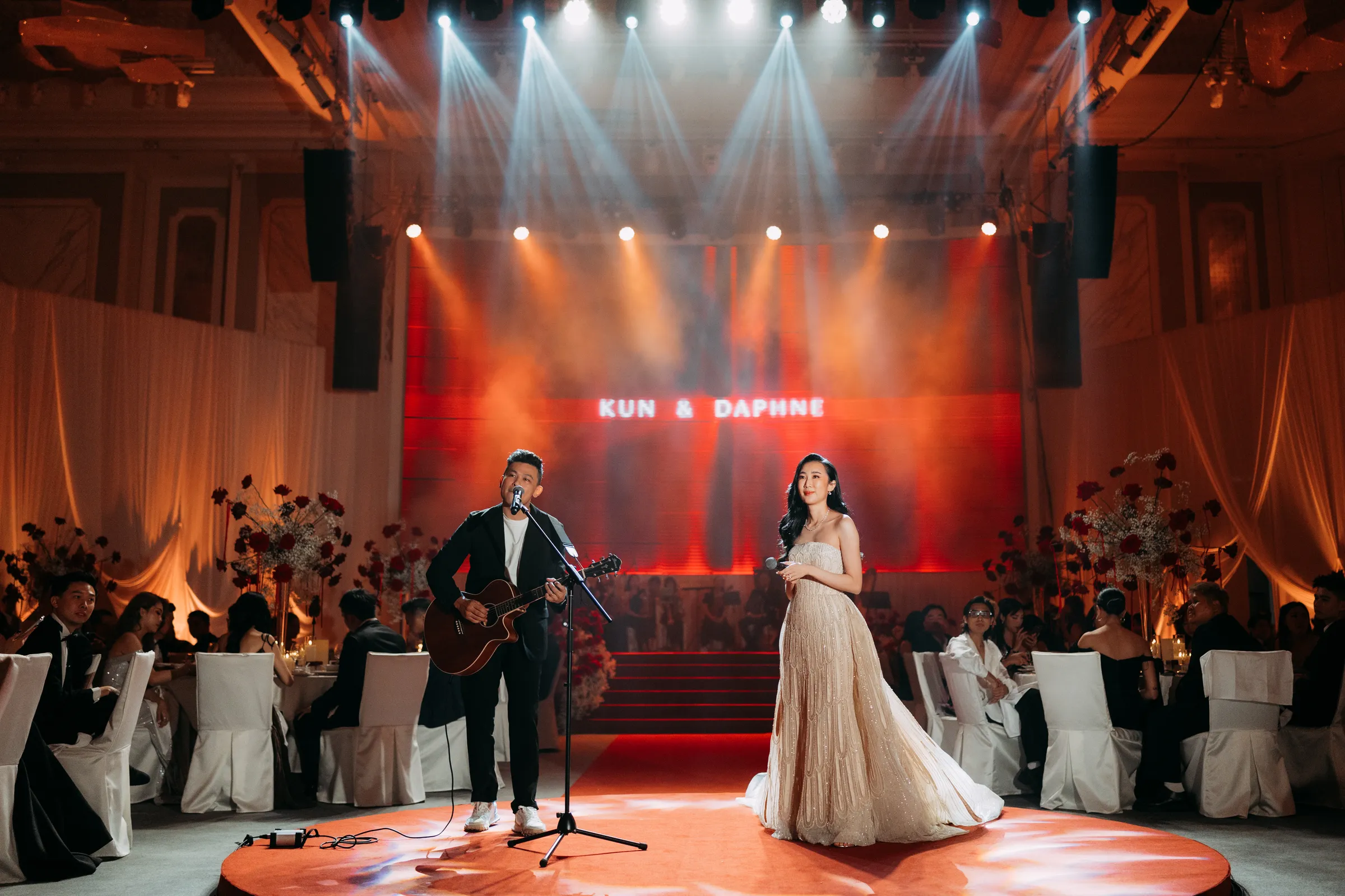 The evening’s sophistication was elevated by a 15-piece orchestra, performing a curated selection of songs that ranged from classical pieces to modern English and Mandarin melodies. Daphne’s passion for music infused every detail of the evening, with standout moments such as the orchestra’s performance of “Turning Page” during the couple’s first march-in—a cinematic touch inspired by her love for the Twilight series.