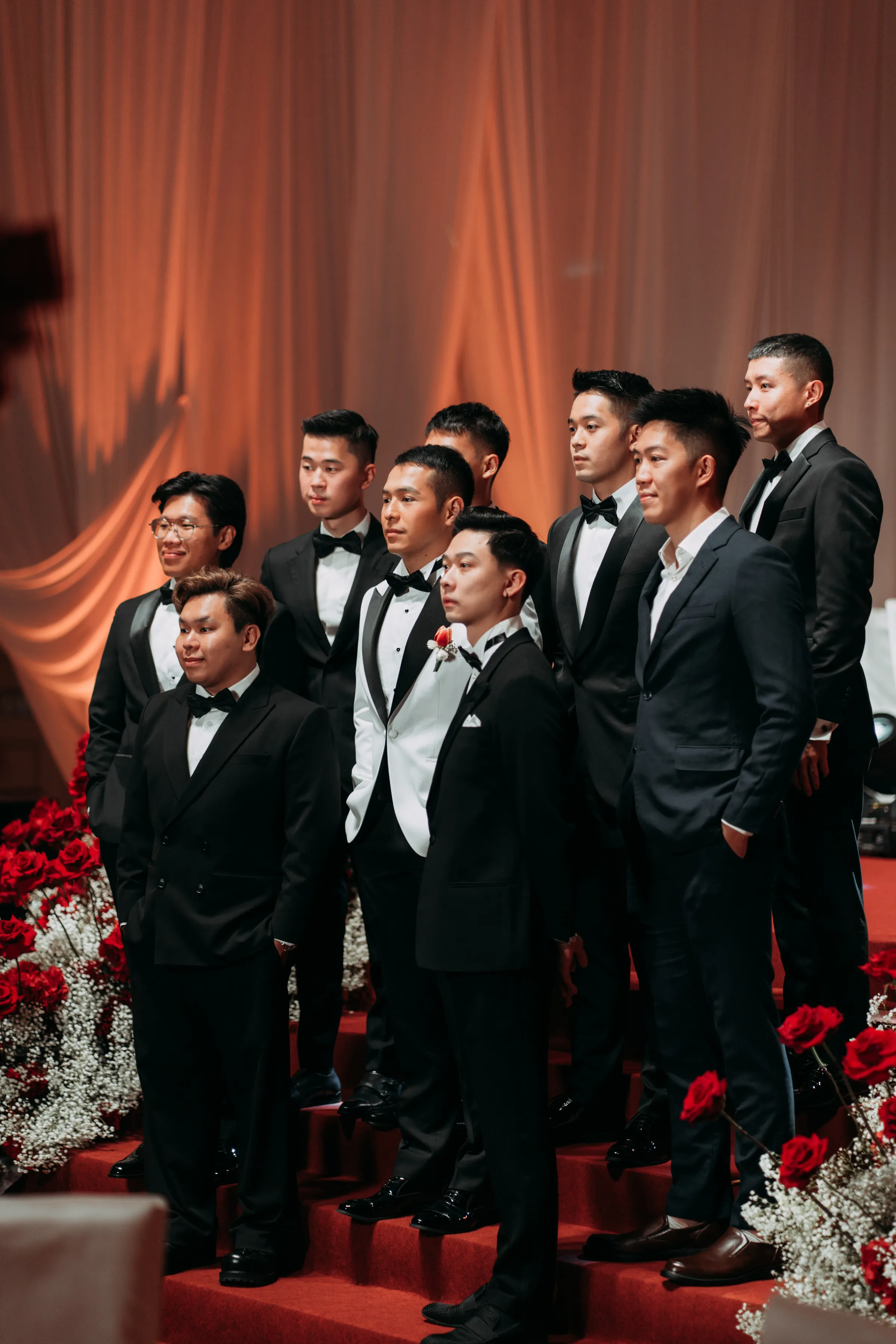 A standout moment was the couple’s inclusive speeches and dedications. Daphne’s slideshow-filled speech radiated gratitude and surprise song dedication, while Kun, despite being introverted, surprised everyone with an emotional address. The impromptu singing of “朋友” (Friend) by the groomsmen was a touching moment of camaraderie and joy. Similarly, the speeches from bridesmaids and groomsmen resonated deeply, leaving an indelible mark on the day’s celebrations.