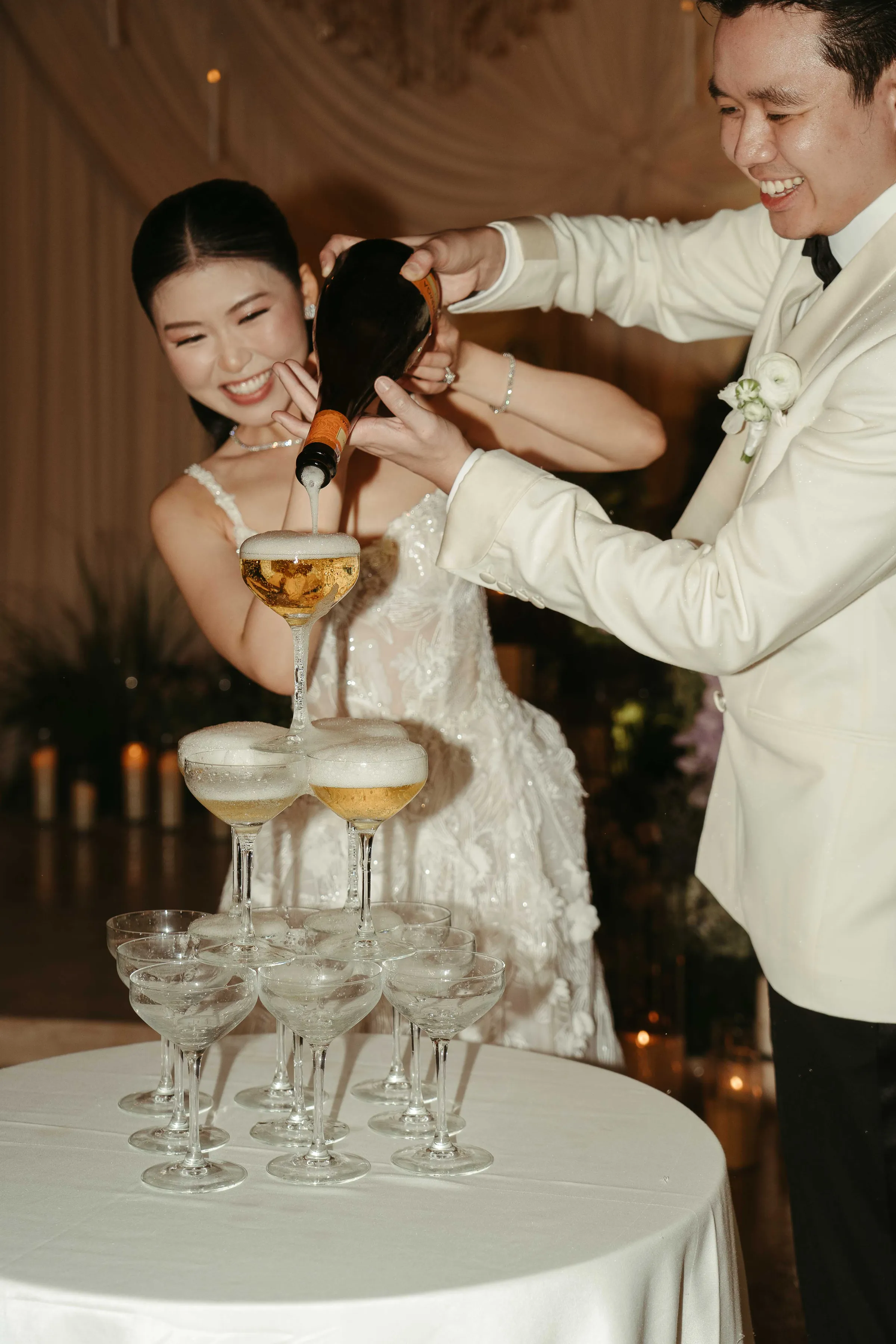 From the outset, the couple prioritized experience over formality. Cocktail hour reflected this beautifully, with interactive elements such as a burrata and focaccia bar and a make-your-own cocktail station. A playful “how well do you know the couple” quiz encouraged guests to engage, setting a relaxed and convivial tone.