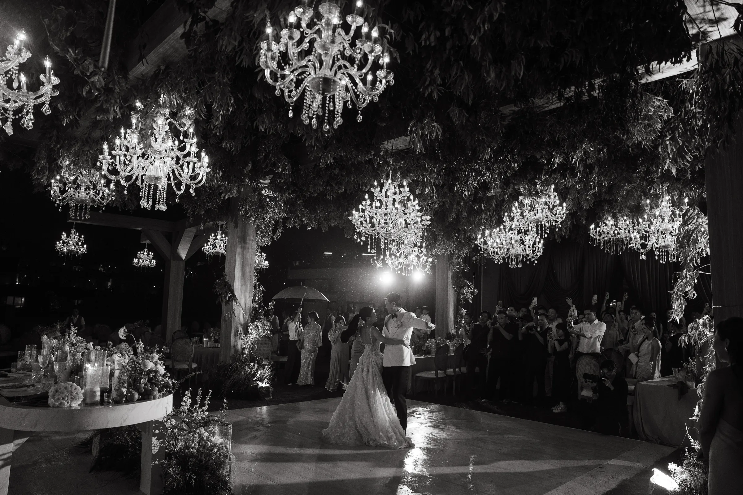 Later, as the rain softened into a gentle drizzle, the couple stepped outside for their first dance. Unplanned yet perfectly timed, they danced under the open sky as fireworks lit up the background. It was a moment that encapsulated the spirit of the day—imperfect, emotional, and entirely authentic.