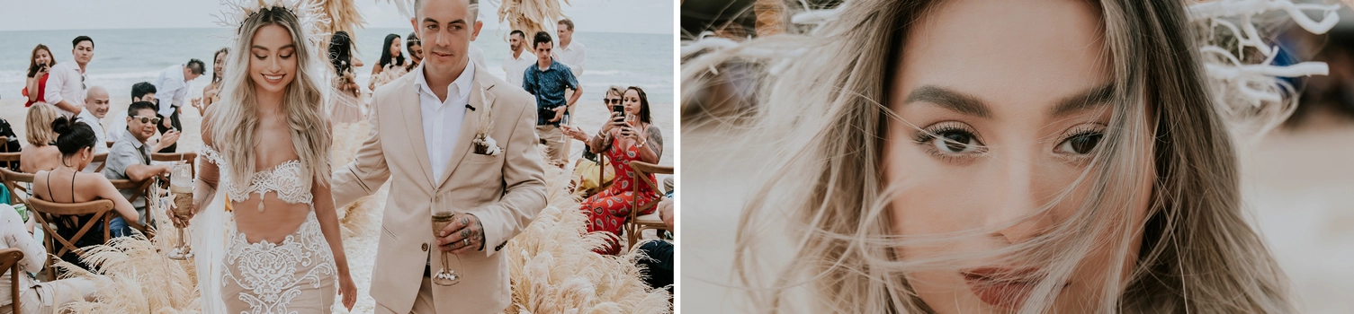 Thu: “We chose Ho Tram because it was the first beach we travelled to when we met. We had a beach wedding because we both grew up by the beach. Also, coming from a sailing background, I had always dreamed of a beach wedding.
