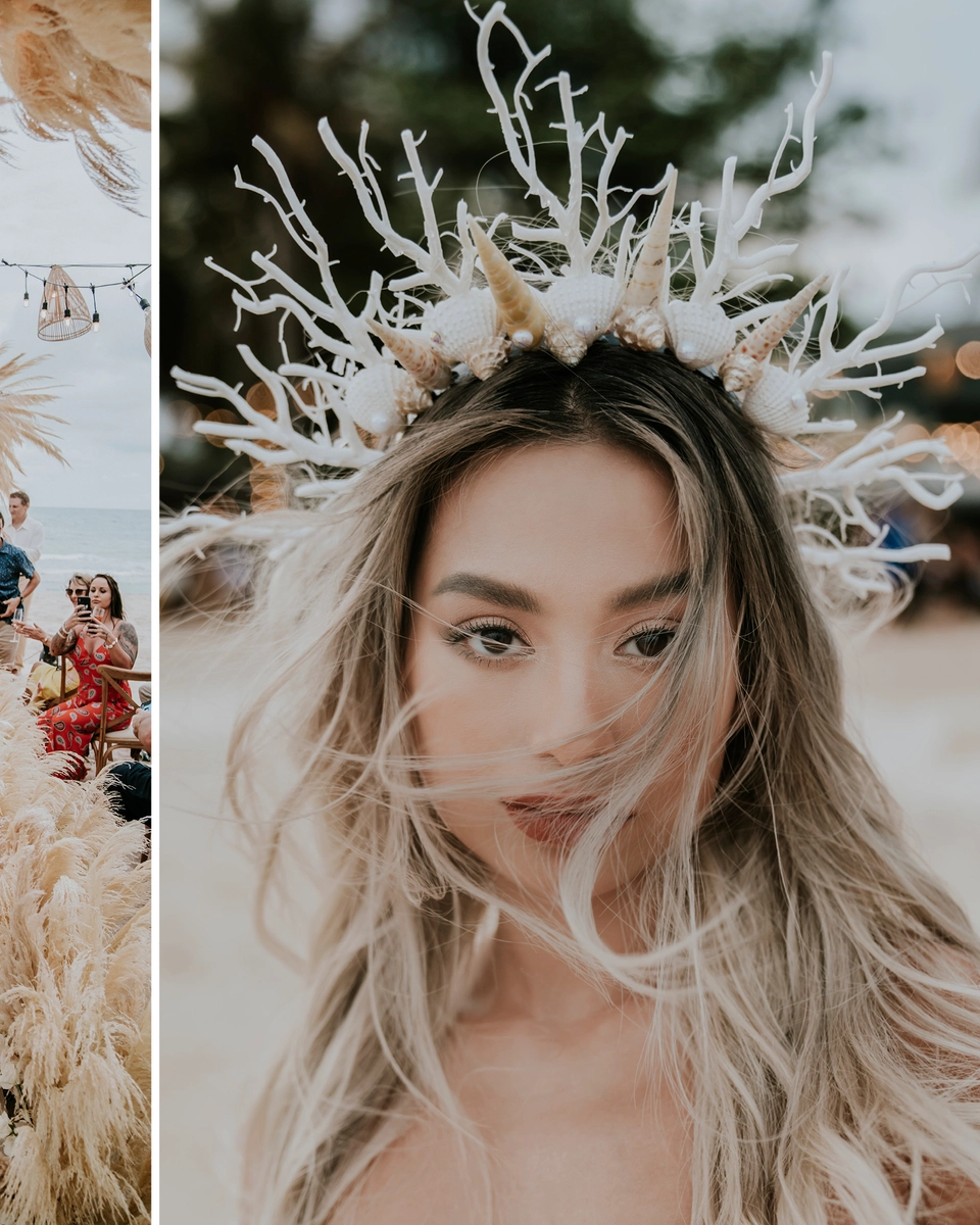 This wedding was all about the details and textures. What more is there to add, really, when you have a beach like this? Keeping to a colour palette of tan, nude and other neutral hues, the newlyweds ensured that their beach theme took centre stage. The bride even got to live out her fantasy of being a mermaid with a seashell halo crown! Many thanks to Hipster Wedding for capturing all the thoughtful elements that made this beautiful wedding.