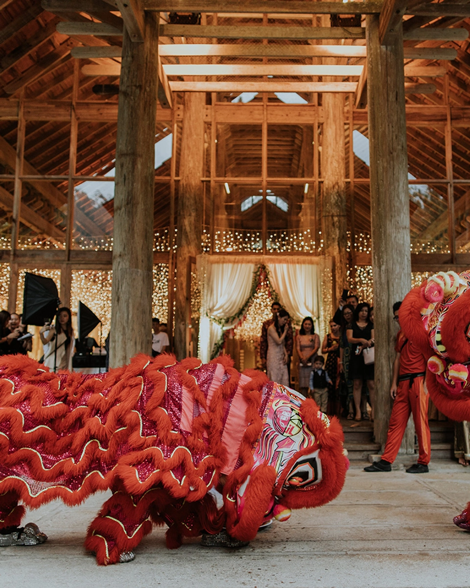 An interracial wedding is more than a bringing together of two families, it is also a blend of two cultures. It’s always interesting to see how brides and grooms do this, and we love how this couple paid homage to their respective heritage. Set against a sparkly backdrop of white and gold, red was the defining shade here, along with unique touches such as fairy lights, an abundance of flowers and colours, and wooden accents. What a textural delight! Many thanks to Louis Gan Photography for capturing this beautiful set of wedding photos.