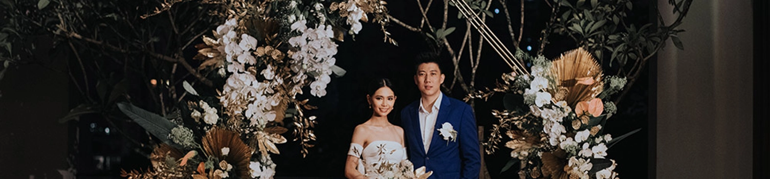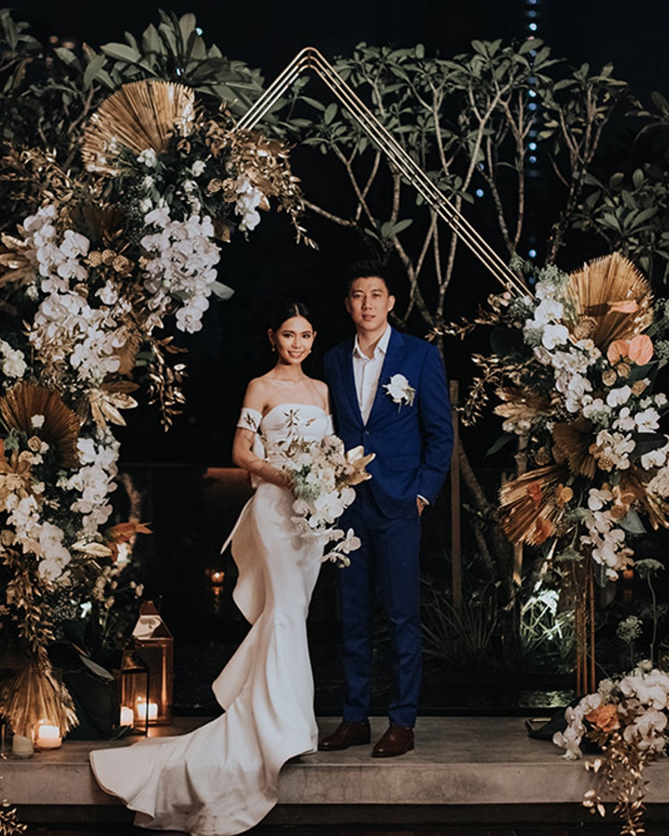 We often make the mistake of thinking that a small wedding has to mean something simple and lacklustre, but these newlyweds and wedding planner, Sherly of Tie The Knot, did exactly the opposite, achieving a wedding celebration that was both intimate and oh-so-glamorous. Amidst the lush backdrop of flowers and greenery was the understated elegance of a gilded geometric arch – we love how it peeks out as part of the backdrop while the couple exchanged their vows! Many thanks to MunKeat Photography for this beautiful set of photos!