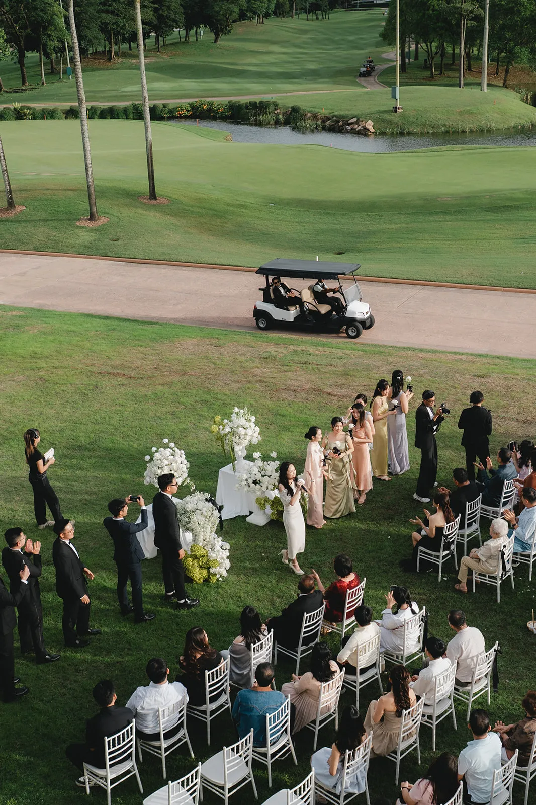 Set against the manicured greens of Kuala Lumpur Golf & Country Club, Sarveen and Meisy’s wedding was the embodiment of modern elegance with a distinct editorial flair. Meisy found her vision come to life with a stunning garden ceremony at sunset hour that blended her groom’s love for the game of golf and her dreams of a Vogue-worthy wedding.