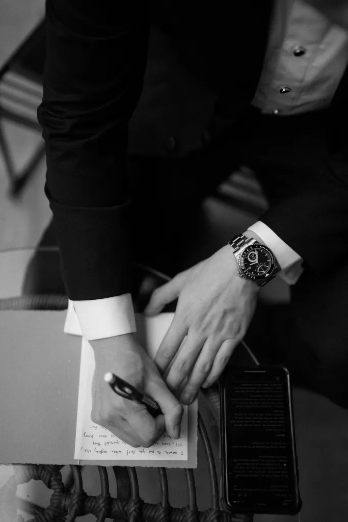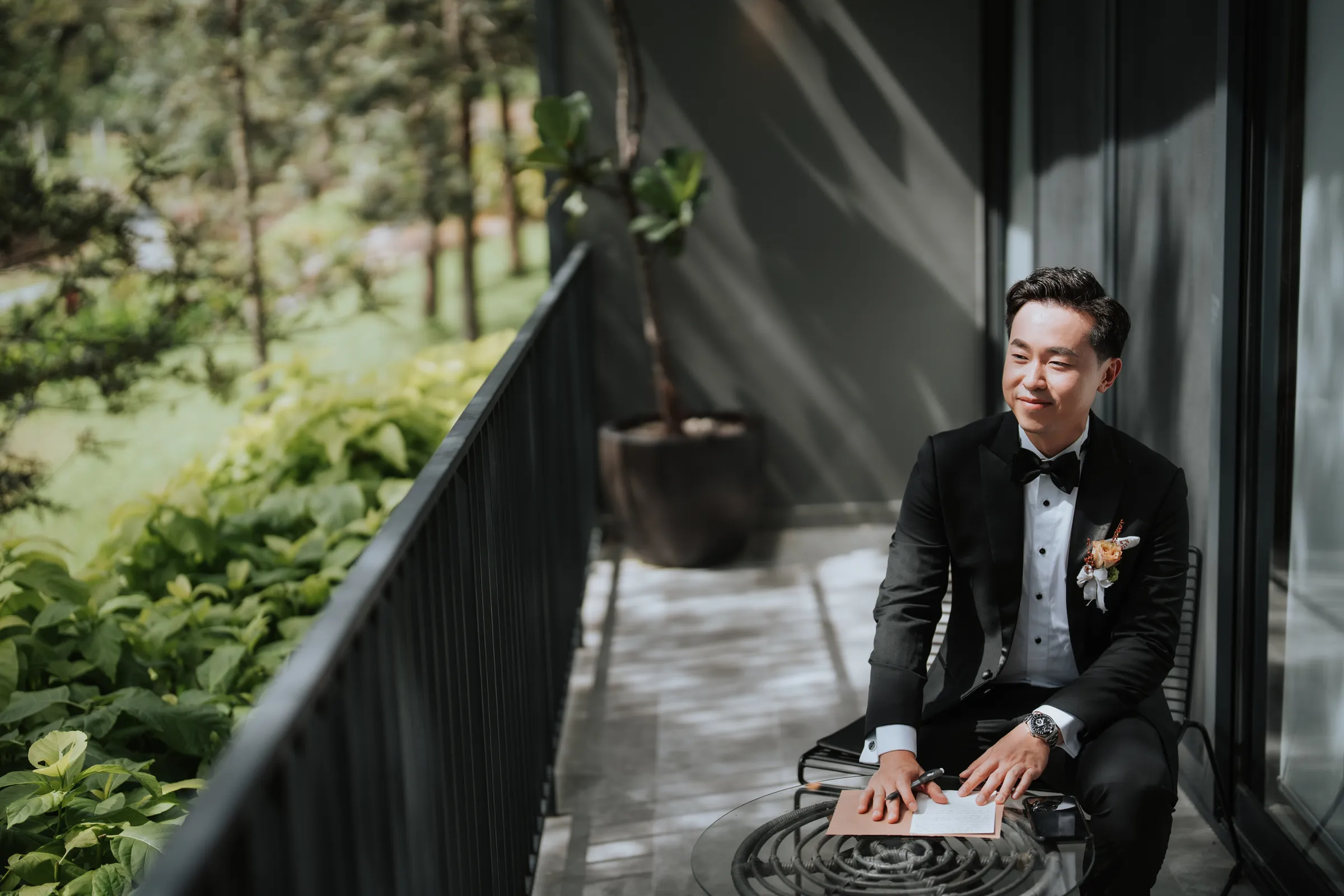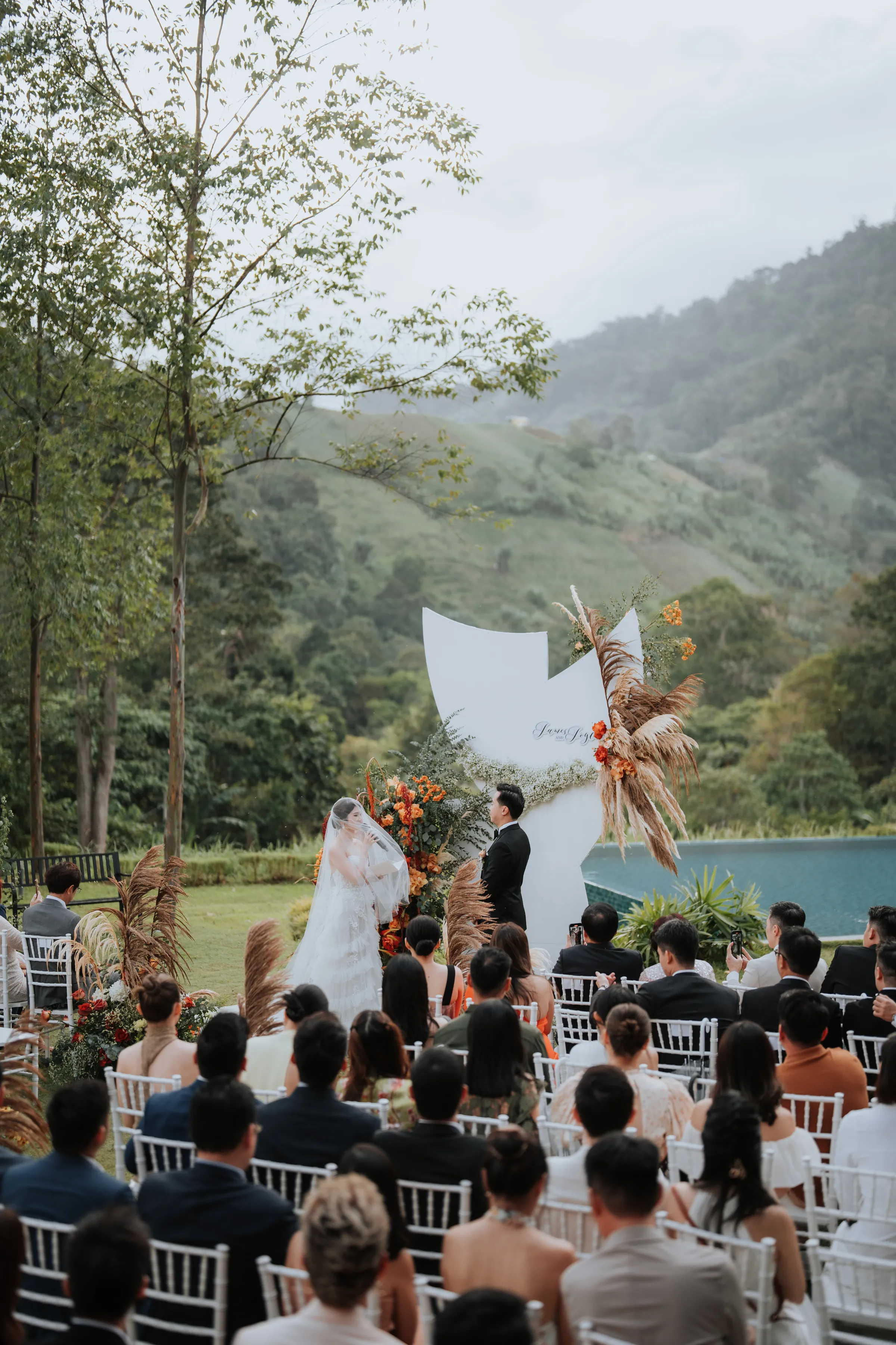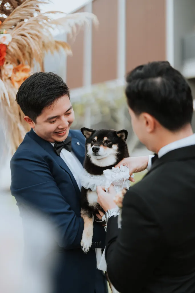 The wedding décor theme at The Acres Resort focused on celebrating nature’s beauty. They opted for a simple, elegant setup that wouldn’t overshadow the breathtaking natural surroundings. Personal touches infused their special day. Joyce designed the wedding invitations herself, putting her unique touch on every detail. Her dress featured custom-made beadwork, reflecting her style and personality, while James wore an independent watch from his best friend’s company, symbolising their shared journey as business partners.