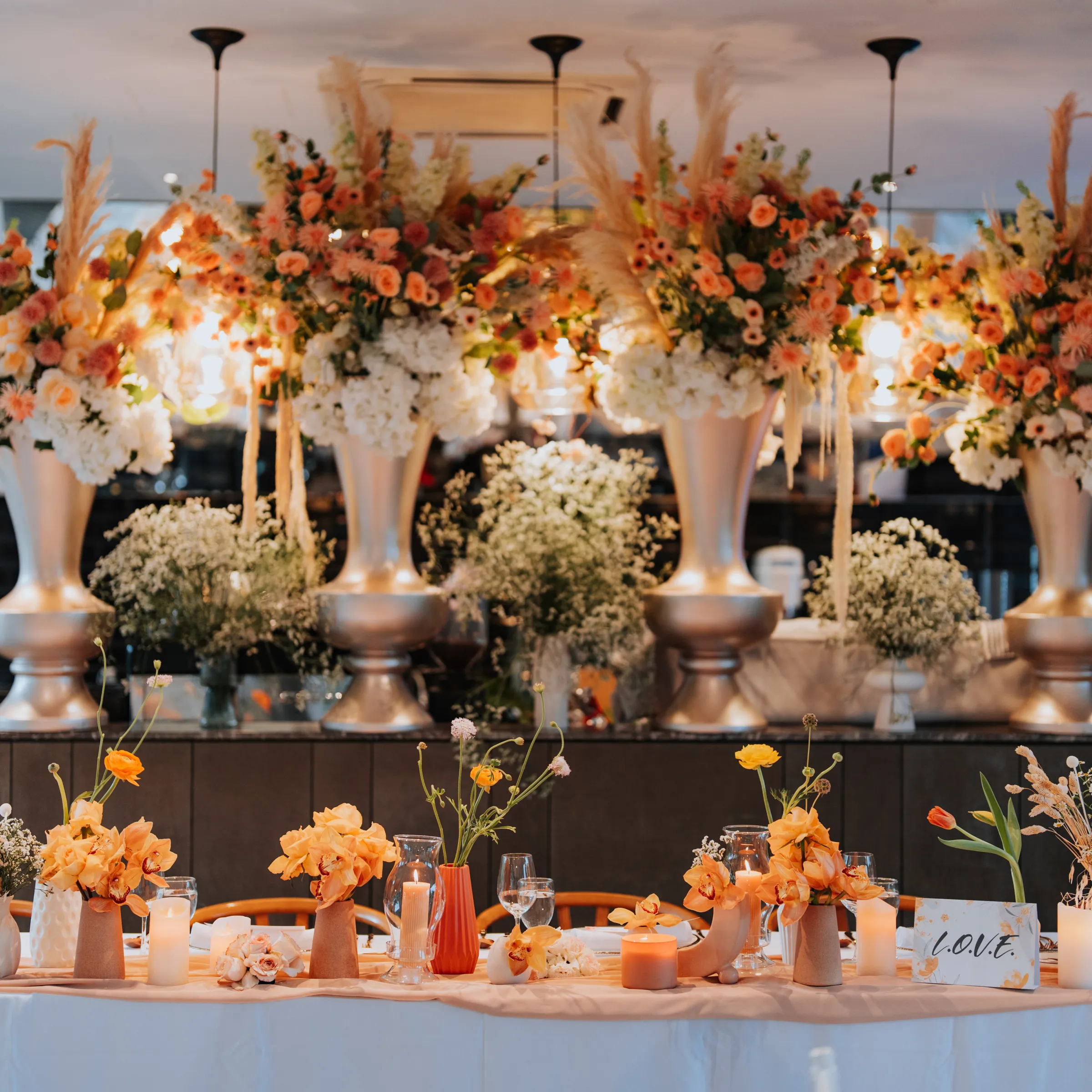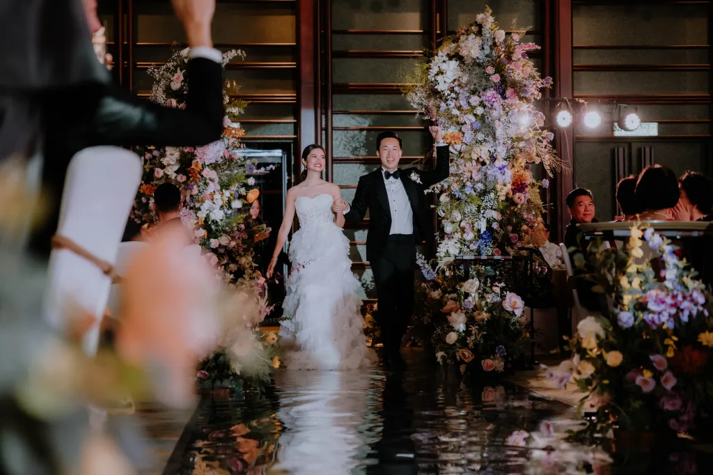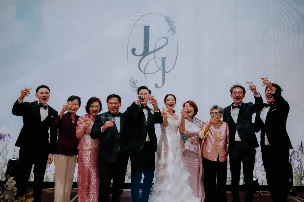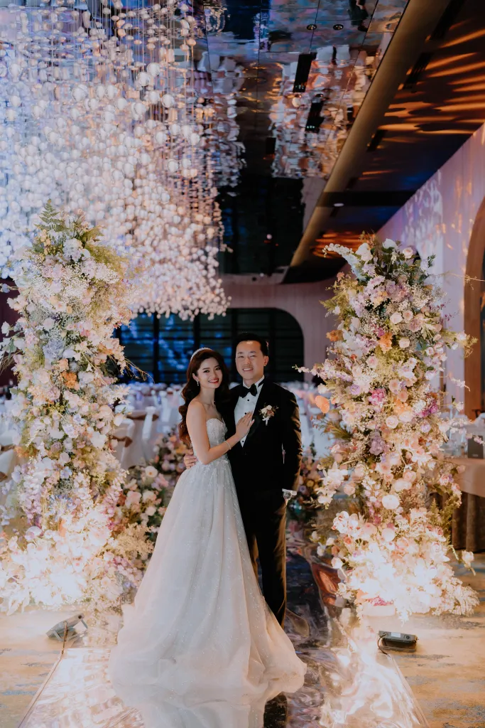 Joyce and James had a second event at Park Royal Collection Kuala Lumpur where most of the guests were family members. For this event, Joyce said she enjoyed planning it herself and coordinating everything while the emphasis for them is on gathering important family members instead of worrying about décor details. The event required minimal floral details as existing light features of the ballroom was a bonus added a glamorous ambience to the space. Since James’ father’s birthday happened to be on the same date as well, they surprised him with a celebration altogether with relatives who attended his wedding ceremony.