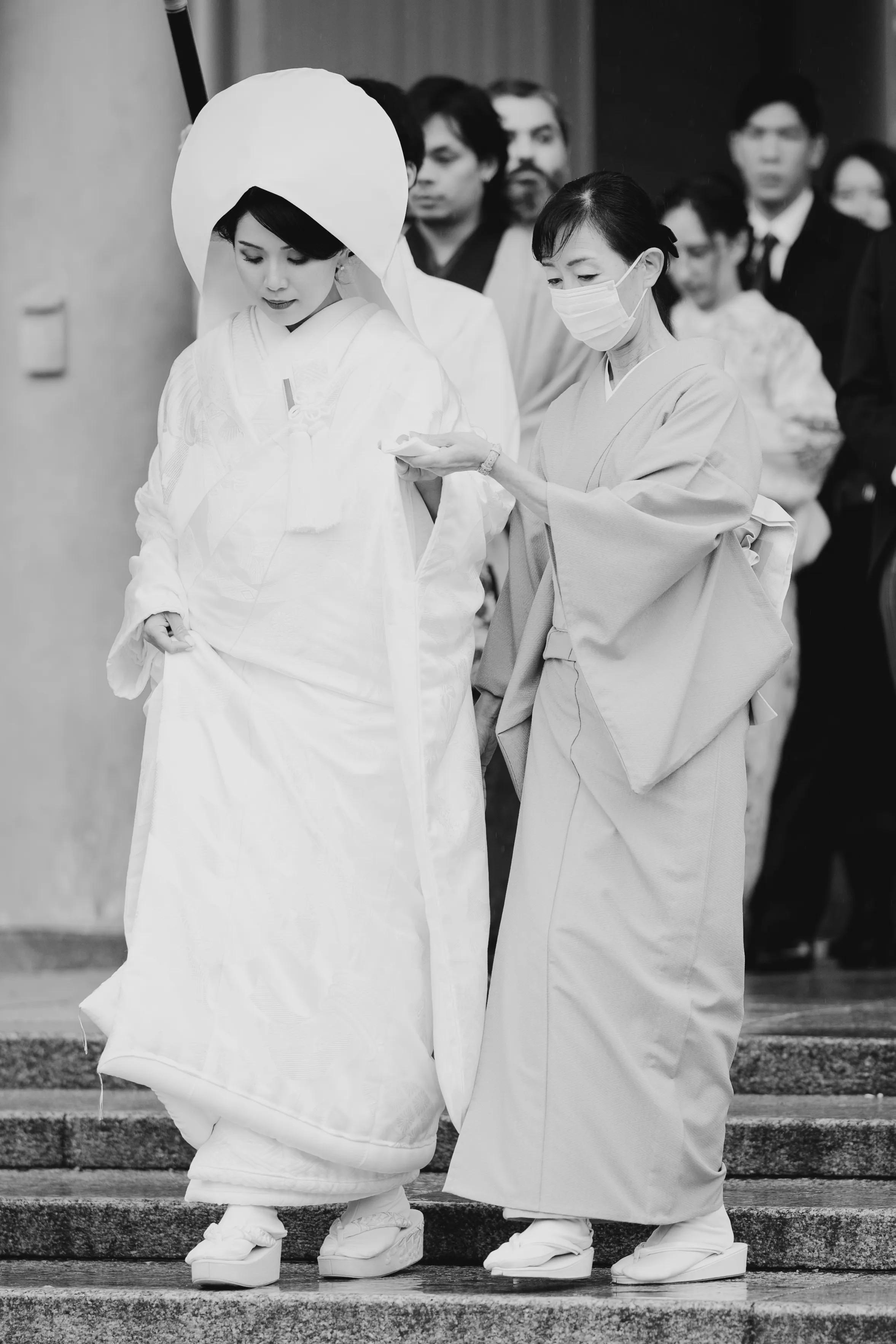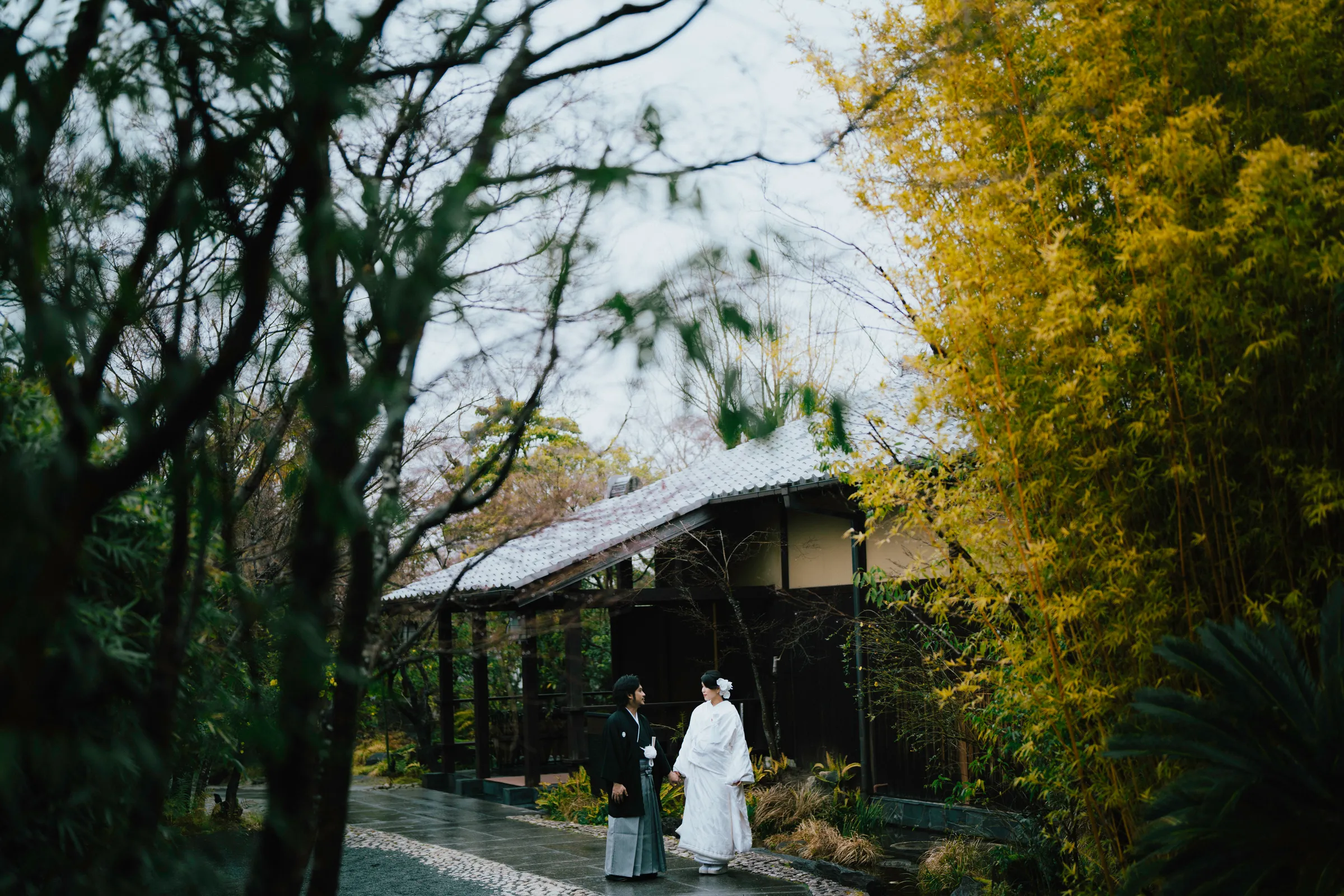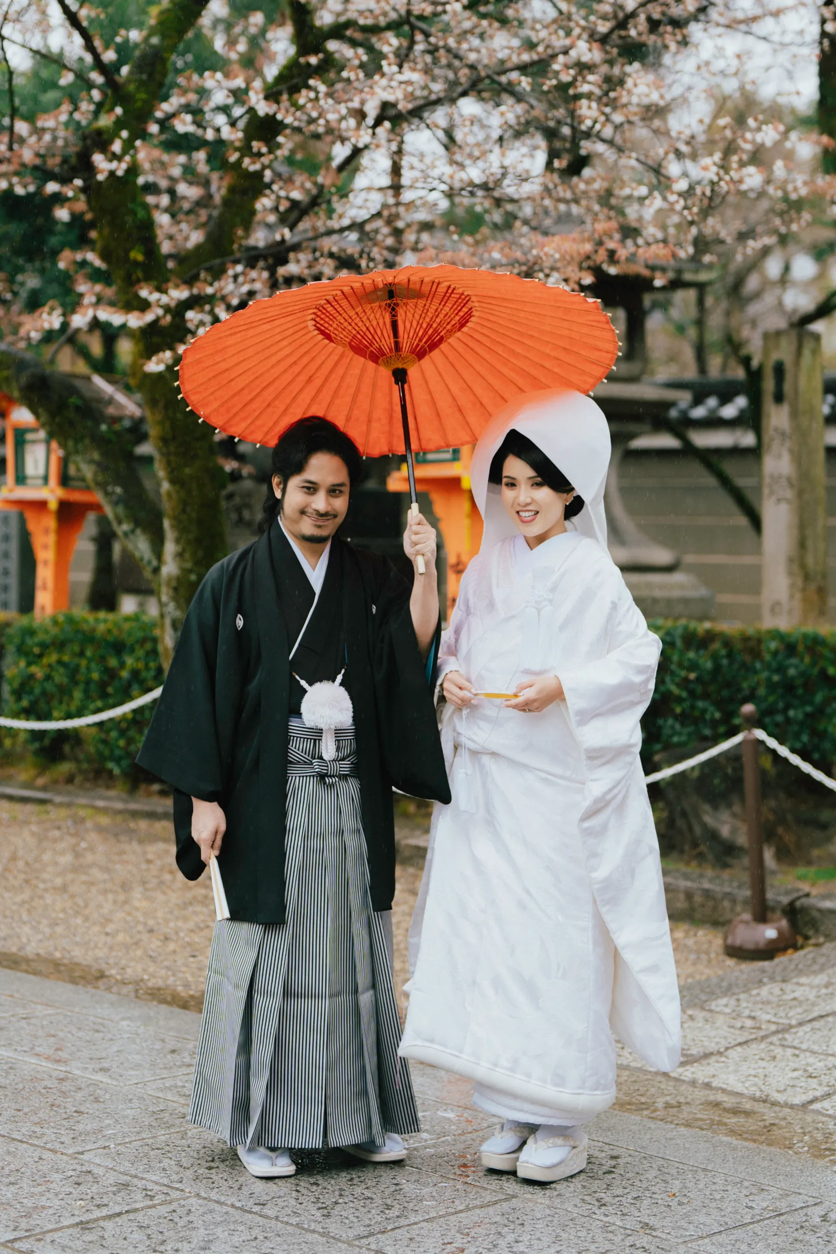 The couple’s decision to hold their wedding in Kyoto, Nana’s hometown, was both sentimental and practical. Hosting their special day in Japan allowed them to embrace a traditional Japanese wedding ceremony. Their ceremony took place at Yasaka Shrine, an iconic site known for its historical significance and serene ambiance.