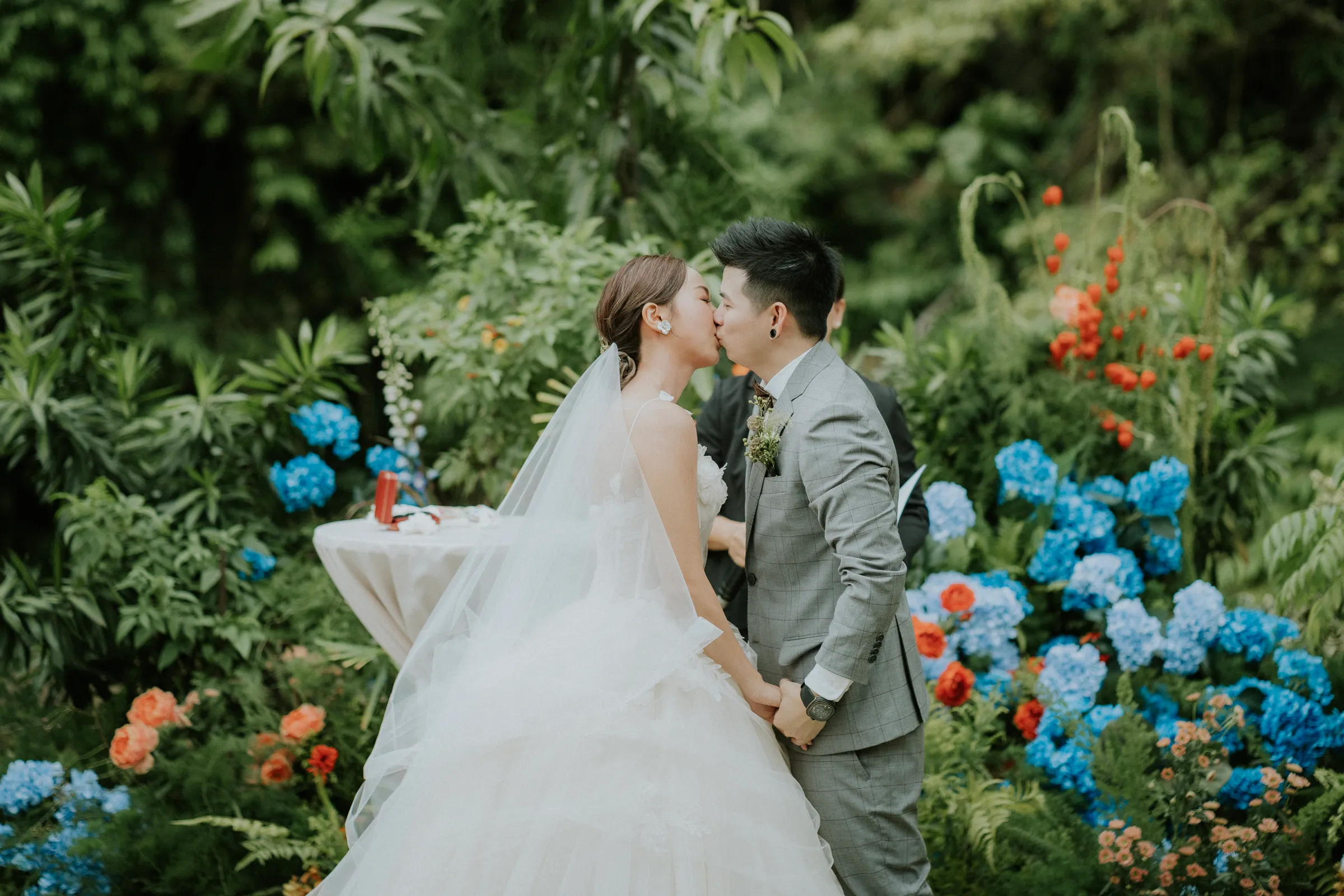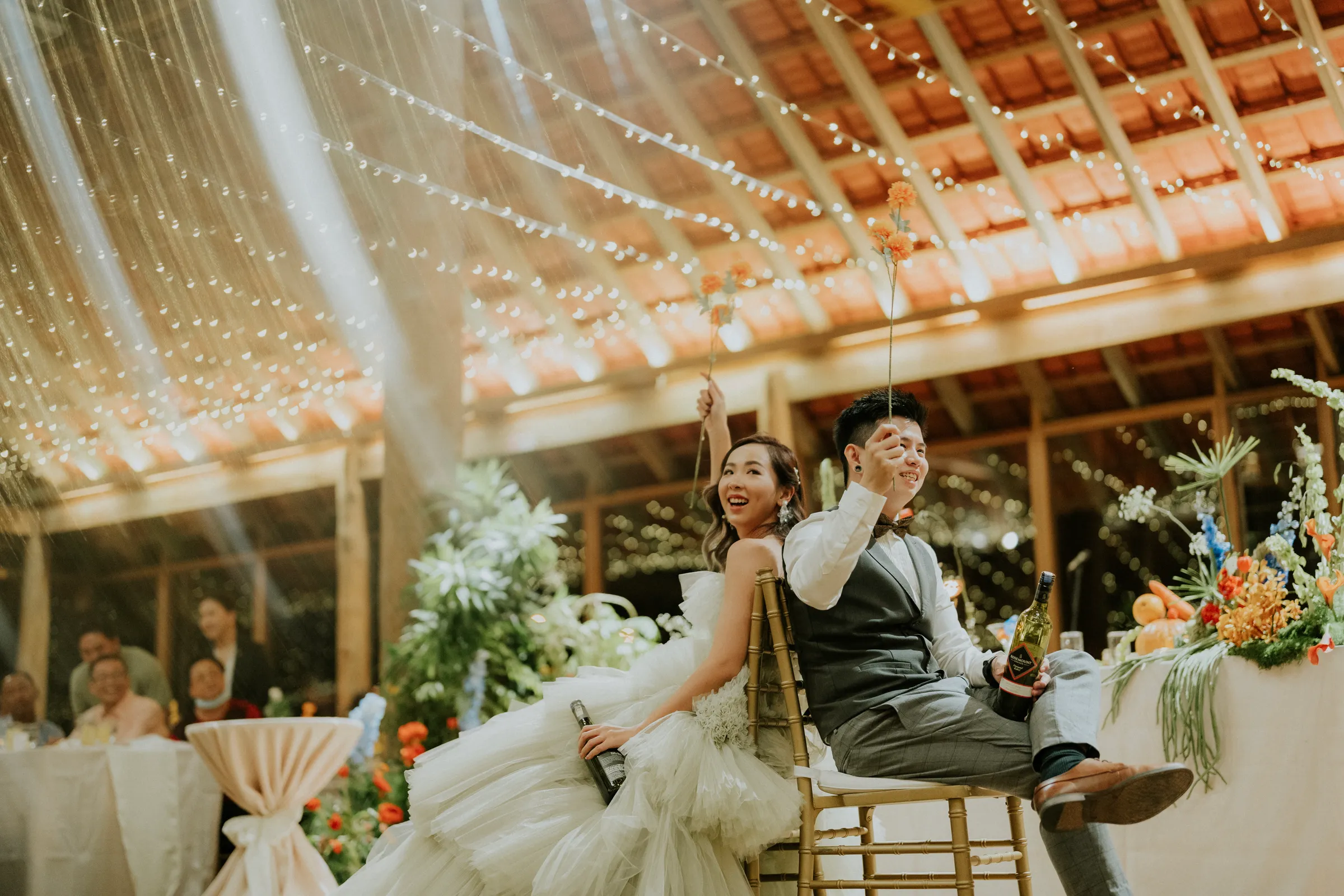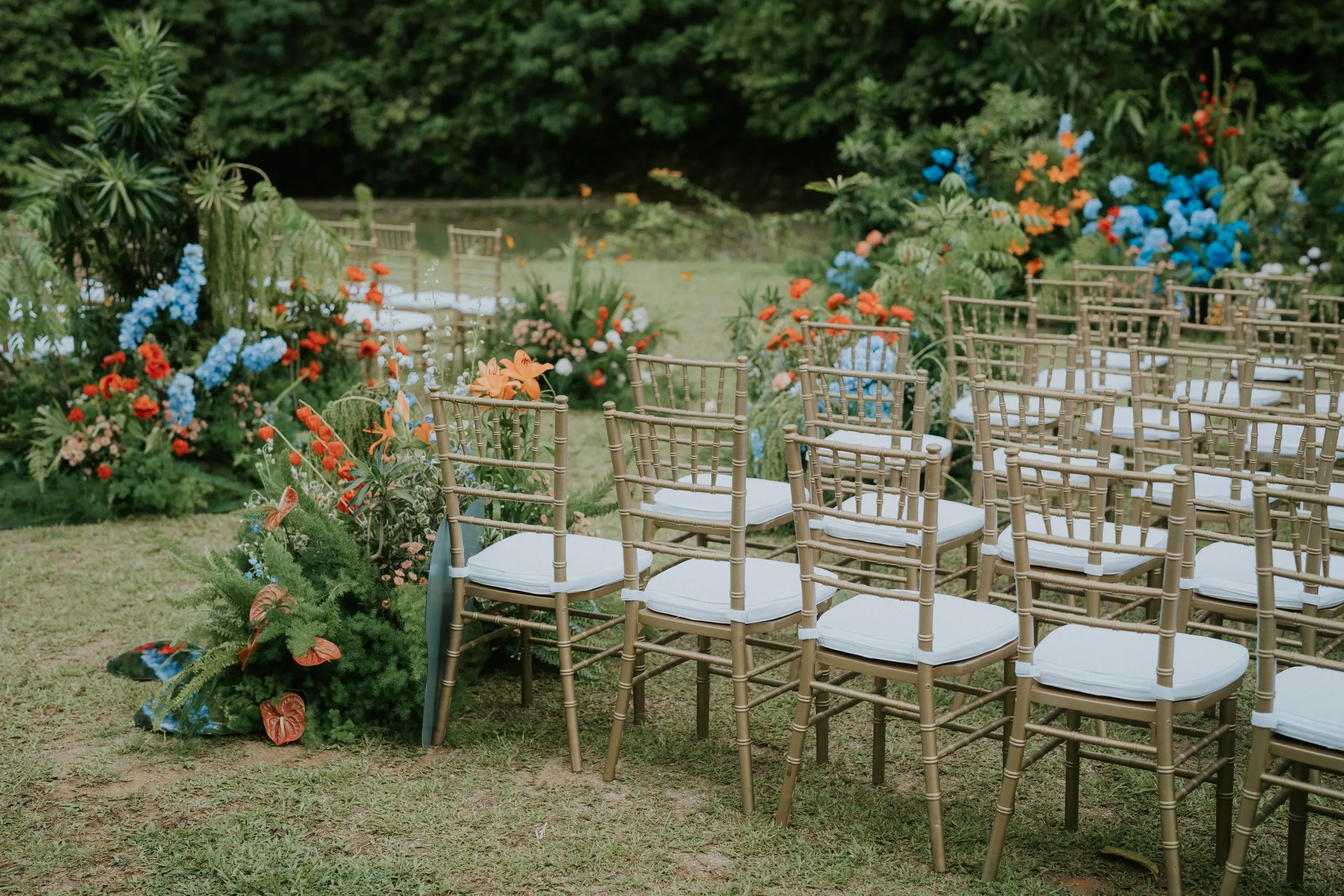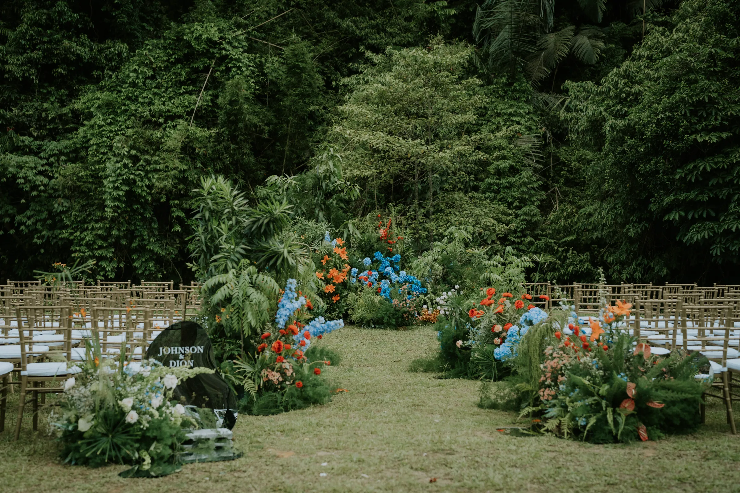 An acquiescent setting is a welcoming respite to any wedding budget, and with so many boxes ticked, deciding on Tanarimba as the venue for their special day came organically to couple Johnson and Dion. To distinguish themselves from the many weddings that have taken place here, the couple chose an unconventional combination of orange and blue for their wedding decor. “We had in mind to pick colours that match our personalities and a not so traditional arch.” added Dion. It was bold and unusual, yet excellently executed by Daun n Petals.