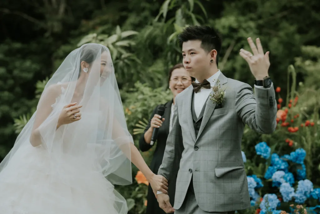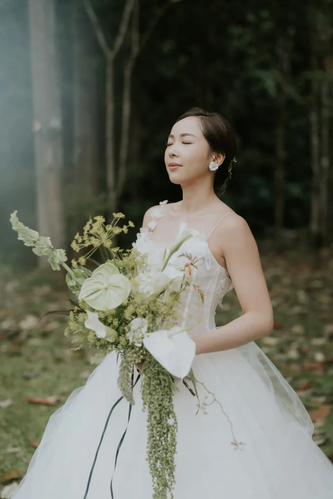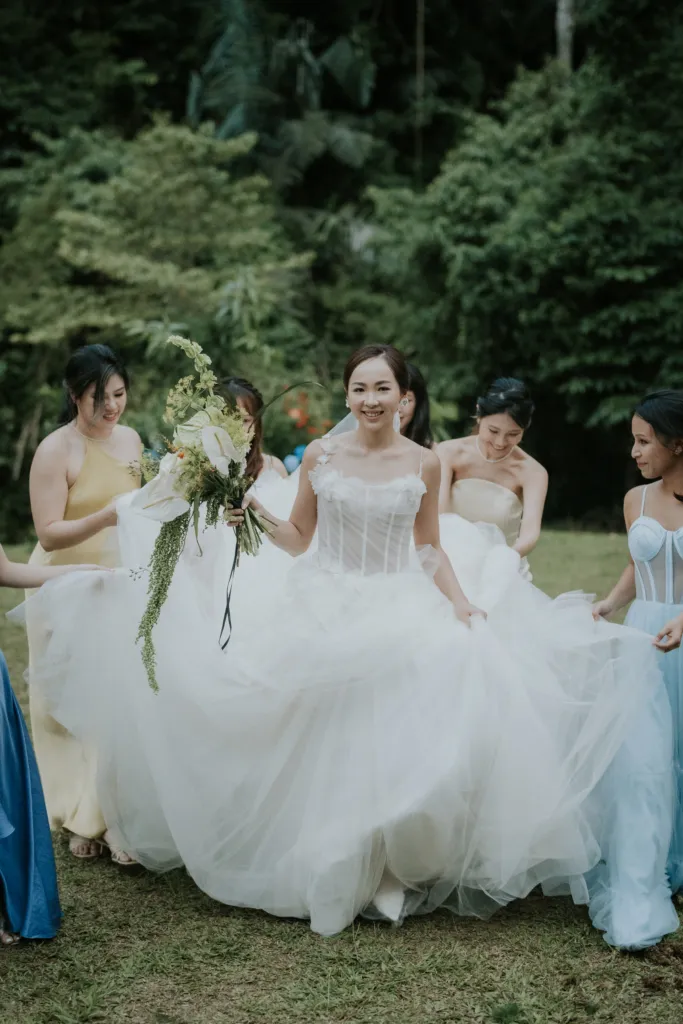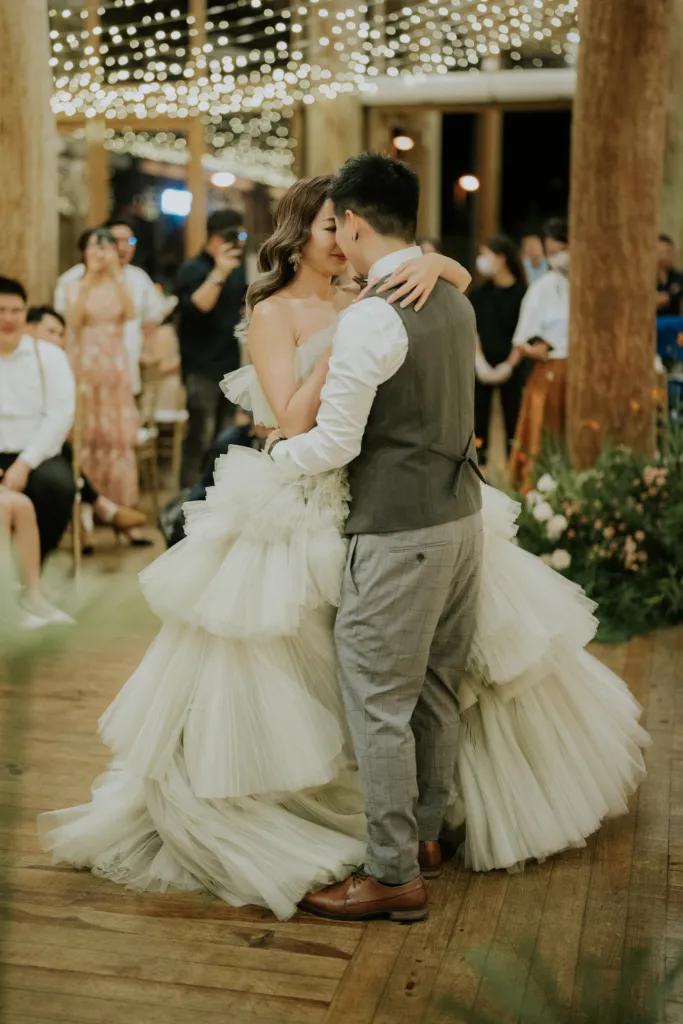 The reception was cosy, intimate and heartwarming. Speeches from loved ones were made and drinks flowed. For the second look, the bride wore a stunning olive coloured tiered tulle dress, paying homage to her quirky side. Towards the end of the night, the couple shared a dance which they executed flawlessly. “We had followed a dance routine we saw on Youtube, I’m so glad we nailed it with not a single mistake.” recalled Dion. At first glance this wedding appeared to have gone through a careful curation from the colours of the flowers to the attire of the wedding party, however after some curious inspection, we’ve come to conclude that this lovely wedding was really the marriage of many unexpectedly happy coincidences.
