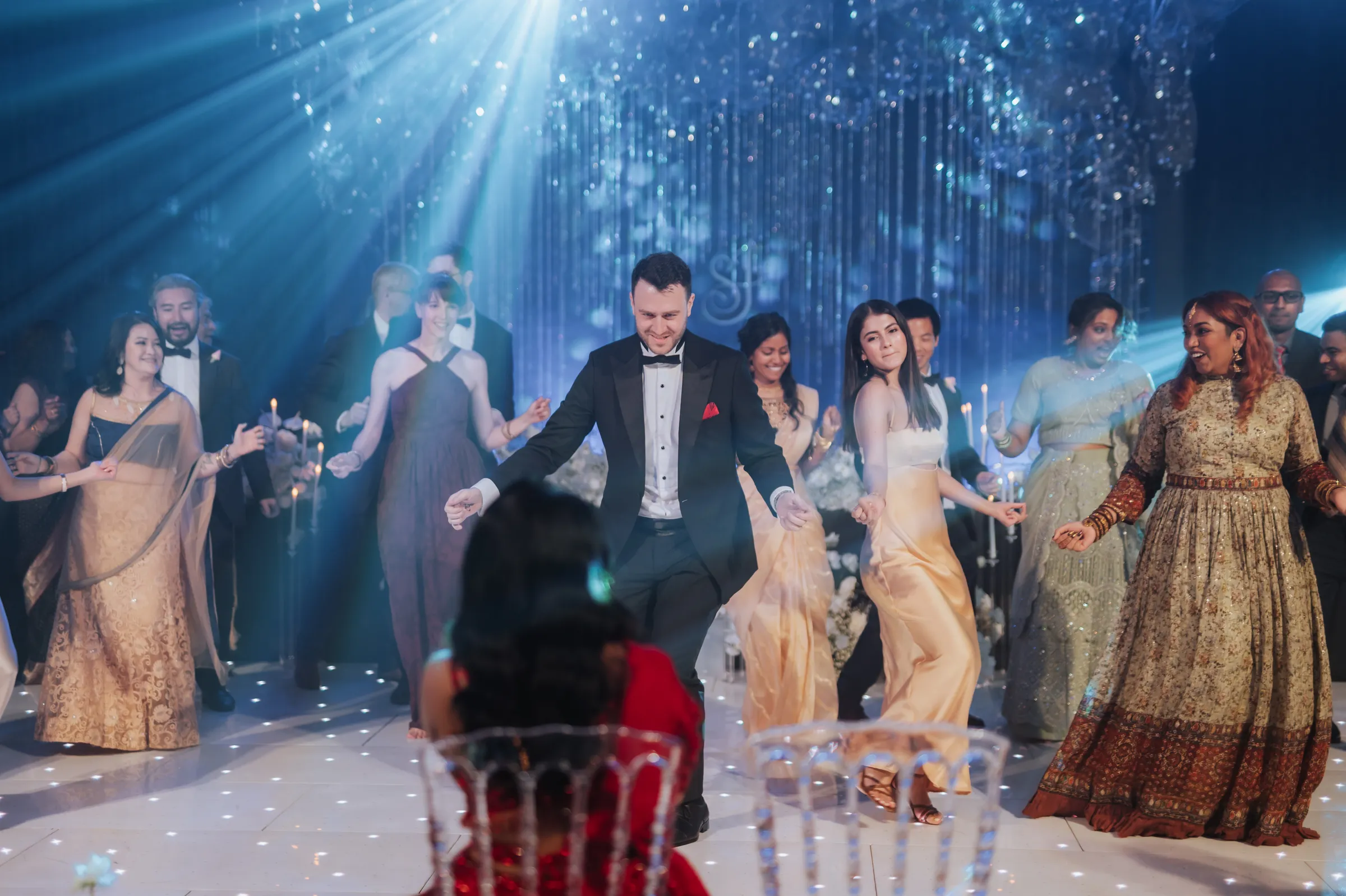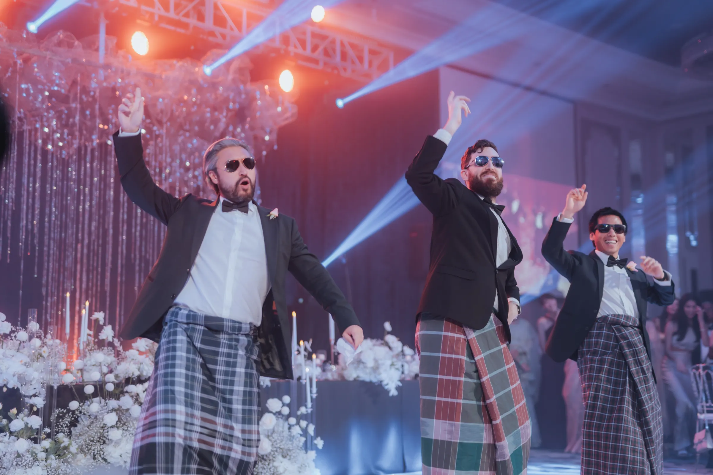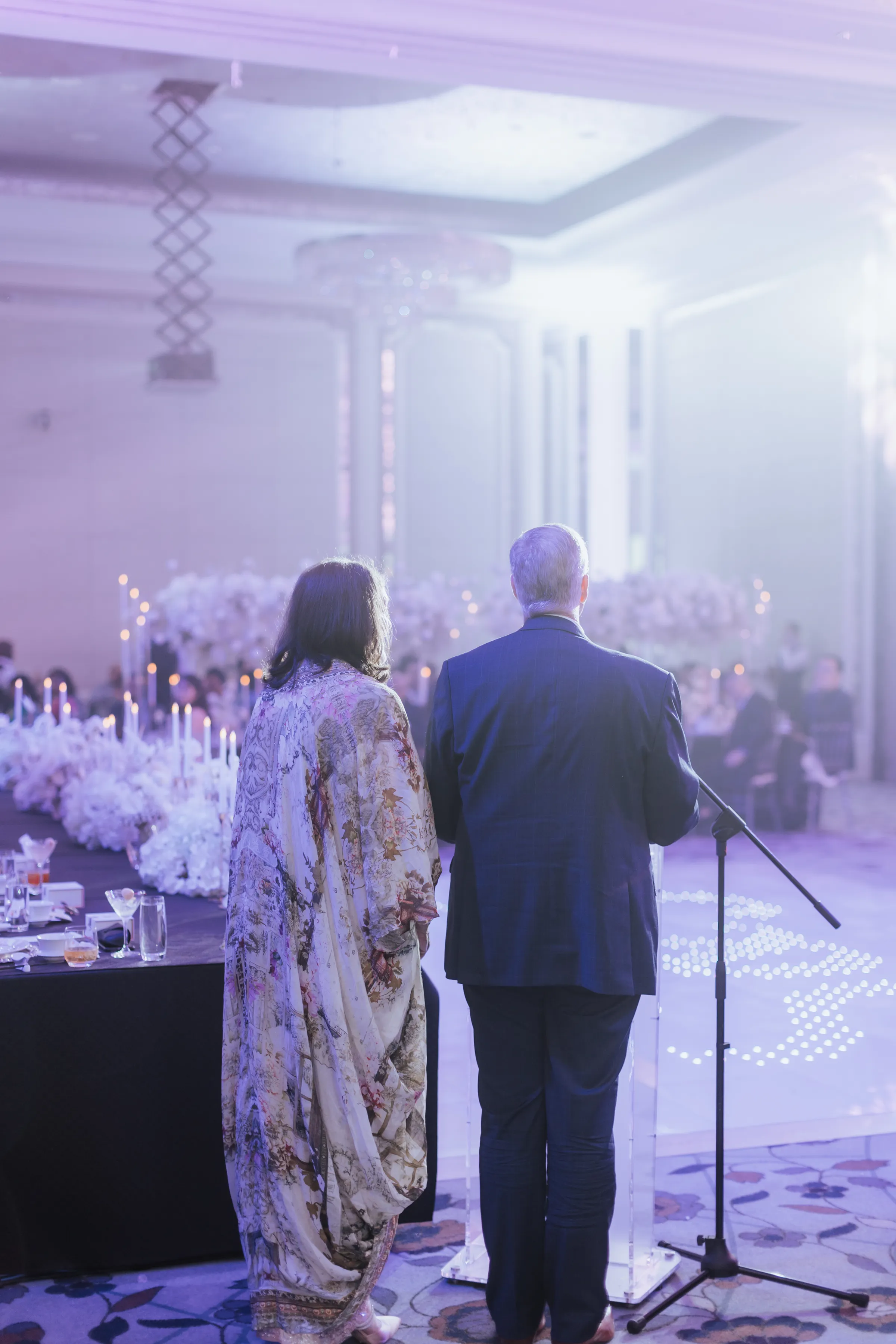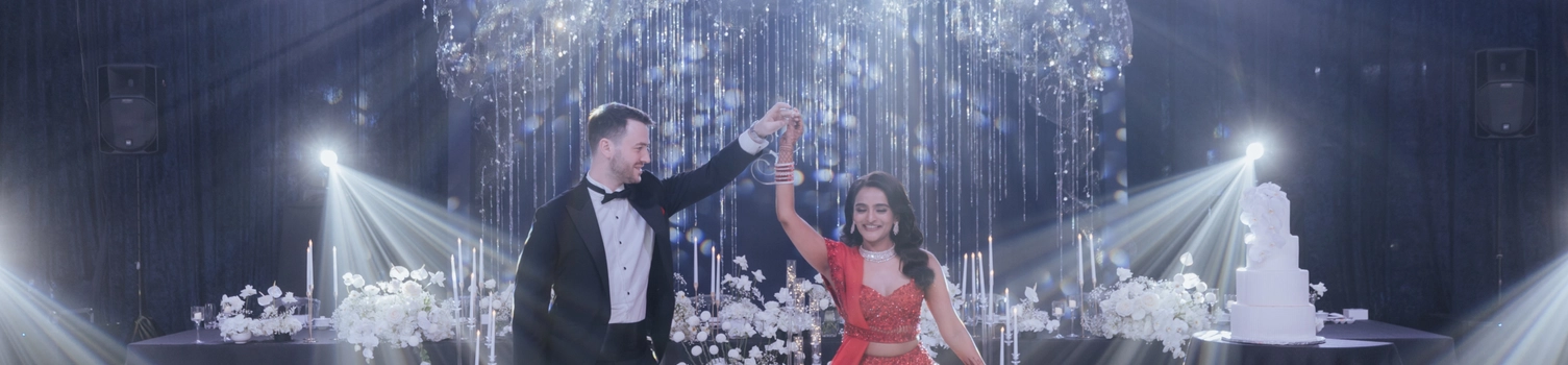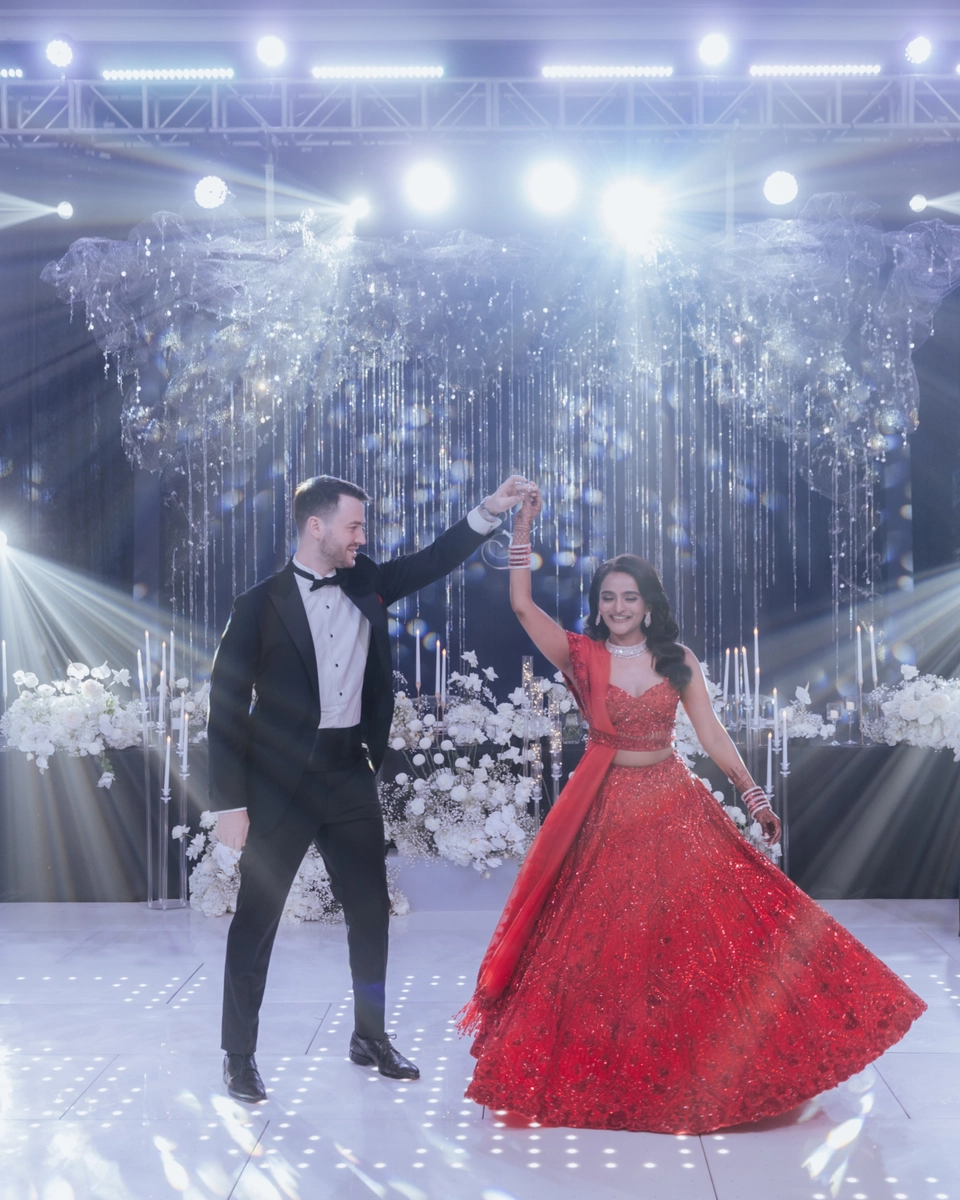 Concluding their back-to-back celebrations was a glamorous “Black Tie” dinner reception at St. Regis, aptly named “A Starry Night” by Shaleen. The couple envisioned a celestial ambiance, with white decor, dazzling lights, and an ethereal atmosphere. The Astor Room at St. Regis Kuala Lumpur provided the perfect setting for their close-knit gathering of 150 loved ones. Describing the reception as a grand party, the couple reminisced about the music and dances that unfolded as the night progressed, leaving lasting memories. Unexpectedly, their families surprised them with a captivating fusion of Bangra and Celtic music, adding an element of surprise and delight. The couple’s dance began with a predictably romantic tune, customary for English weddings, before they unleashed the exuberance of Tamil songs, taking the guests onto the dance floor.