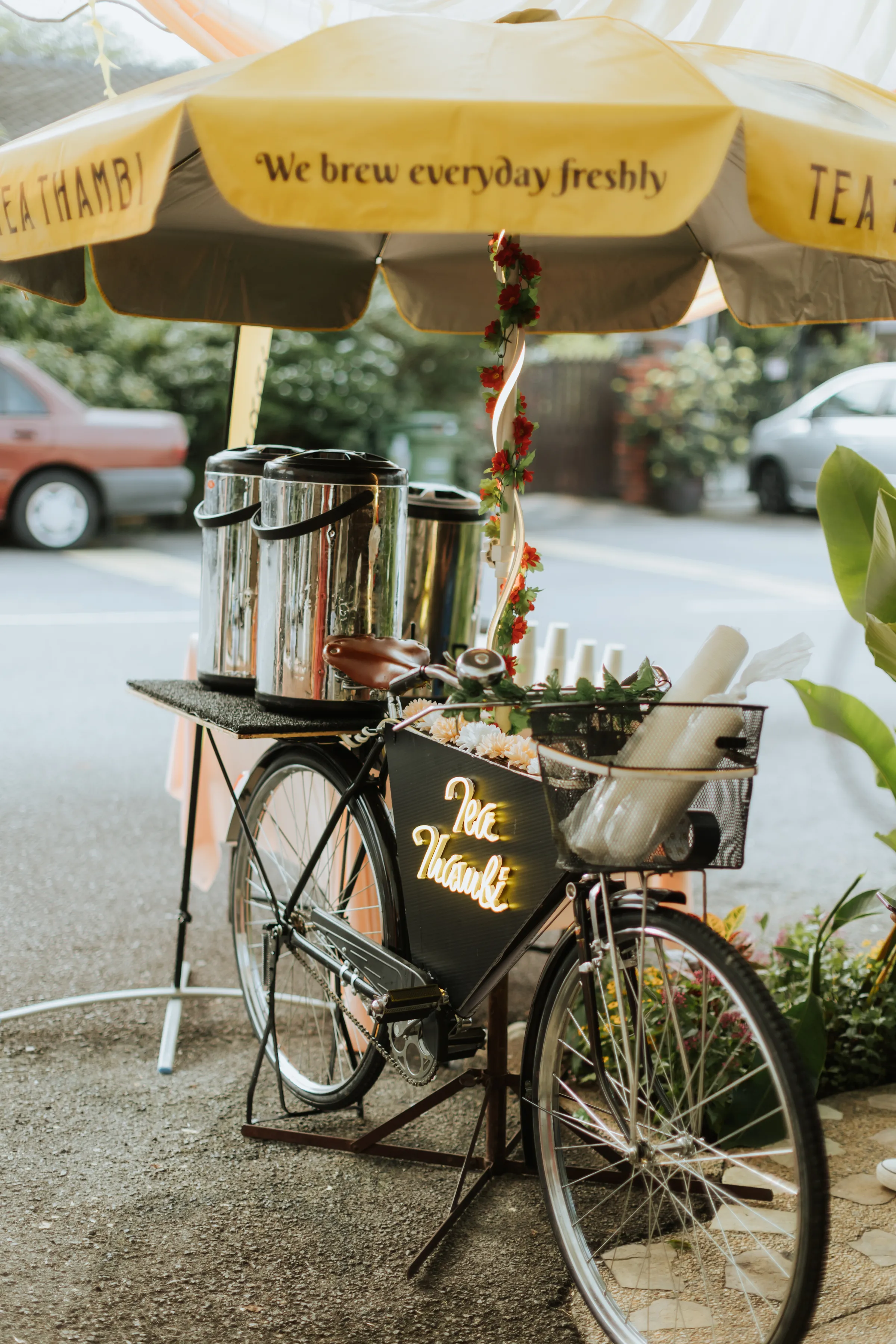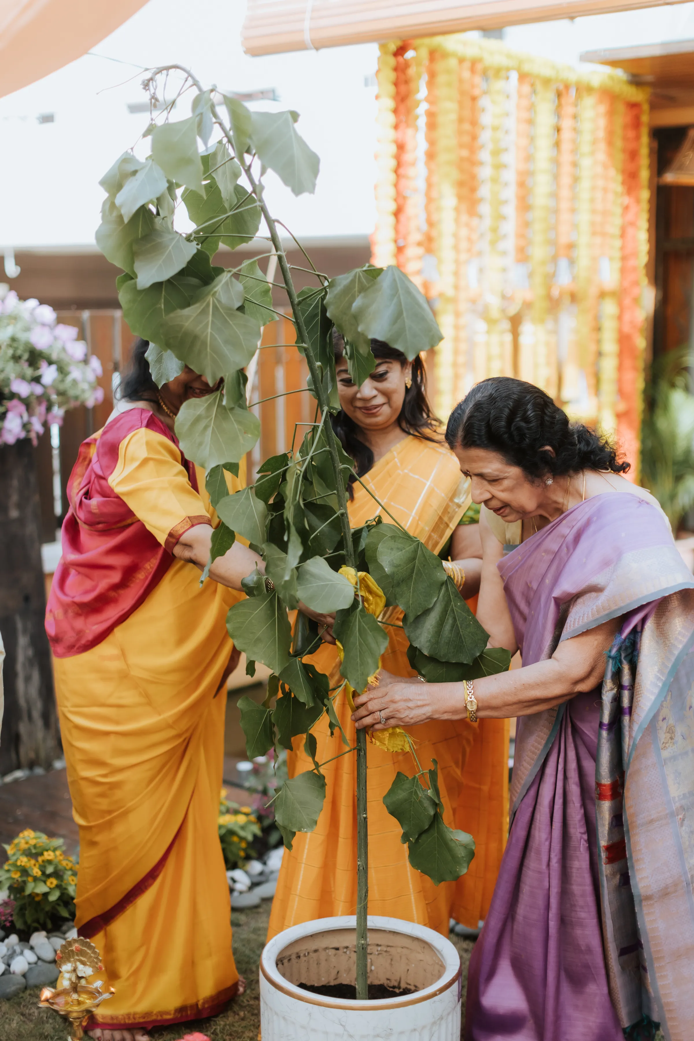 Their celebration commenced with an intimate gathering of 50 guests for a blessing ceremony at Shaleen’s family home. To infuse an air of festivity, guests were instructed to don festive attire in shades of yellow or pink, representing the chosen theme. This enchanting event marked the beginning of the wedding week and served as an opportunity for elders to impart their blessings upon the couple. Symbolizing fertility, Shaleen and James planted a special tree. The highlight of this family-oriented gathering was the delectable South Indian cuisine, featuring mouth-watering dishes like Dosa and Appom. A ‘Tea Thambi’ pop-up bicycle serving chai added a special touch. James cherishes this part of the celebration the most, as the blessings bestowed upon them by their family members held deep significance in their journey to matrimony.