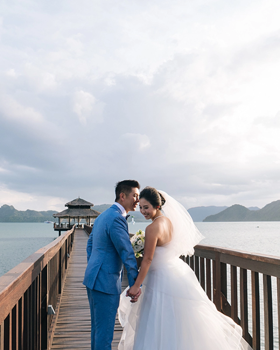 Photography by Jon Low Studios / Videography by Where’s The Fish Productions / Venue The Westin Langkawi Resort & Spa / Number of Guests 120 / Wedding Planning by MY Wedding Planner / Bridal Gowns by Hayley Paige and Liang Yuan / Bride’s Shoes by Jimmy Choo / Hair and Makeup by Agnes Yip Makeup / Groom’s Attire by Brent Wilson / Wedding Bands by Affinity Diamonds / Bridesmaids’ Dresses by AMO Bridal / Flowers and Décor by Darling Florist Langkawi & Events Langkawi / Art and Stationery by The Westin Langkawi Resort & Spa / Entertainment by Low Frequency Productions