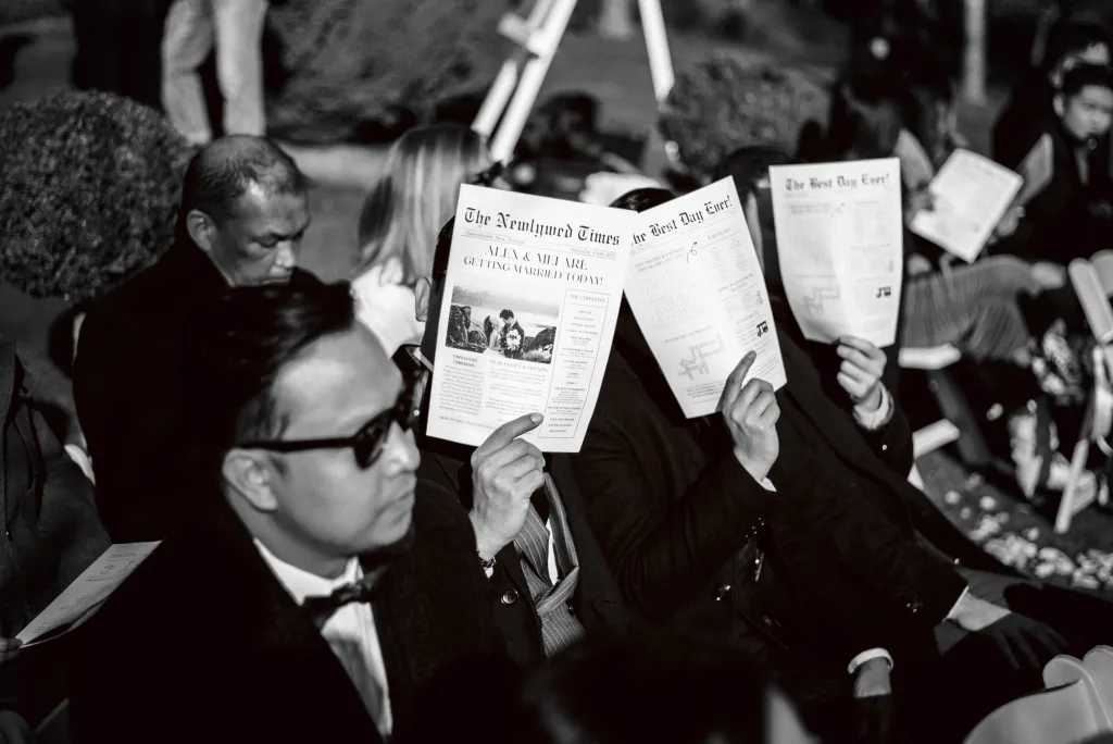 Mei and Alex’s wedding was a delightful blend of rustic charm and playful pop culture references, reflecting their personalities and shared interests. The decor was a tasteful mix of traditional rustic elements with fun, unexpected nods to their favourite movies and shows, creating an atmosphere that was both romantic and entertaining. The evening proceeded with a cozy dinner reception at the estate, accompanied by personalised touches such as handwritten notes to each of their guests in lieu of place cards and made complete by the warmth of close family and friends.