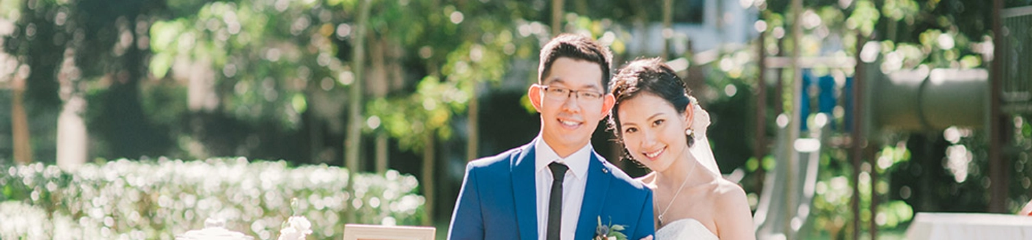 The garden surroundings were the perfect complement to their simple and clean colour palette. Keeping with the nature theme, the bridal bouquet was understated and gorgeous, with eucalyptus branches standing in contrast to the white and cream flowers. Also juxtaposed against the green and white shades were the wooden textures and accents. Meanwhile, the bridal party wore grey to keep things neutral and ensure that the focus was on the bridal couple’s celebration of their love for each other. Thanks for these beautifully captured shots, MunKeat Photography.