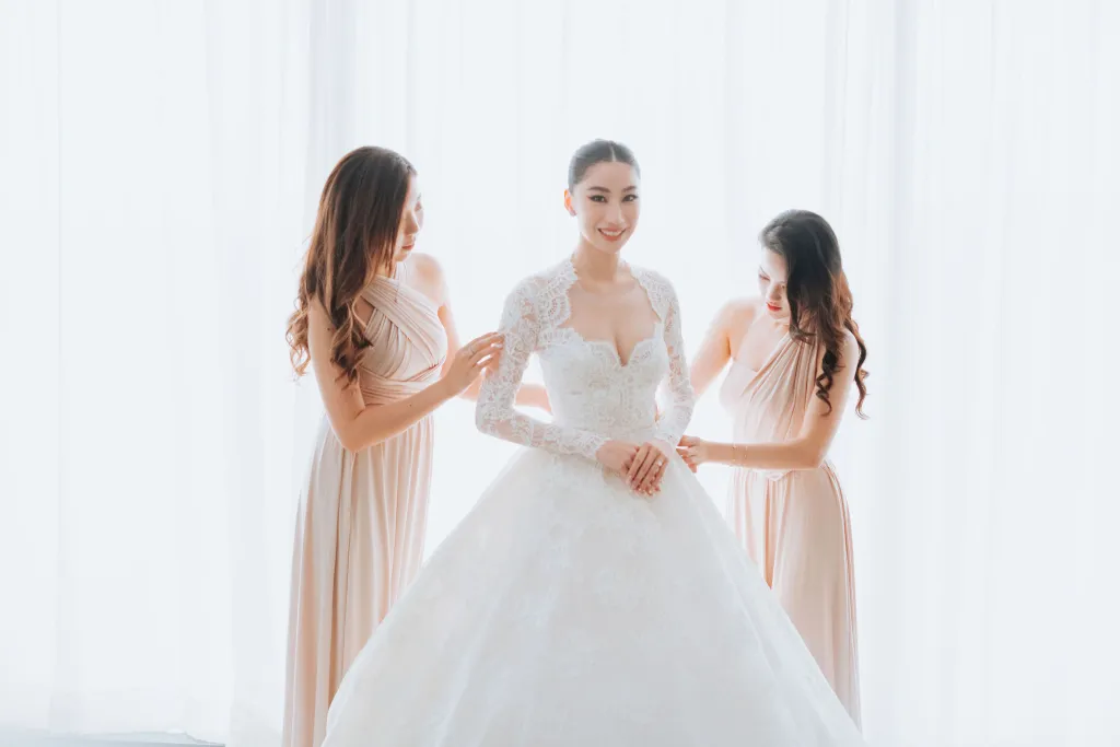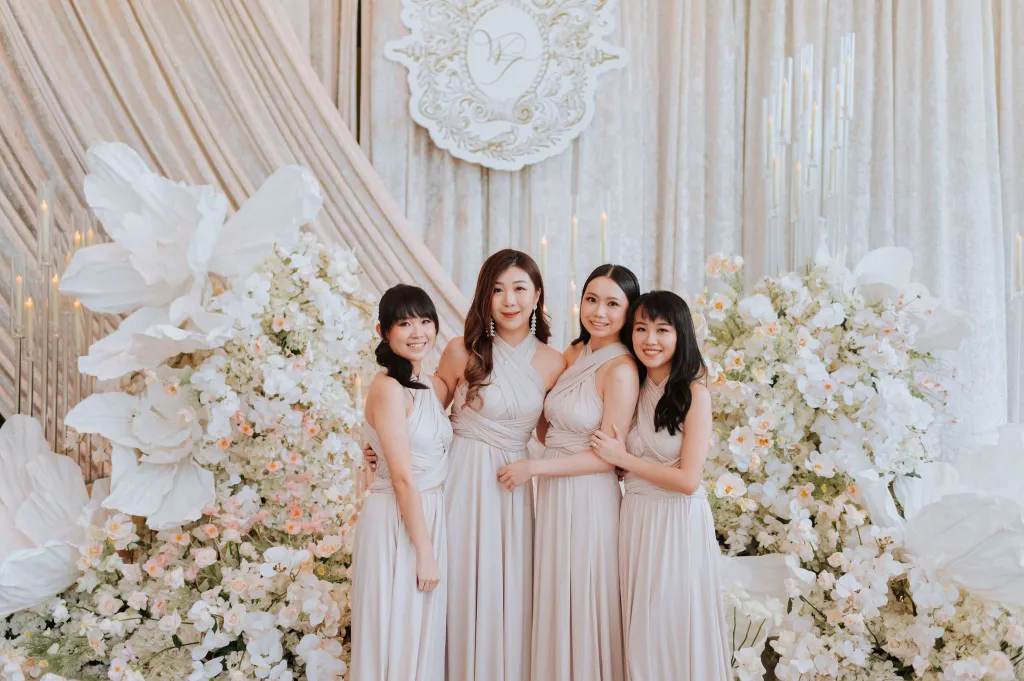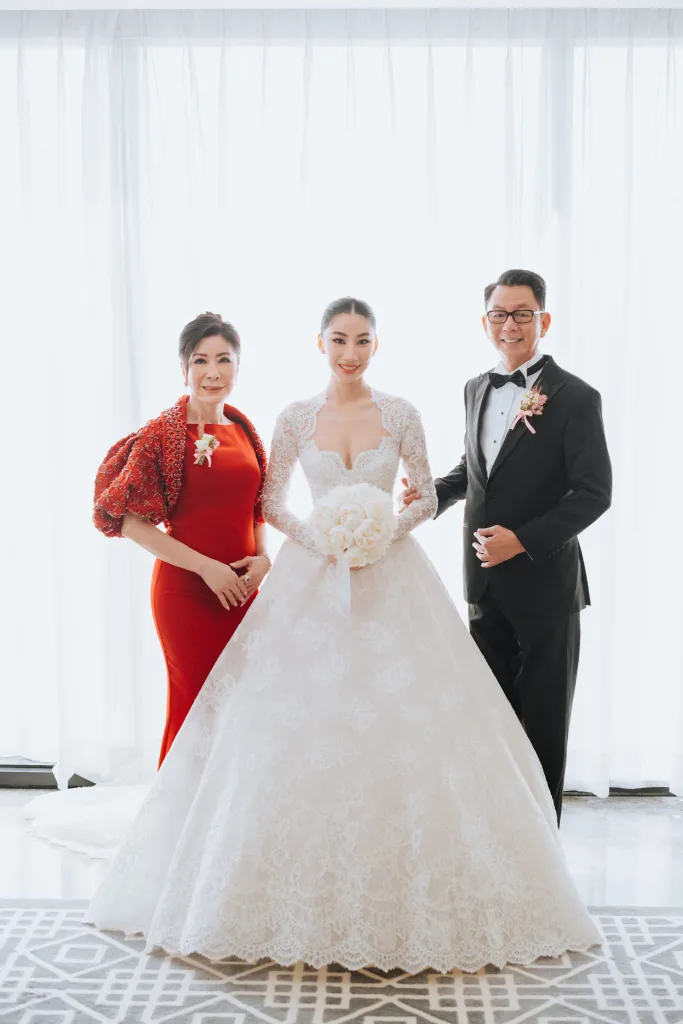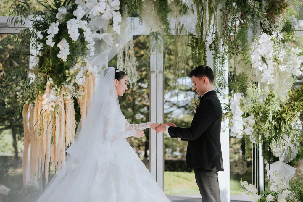 Sentul Pavilion was transformed into a fairy-tale setting by Wishing Tree, with tasteful decorations in shades of white and green. It felt like guests had stepped into an ornate garden within a glasshouse, the a perfect backdrop for Tiffany and Wui Yang’s special day. Everyone at the wedding, including the couple, their families, and their guests, looked incredibly stylish and left a lasting impression.