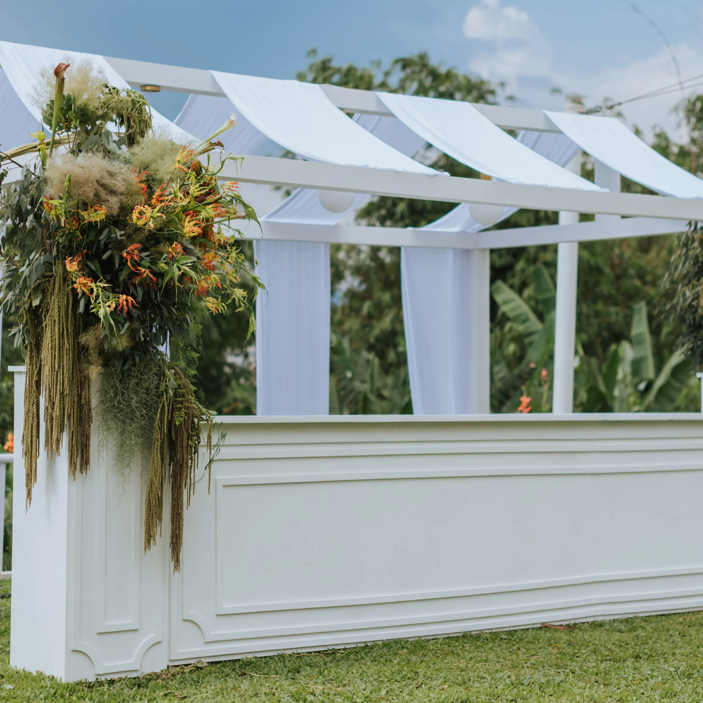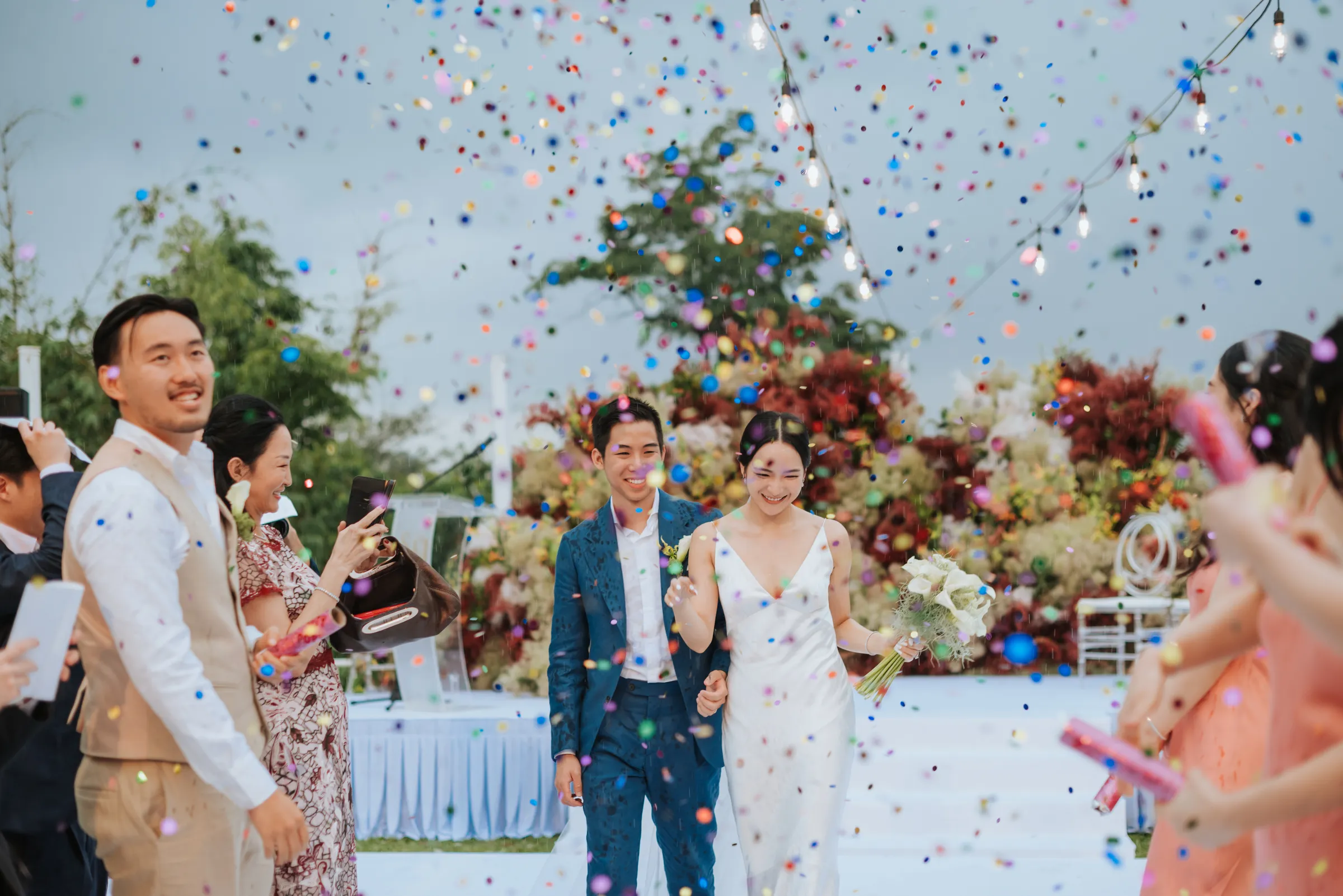 Sharing further about their wedding day, they recalled a tiny concern in the back of their minds prior to the setup of the venue. What if it rained on their outdoor wedding? As luck would have it, rain graced the end of the ceremony, adding a dramatic touch that they absolutely loved.