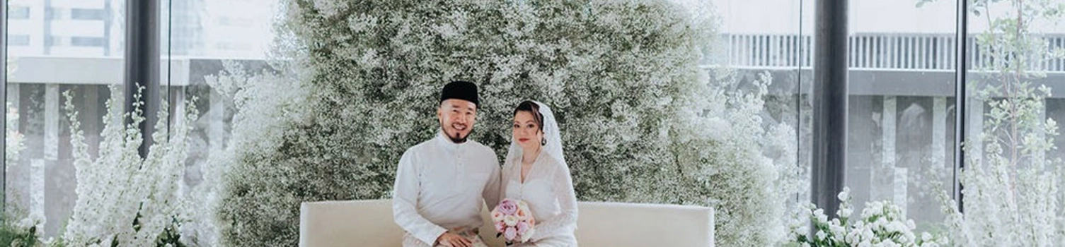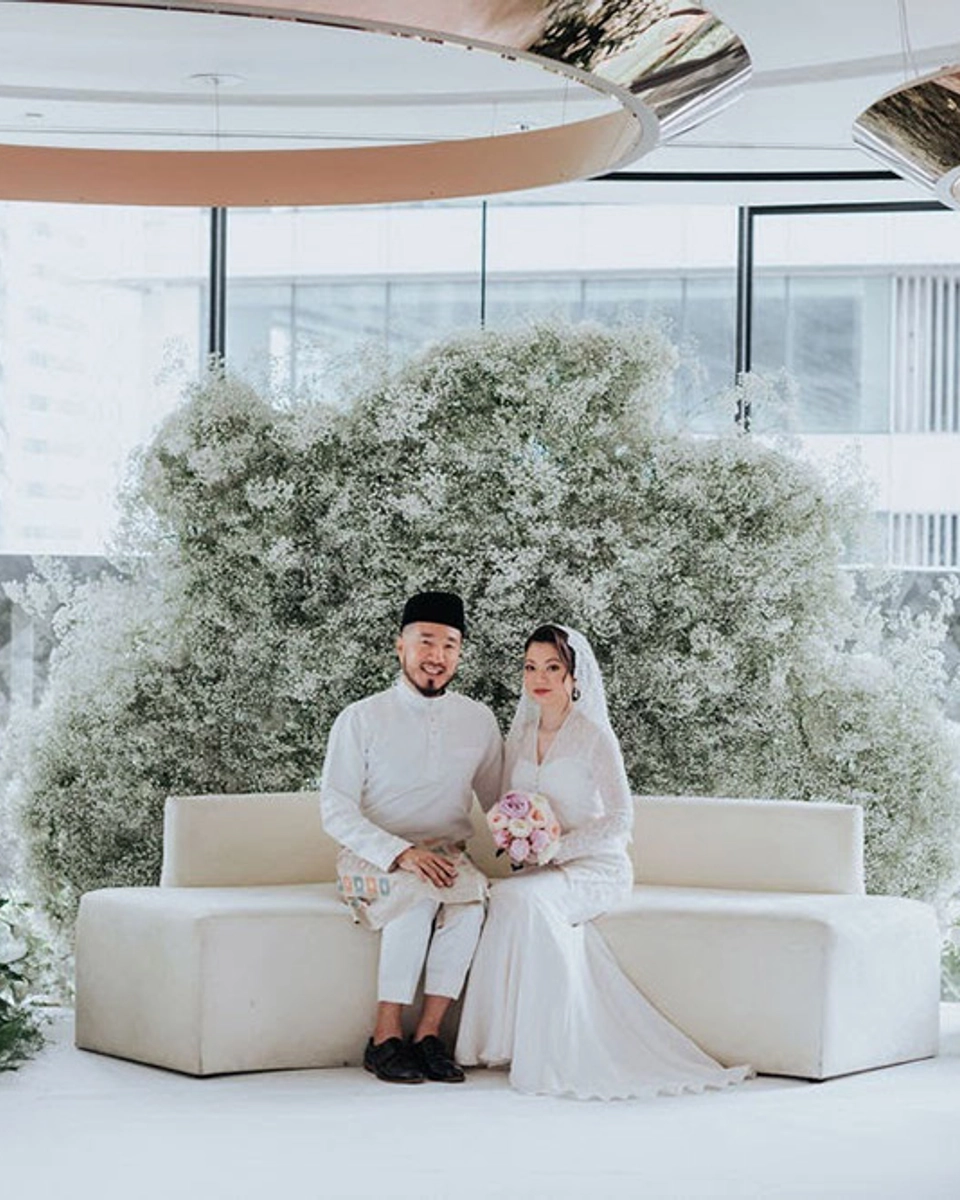 The groom shared: “Our favourite part of our big day was the solemnisation. It couldn’t have gone any better. Everything was perfect. The flowers, setup and ambience were beautiful in the rosy rays of the morning sun. It was simple yet sophisticated, just as we had imagined it to be. Nadirah was in awe when she walked through the doors. Her baby’s breath backdrop design idea was beautifully brought to life by Sherly of Tie The Knot and Wishing Tree.