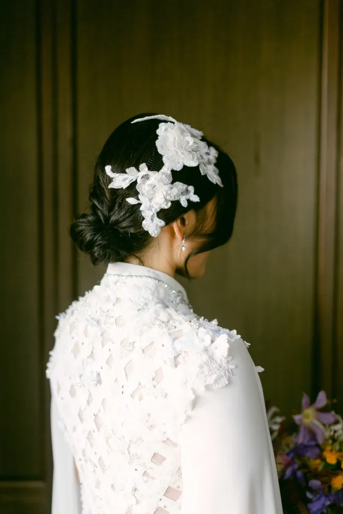 Dressed in majestic creations of LAICHAN on that day, the couple walked into their garden meadow with a look that presented a subtle luxury in elegance. Another twist of meaningful thought incorporated into this wedding was presented through the impeccable work of the designer LAICHAN himself on the bride’s dress. The fabrics weaved together on the upper part of the outfit was meant to symbolize a merging of 2 cultures into one. Yvonne knew she wanted a traditional Cheongsam and presented a tinge of modern touch by having the dress in white. Adam’s pair of shoes had a dragon embroidered on the side, which again goes back to narrating their Chinese influence in the style and design of the wedding day details.