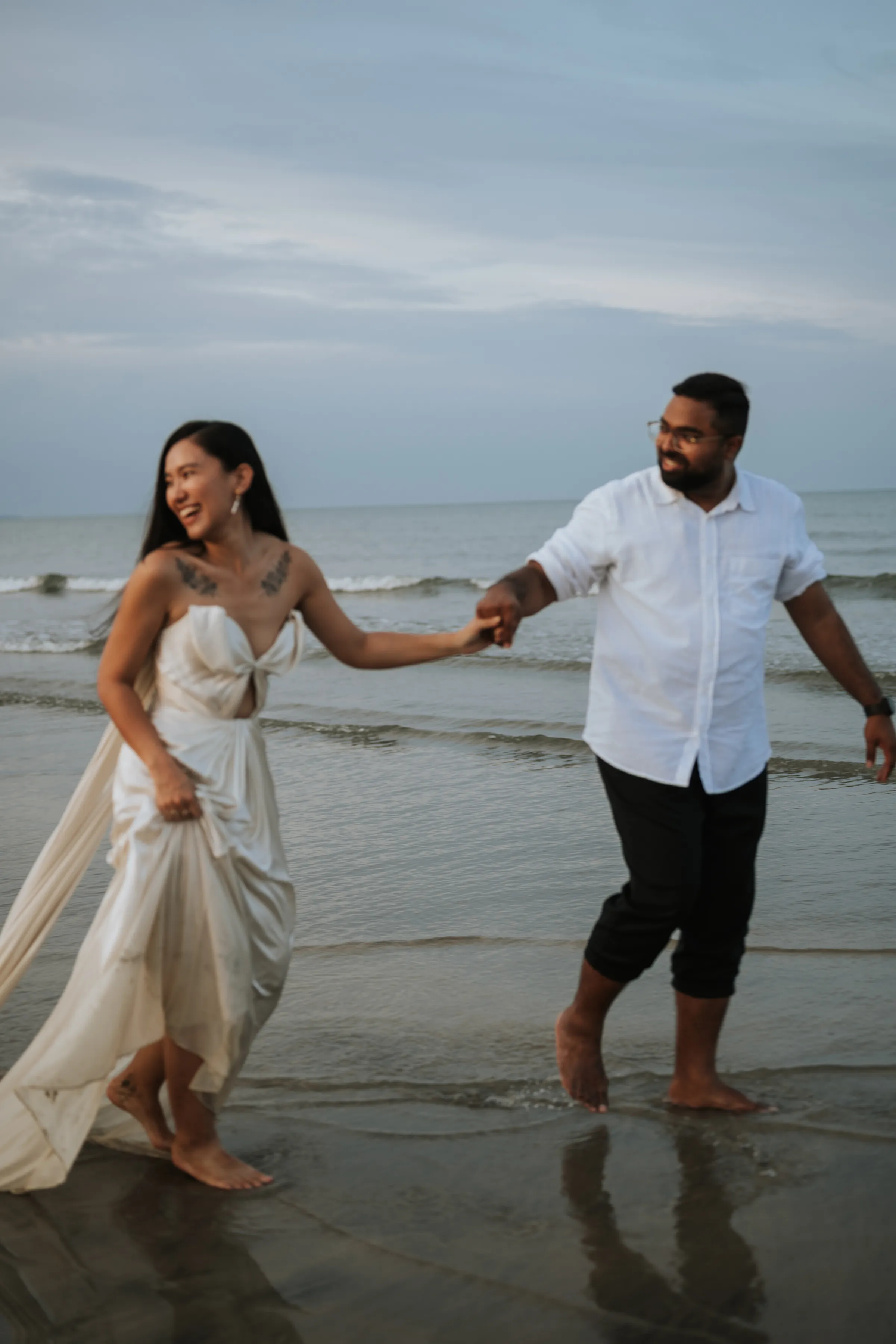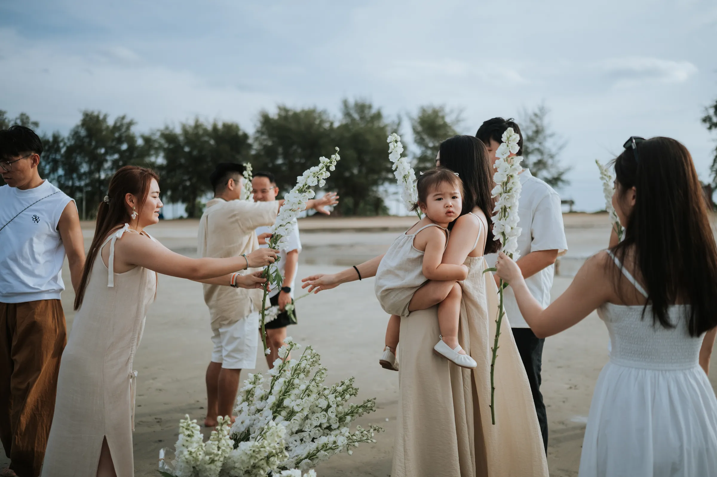 Set against the serene coastline of Kuantan, Jessie and Joel’s beachside wedding was a masterclass in intentional simplicity. Opting out of tradition, the couple focused on connection, authenticity, and their deep roots in the place they call home. With only their closest friends by their side, they turned a public beach into a sacred space filled with emotion, laughter, and genuine beauty.