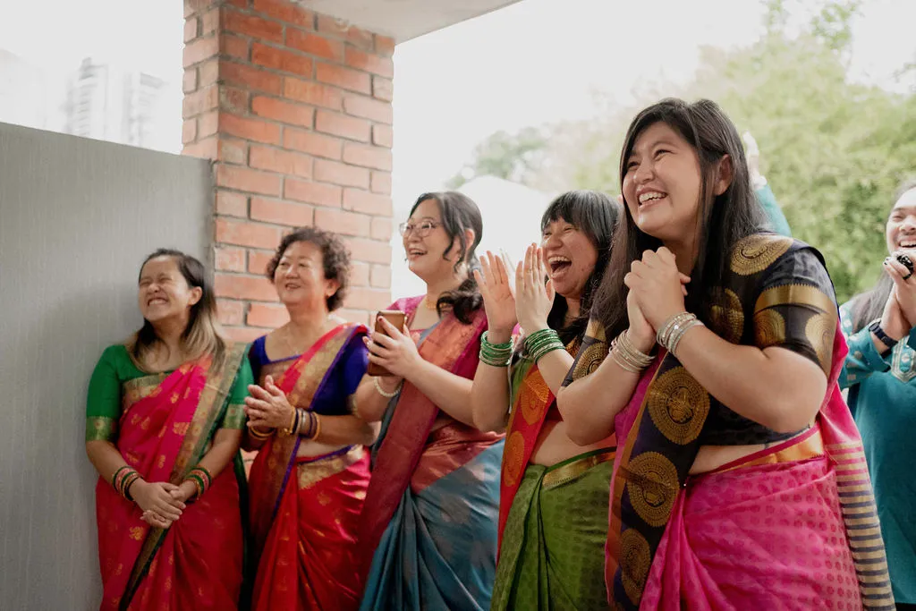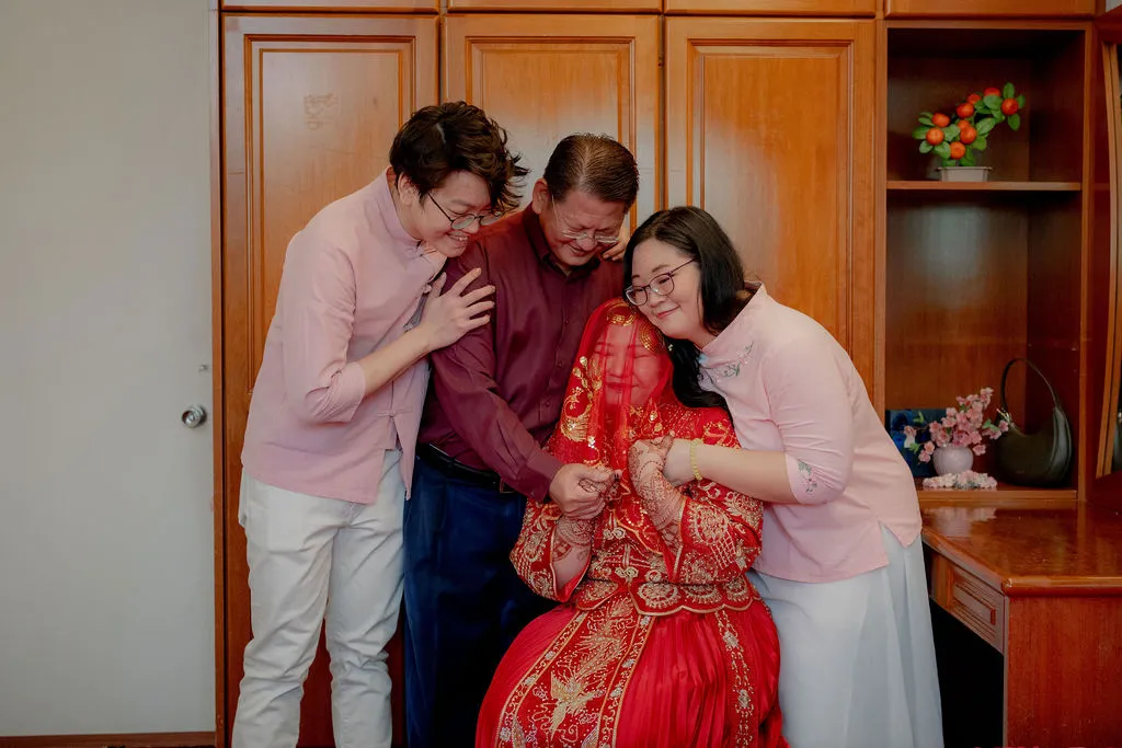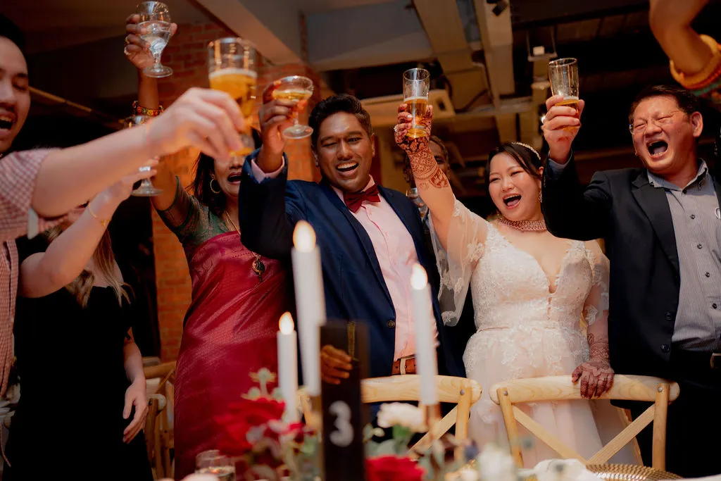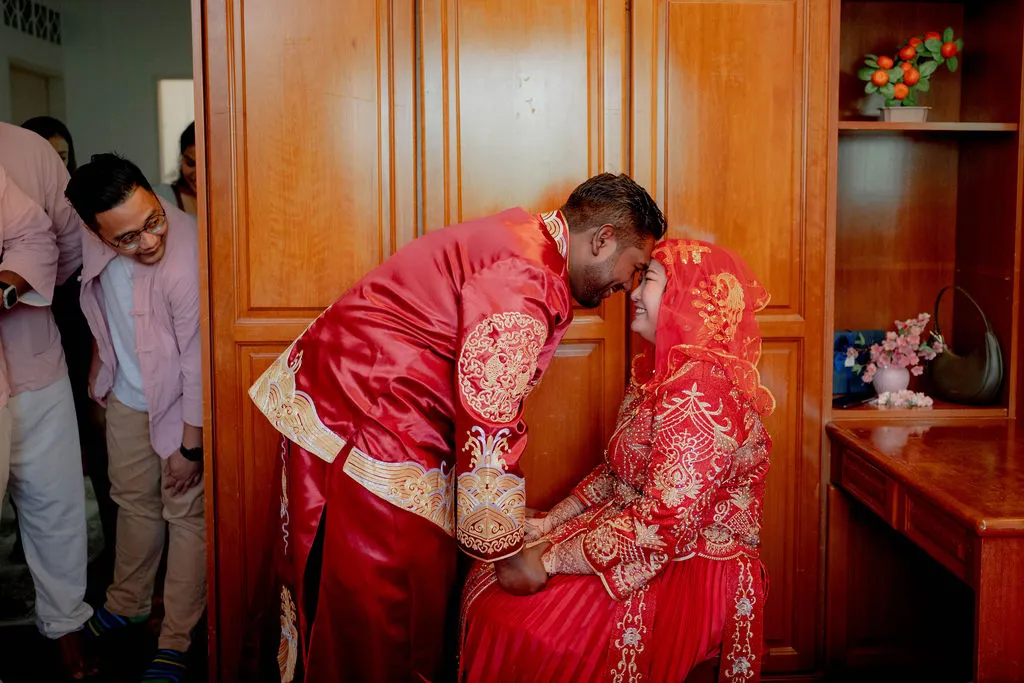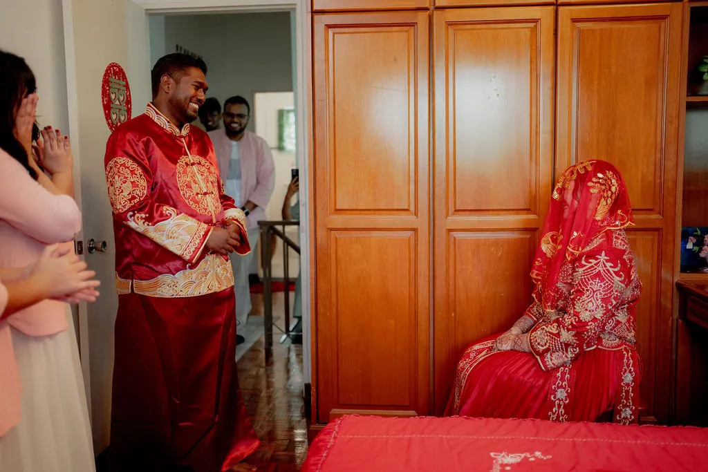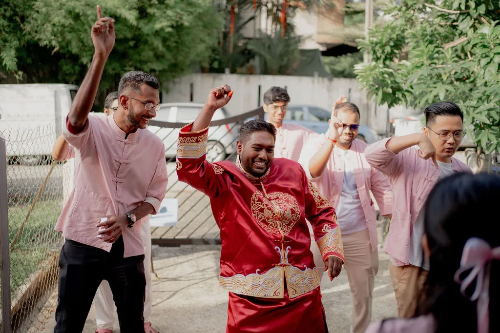 When it came down to dressing the part, both sides readily embraced each other’s cultures. The bridal party in sarees and the groom’s family in Chinese traditional outfits for the tea ceremony. “The most memorable part of the day for me was the first look we shared. Due to the delay, I thought to call it off to catch up with our schedule. Thank goodness, our photographer: Alexis, and our friends urged me to carry on with the initial plan and I was glad we did. It was a special moment in the midst of a hectic day.” said Nicole. “The other thing that I will treasure always was when my dad said he was very happy to be able to call Sarvin his son. My father was not agreeable with our relationship at the start and I was surprised that he had taken to liking Sarvin so much.”
