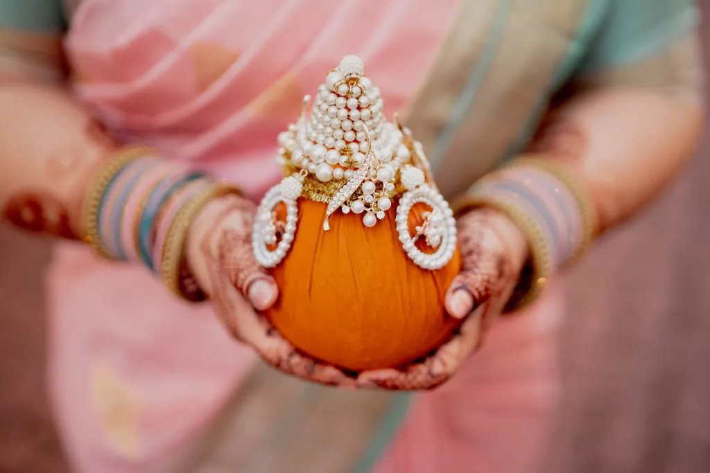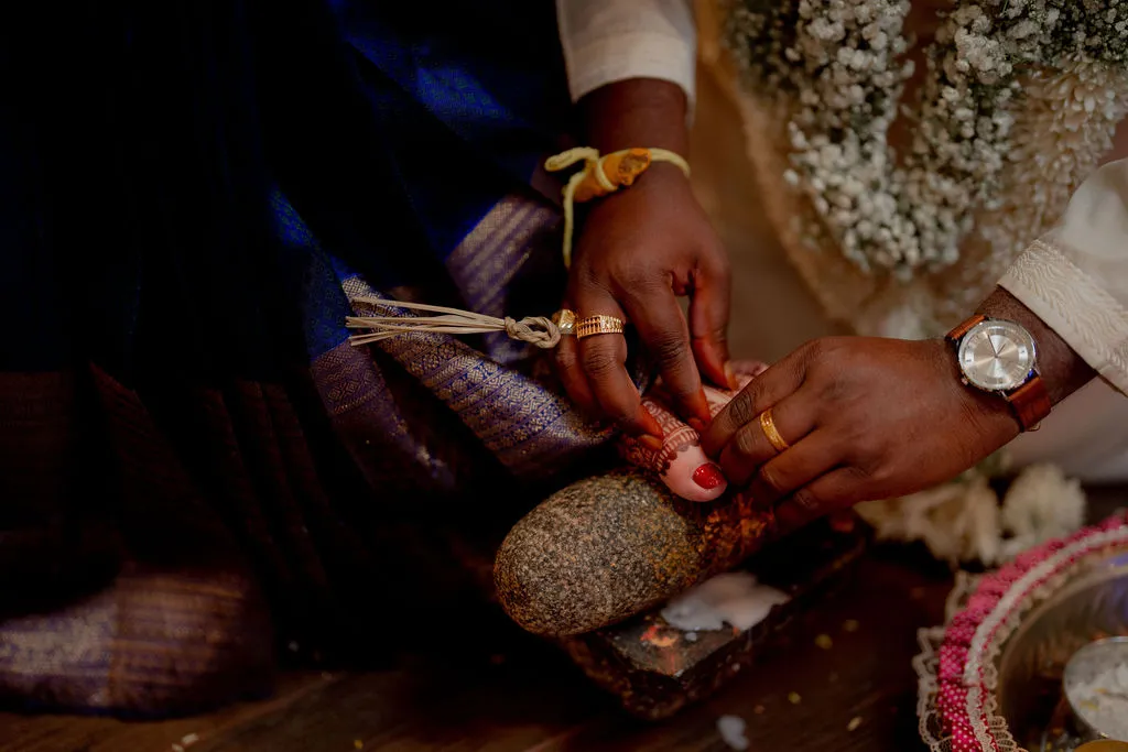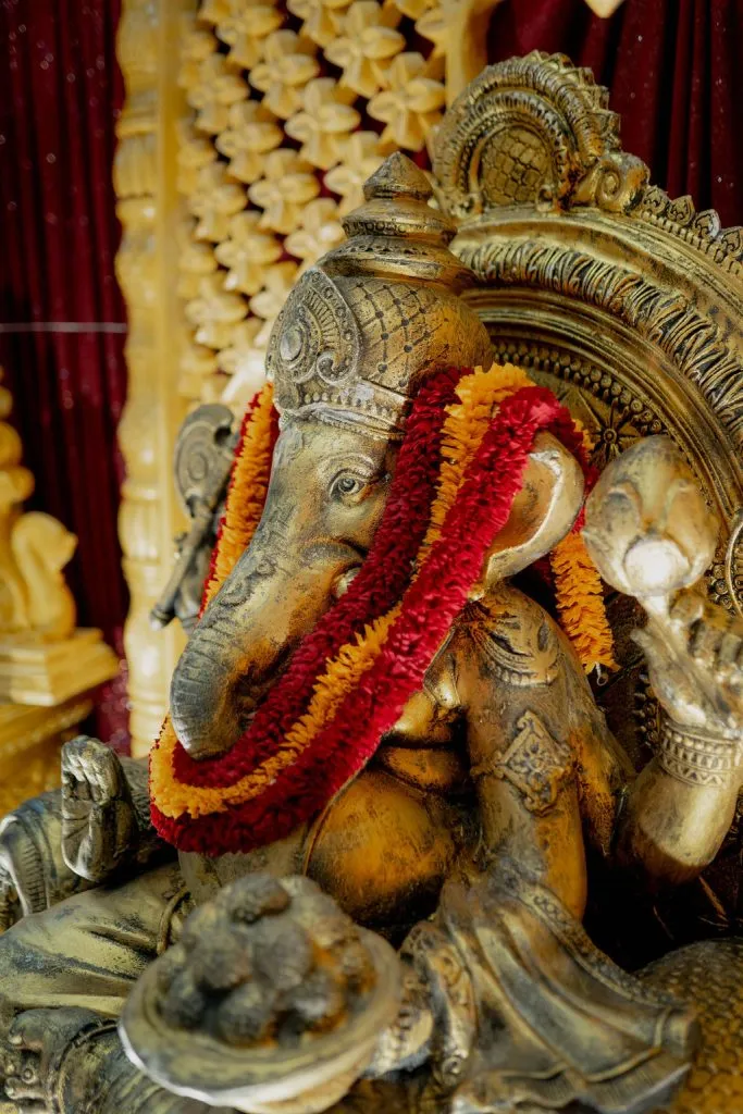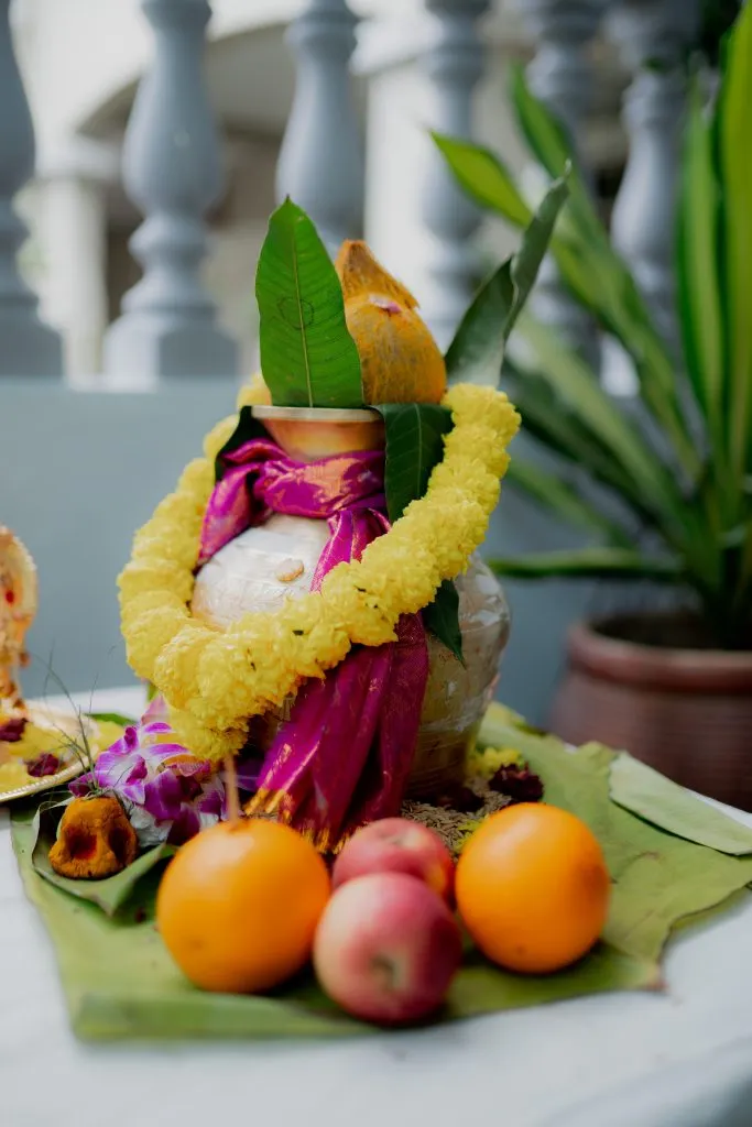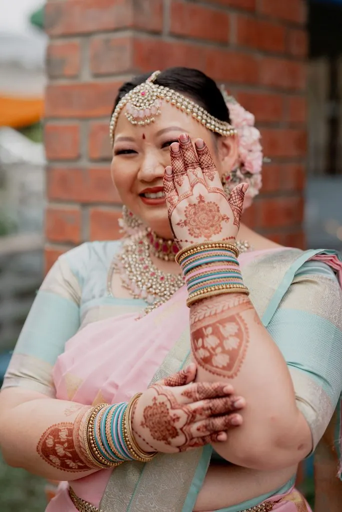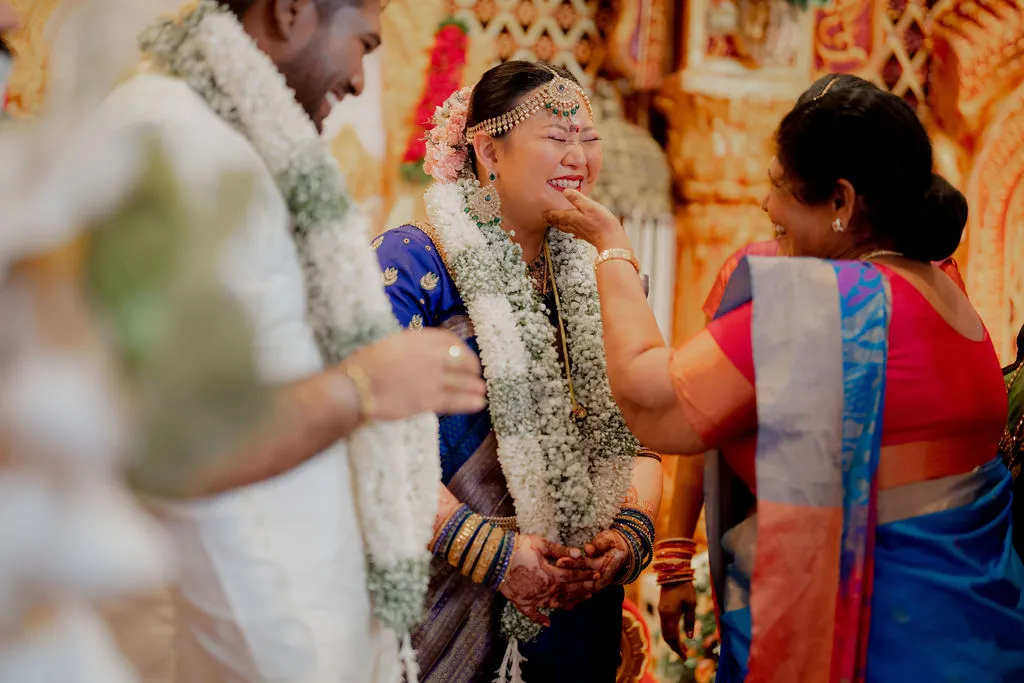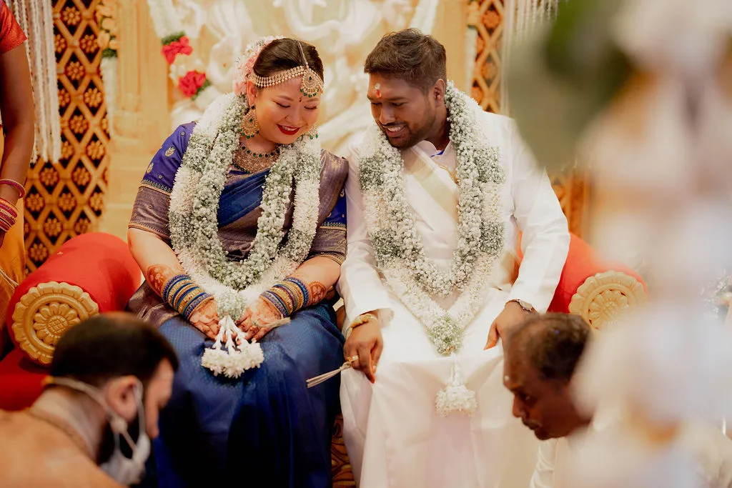 The wedding celebrations lasted over 2 days. Nicole looked flawless in her pink saree and natural makeup as she made her way to the Hindu temple for their first ceremony. And even though Sarvin was delayed by almost an hour having been caught in traffic brought by flooding and heavy rain, it did not show as he stepped out of his vehicle to unite with his bride at the temple. The couple shared a brief first look where Sarvin saw Nicole for the first time in a traditional saree, heavily adorned with matching jewellery and custom drawn henna gracing her hands. To help both families immerse in the customs of both the Chinese and Hindu culture, the bride made placards of the meaning behind each ceremonial step.