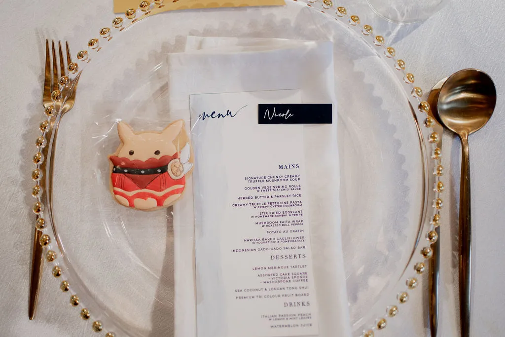 Self-proclaimed geek who share the love of all things sci-fi and fantasy, Nicole had grand plans to go all themed out on their wedding day only to be reined in by a dear friend. Despite that, this meticulous bride included as much details of the couple’s love for Dr Who and Genshin Impact into this wedding. From their engagement rings and bands, to the colour of their traditional wear, gatecrashing games and dinner decor; geeky imprints were seen throughout.