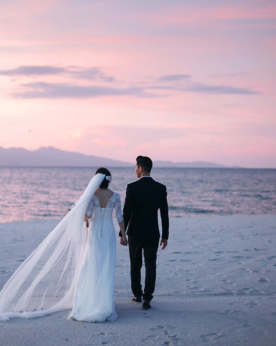 “Charlie and I were looking to have an intimate wedding, so naturally, a destination wedding became our choice. As we’ve always fancied the idea of spending quality time with our guests in a relaxed atmosphere, we began searching for beautiful resorts. We finally decided on a beach wedding ceremony at Four Seasons Langkawi, followed by a three course Italian dinner at one of their restaurants. We were really pleased with our decision because everything turned out perfectly: the weather was lovely, our guests watched us exchange our vows on the scenic beach, and we managed to take pictures with everyone before adjourning for dinner. The rest of the night was spent eating, toasting and just having fun with our guests. Everything was casual yet memorable.